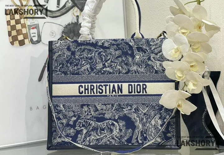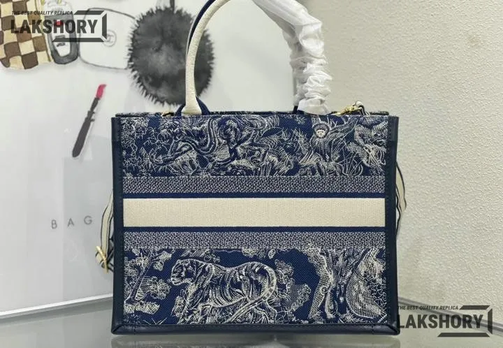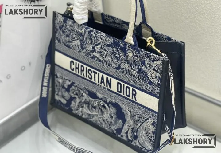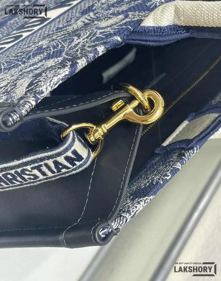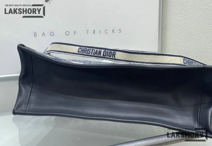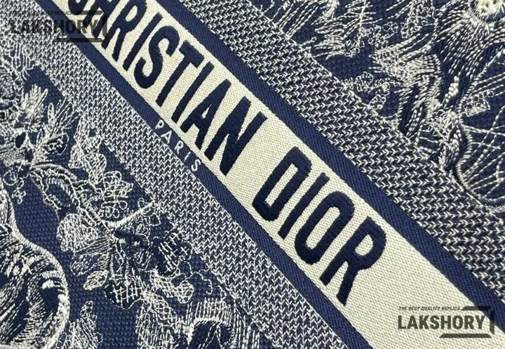 Dior 1:1 Mirror Replica Navy Off-White Embroidery Book Tote Bag