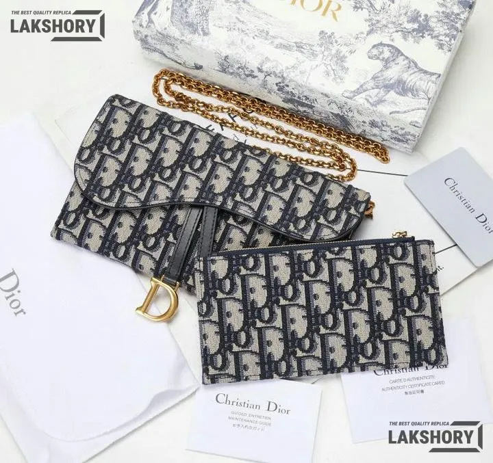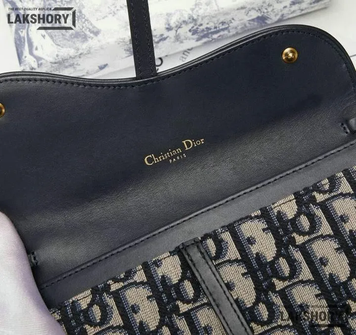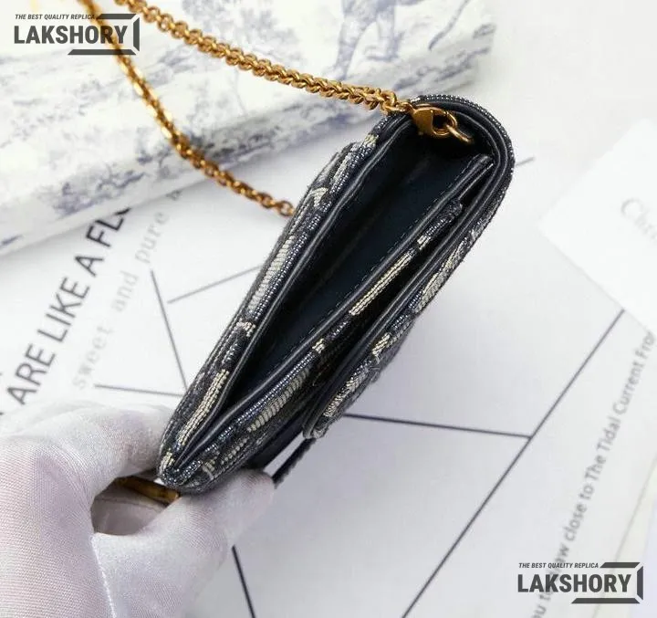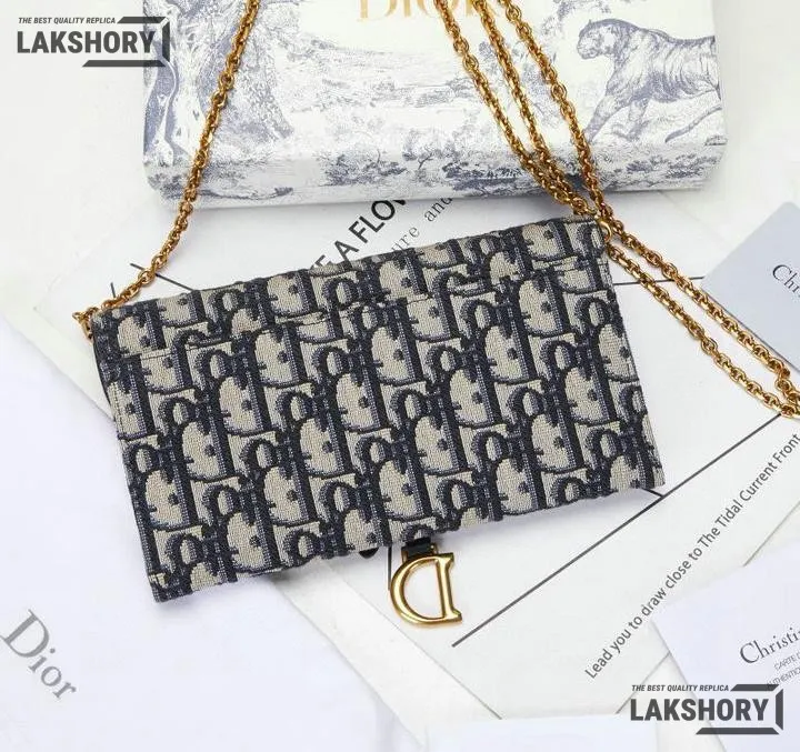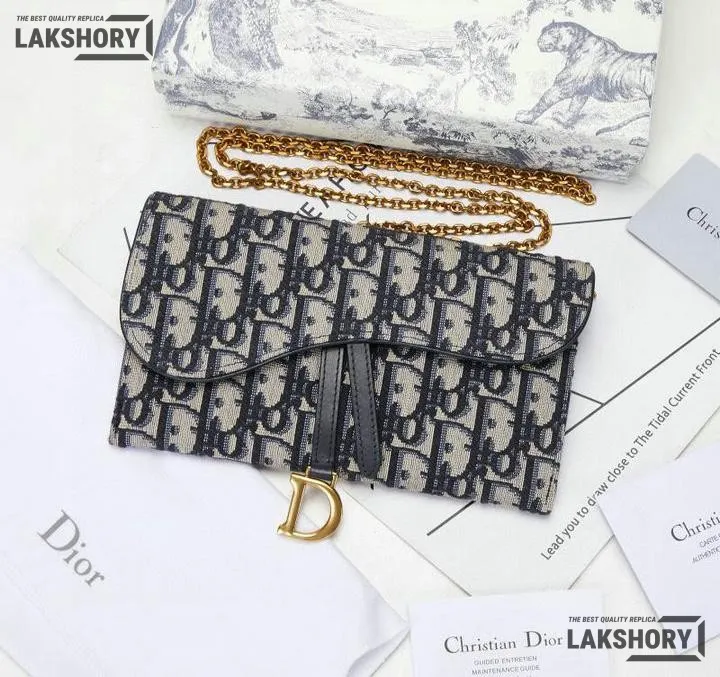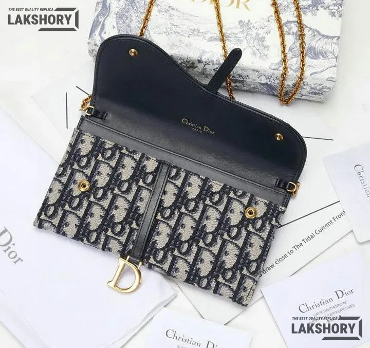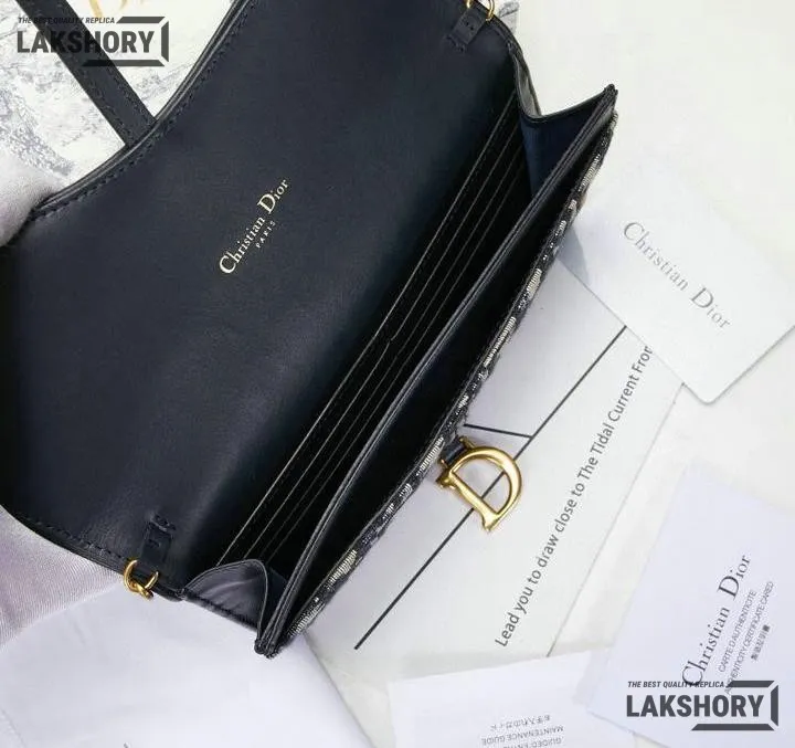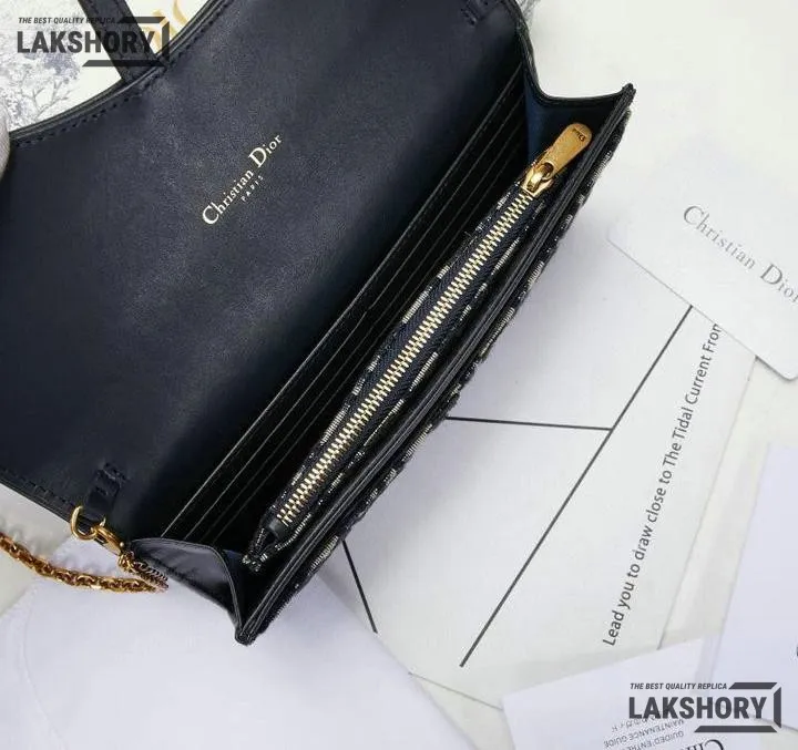 Dior 1:1 Mirror Replica Navy Saddle Chain Long Wallet 19CM/7.5IN