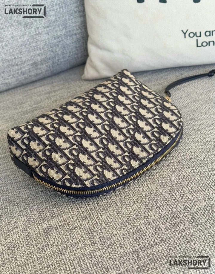 Dior 1:1 Mirror Replica Oblique 30 Montaigne Cosmetic Pouch Blue 24CM/9.4IN