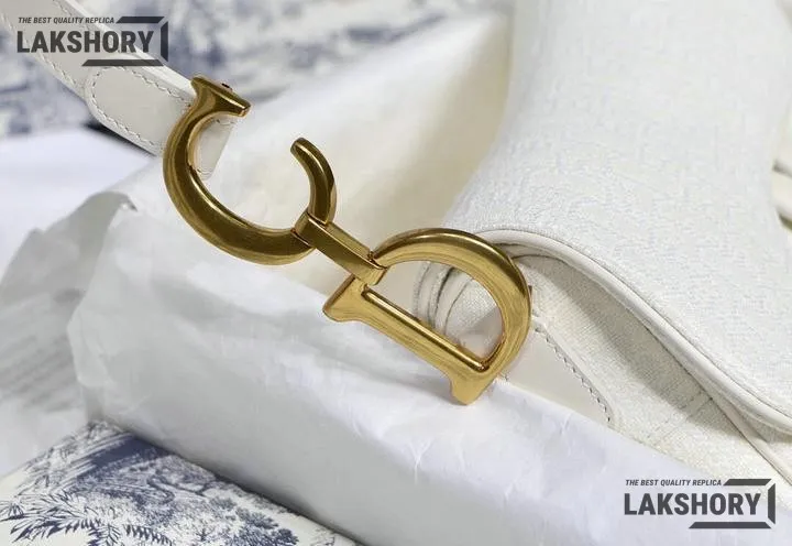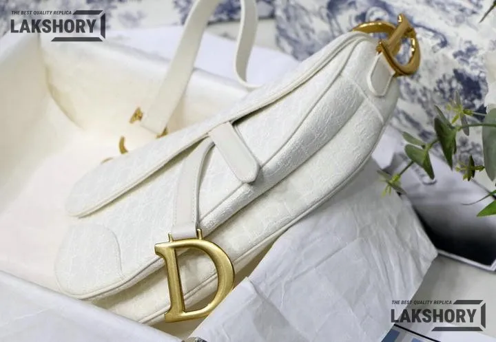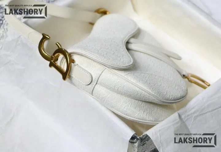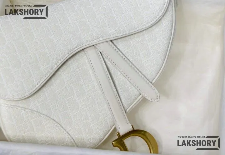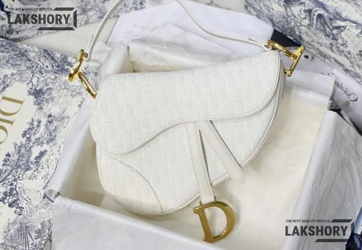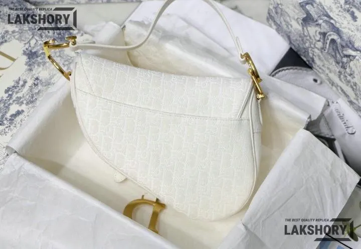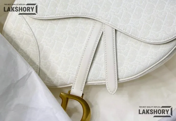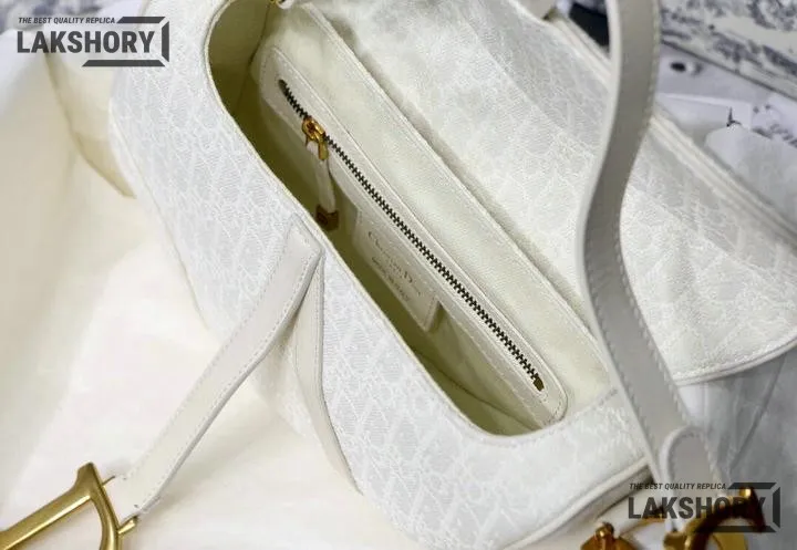 Dior 1:1 Mirror Replica Oblique Satchel White Saddle 25.5CM/10IN
