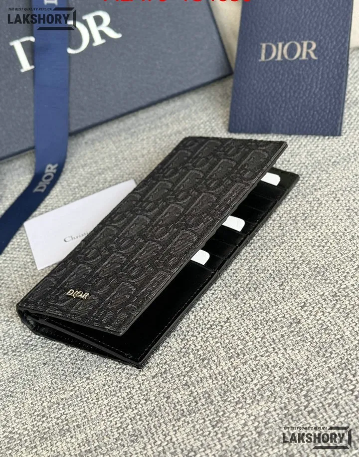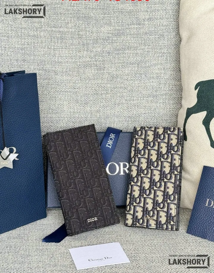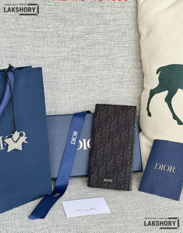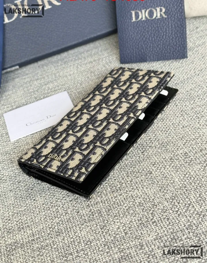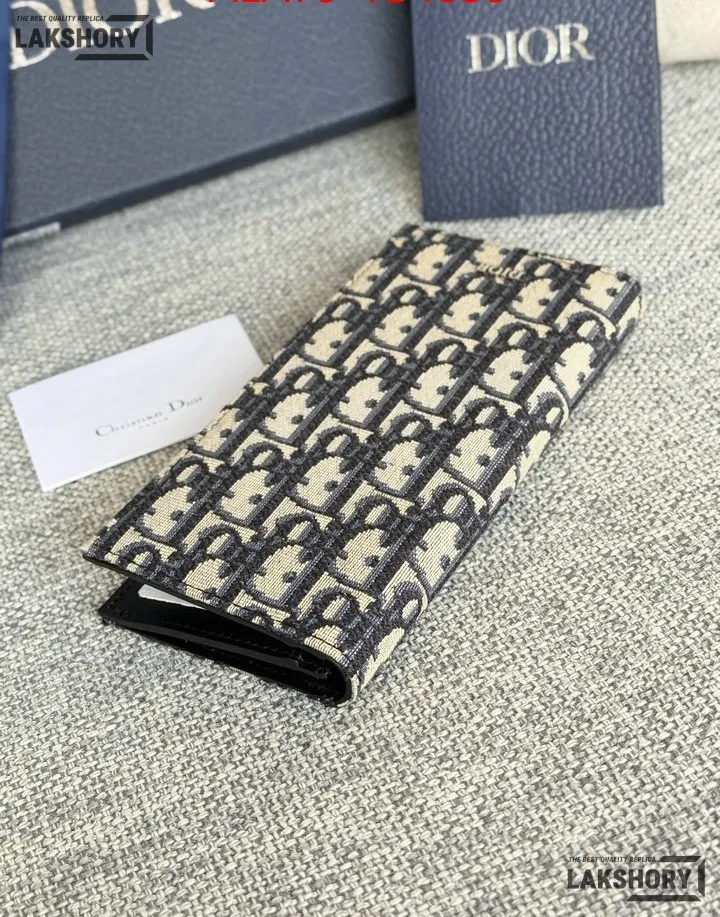 Dior 1:1 Mirror Replica Oblique Vertical Wallet Beige Black 18.8CM/7.4IN