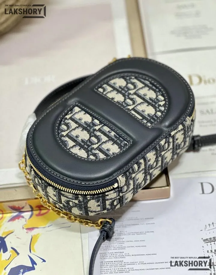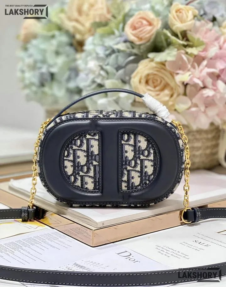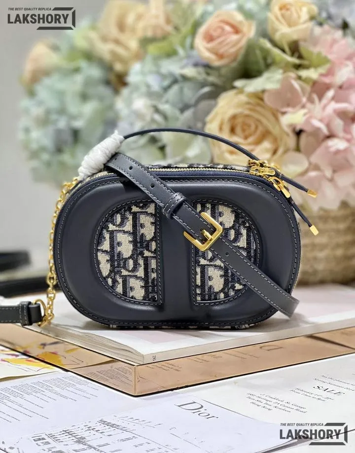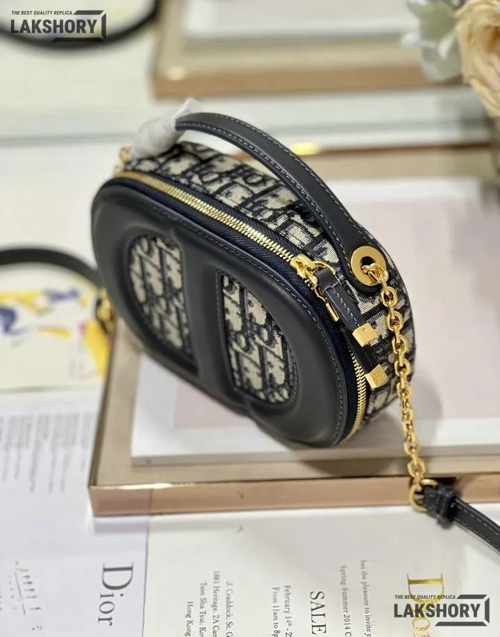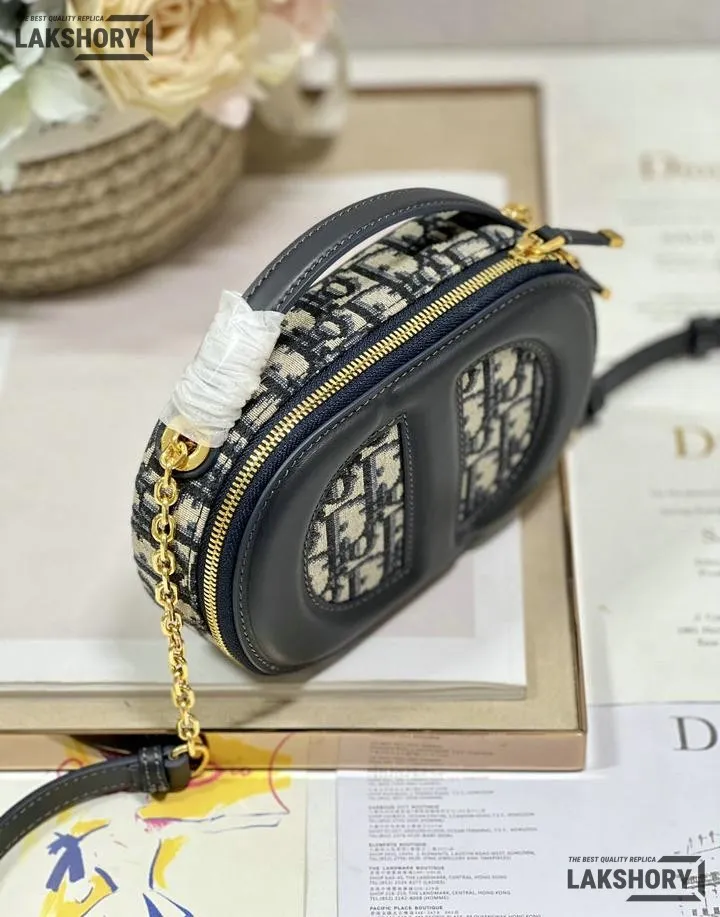 Dior 1:1 Mirror Replica Oval CD Signature Camera Crossbody Blue 18CM/7.1IN