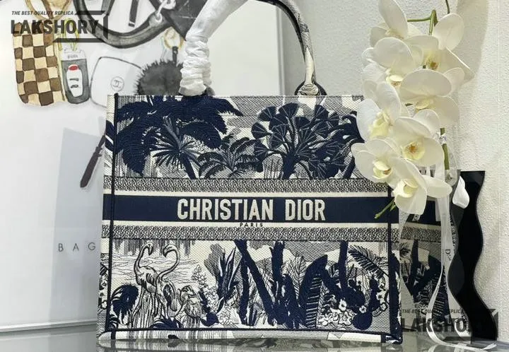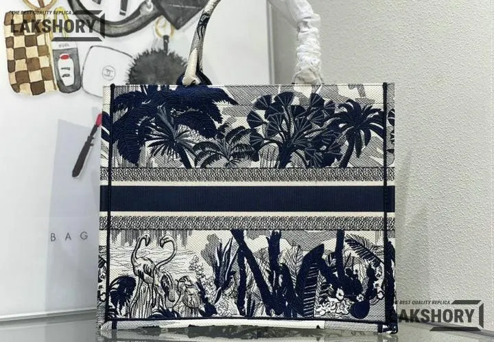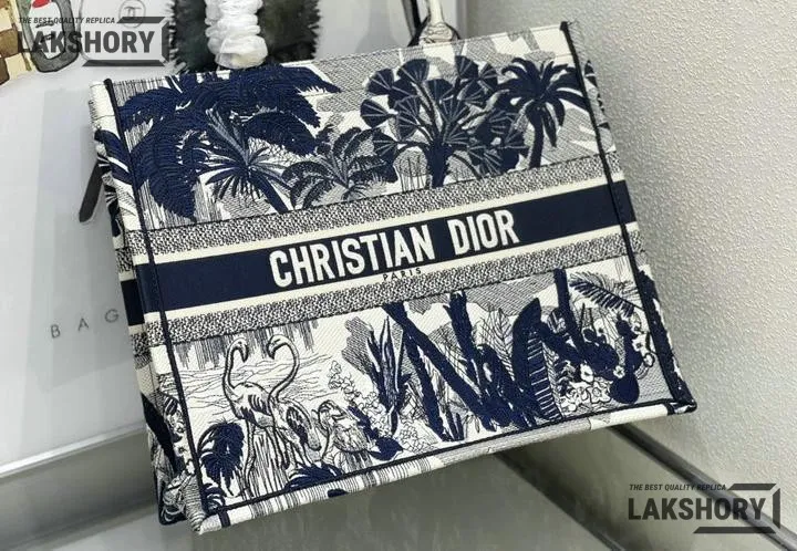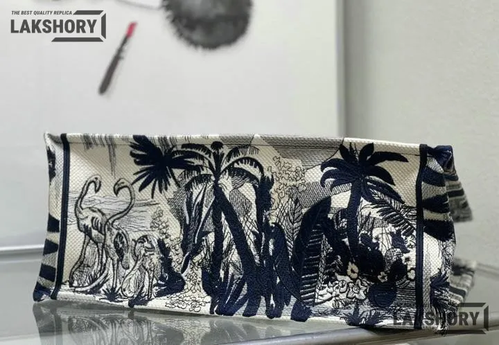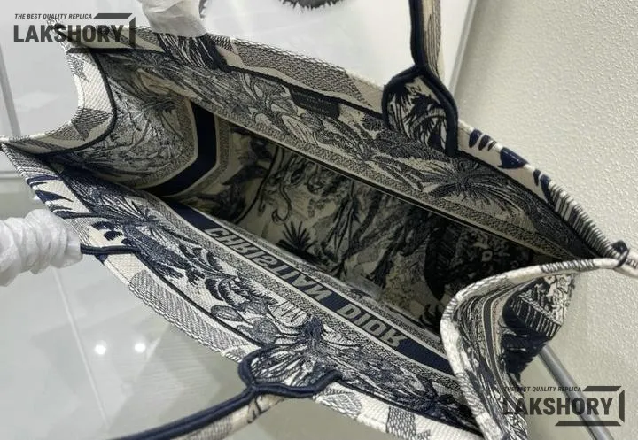 Dior 1:1 Mirror Replica Palm Tree Toile De Jouy Book Tote Blue