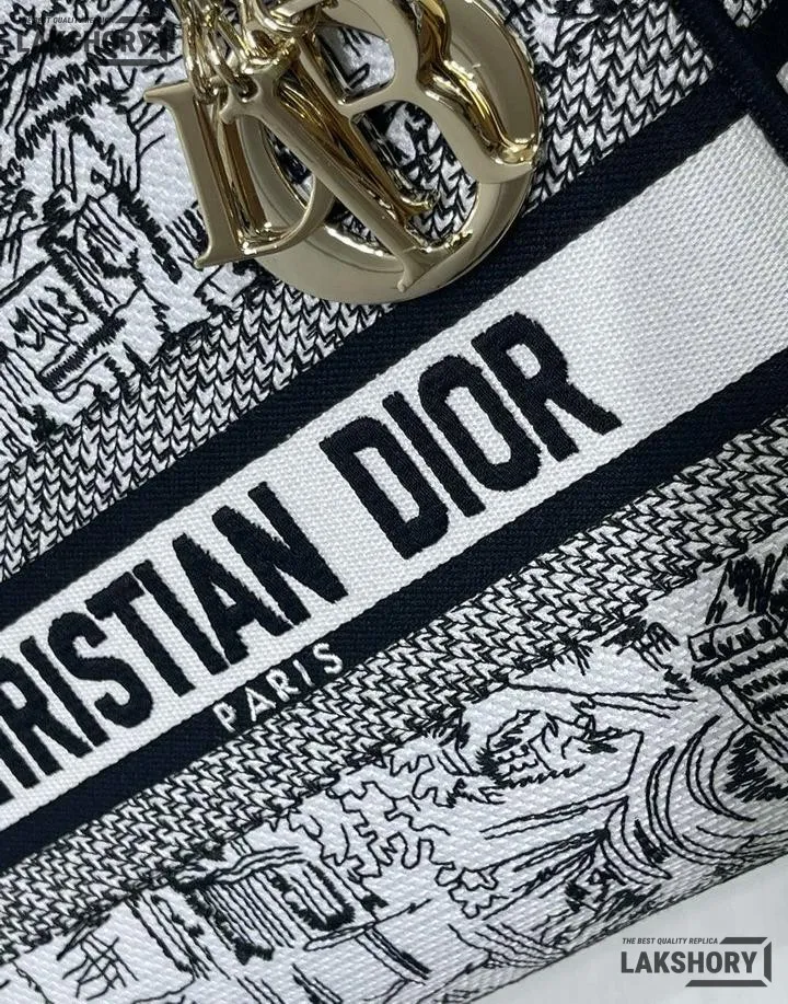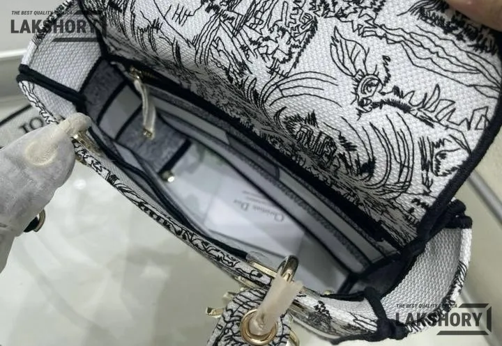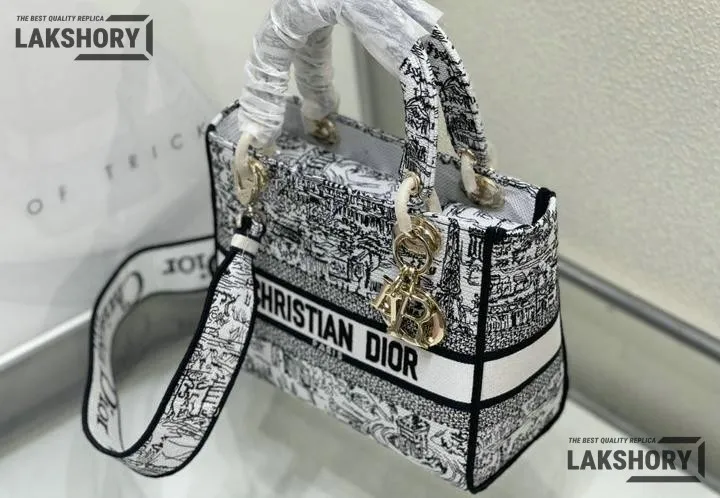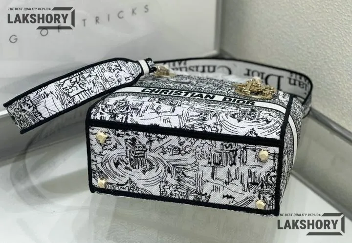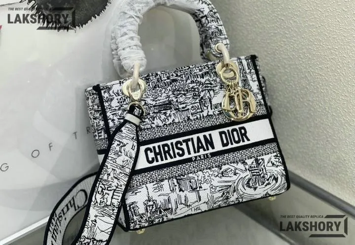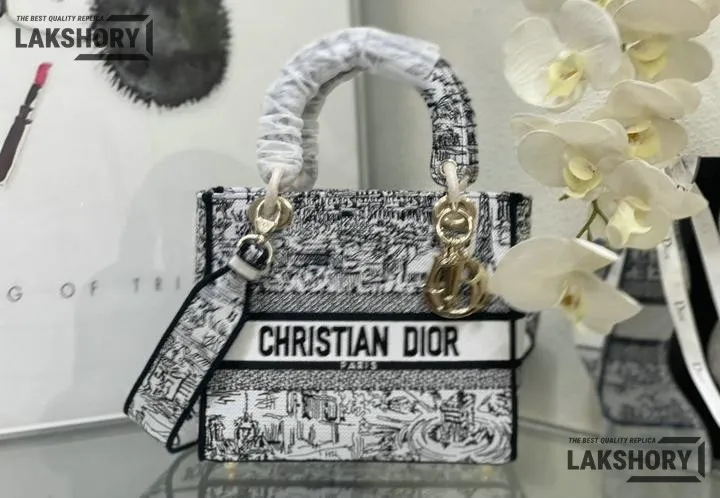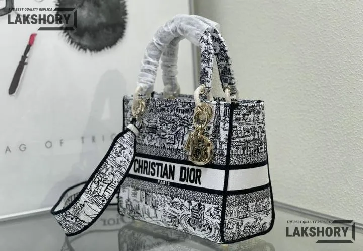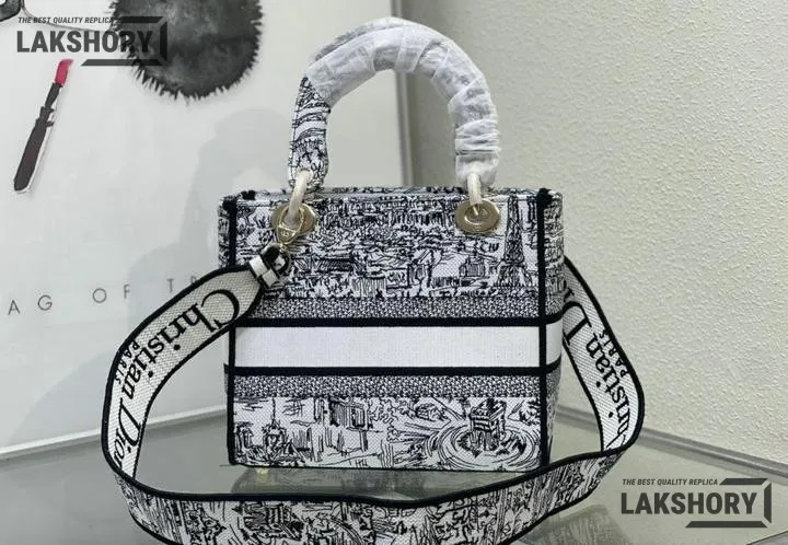 Dior 1:1 Mirror Replica Paris All Over Lady D-Lite White/Black 24CM/9.4IN