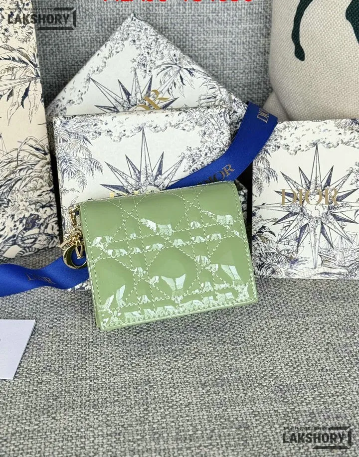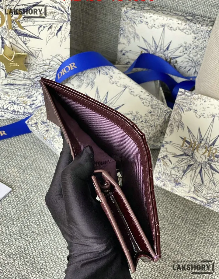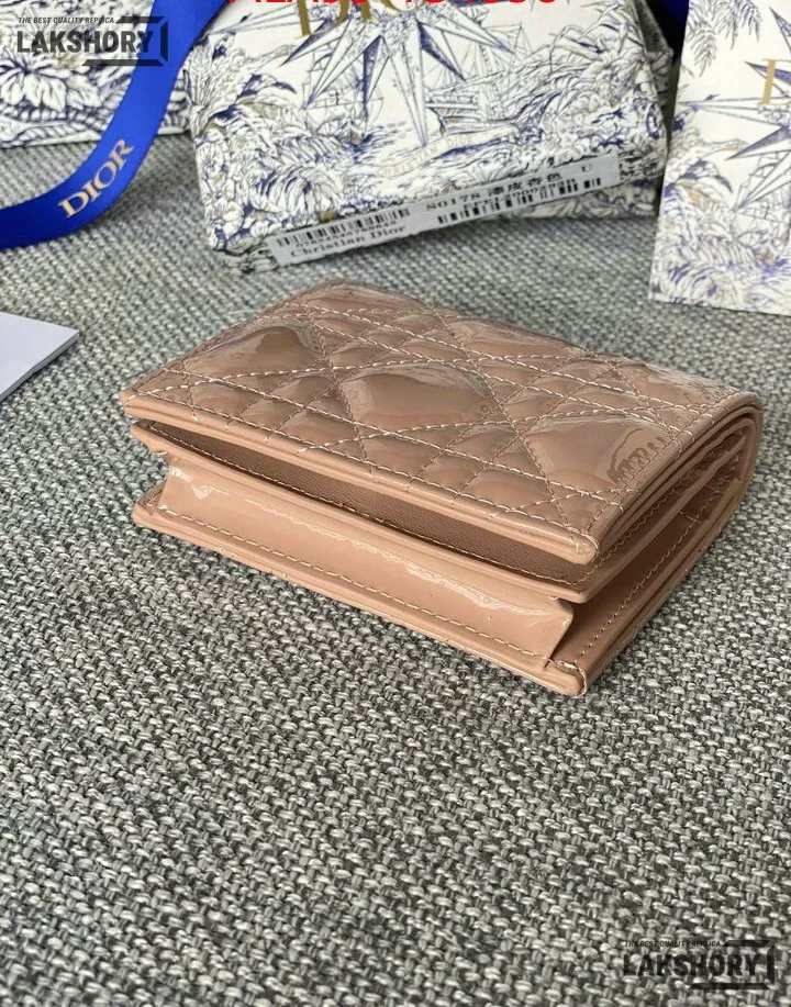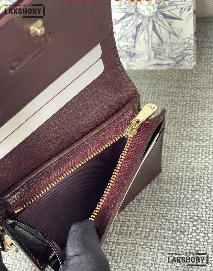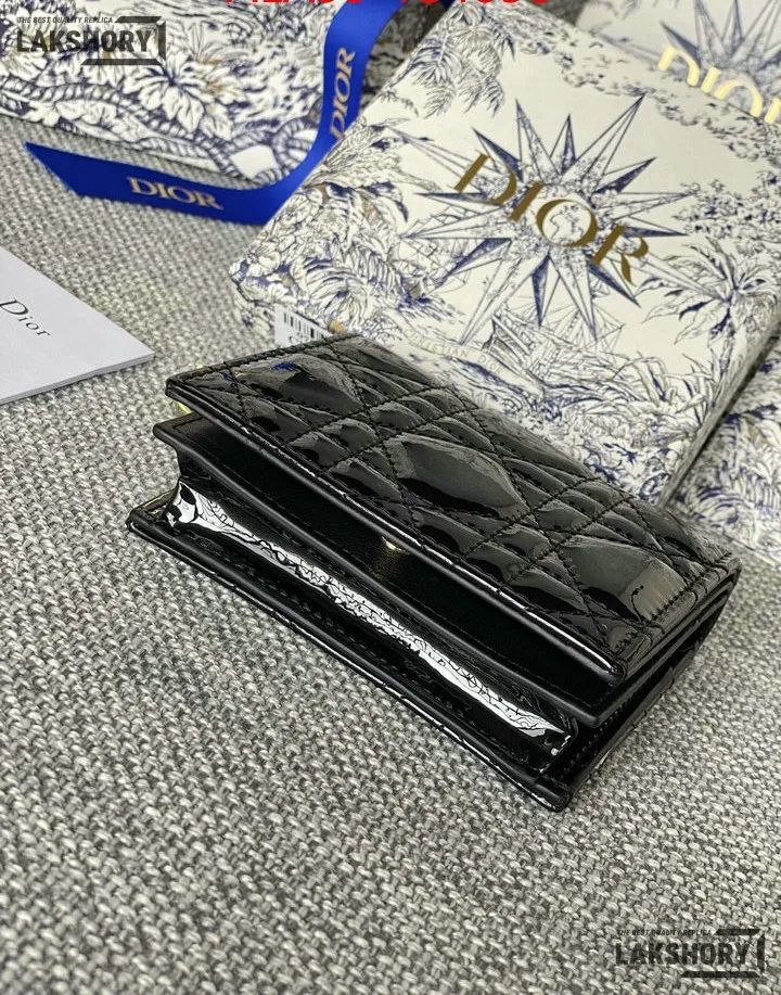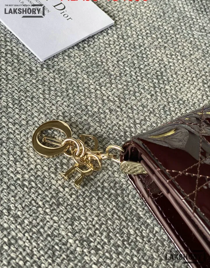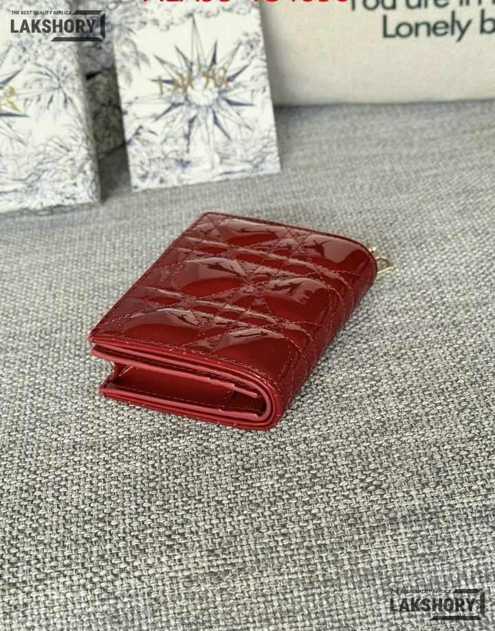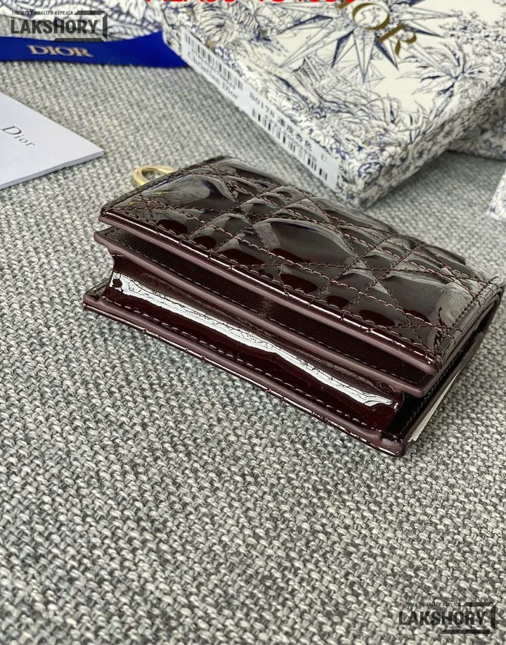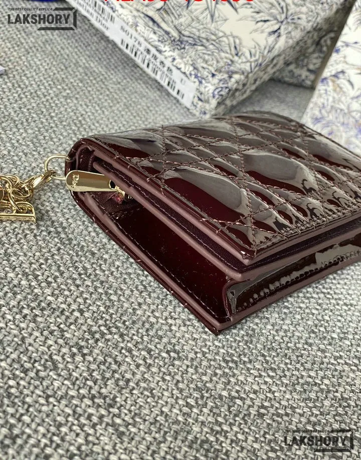 Dior 1:1 Mirror Replica Patent Cannage Lady Dior Lotus Wallet 9CM/3.5IN