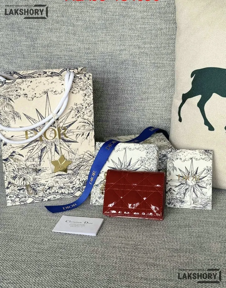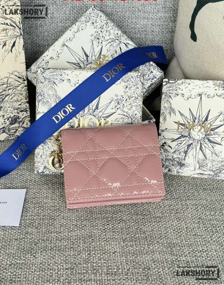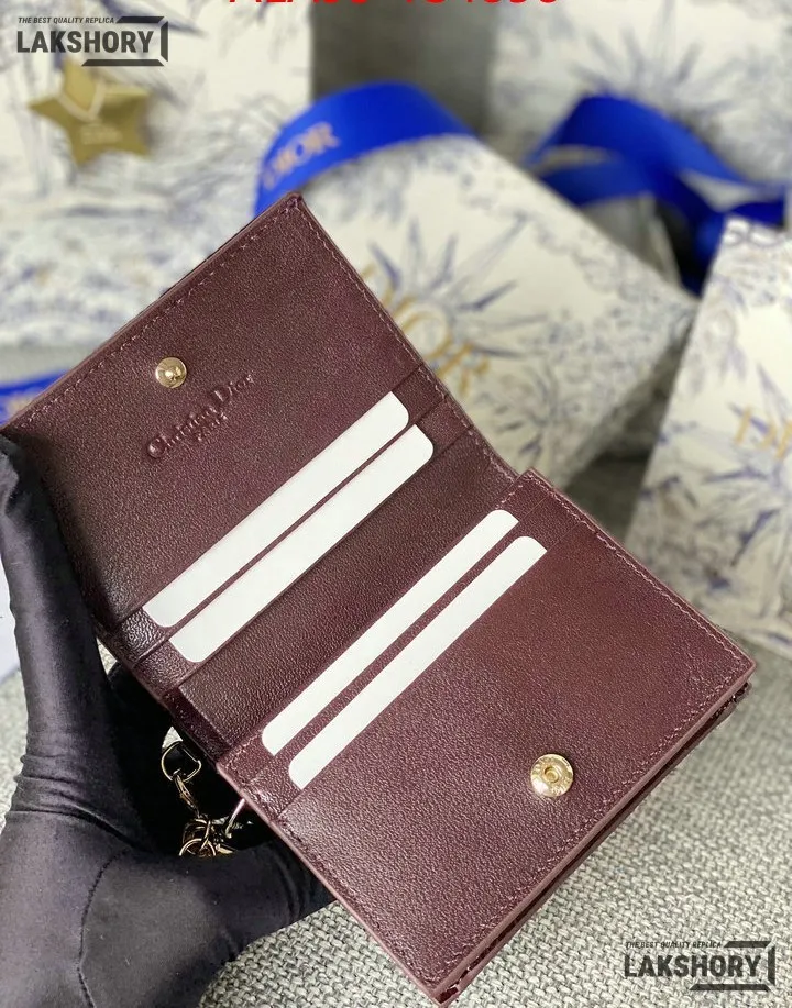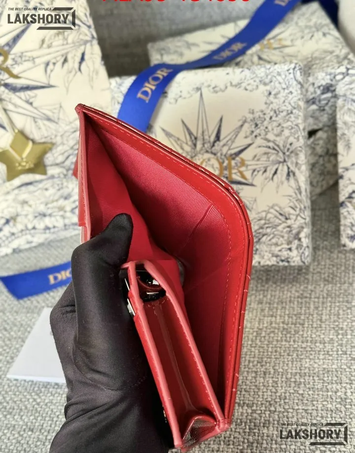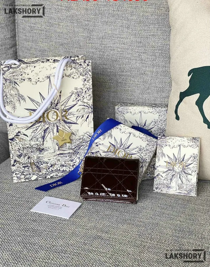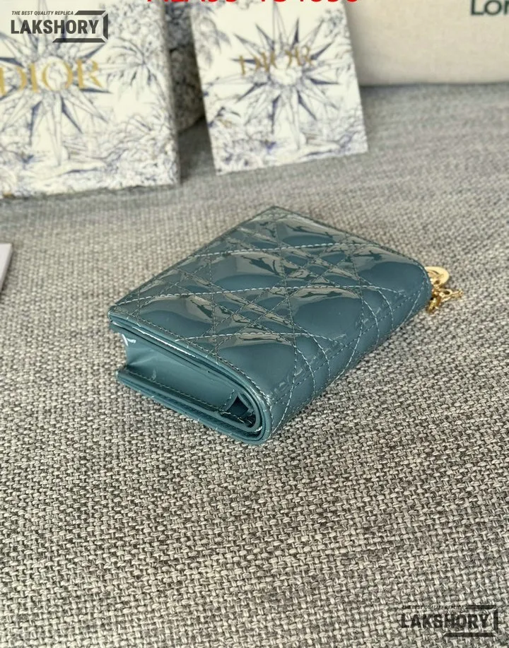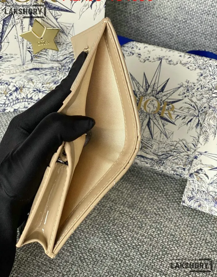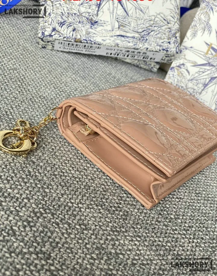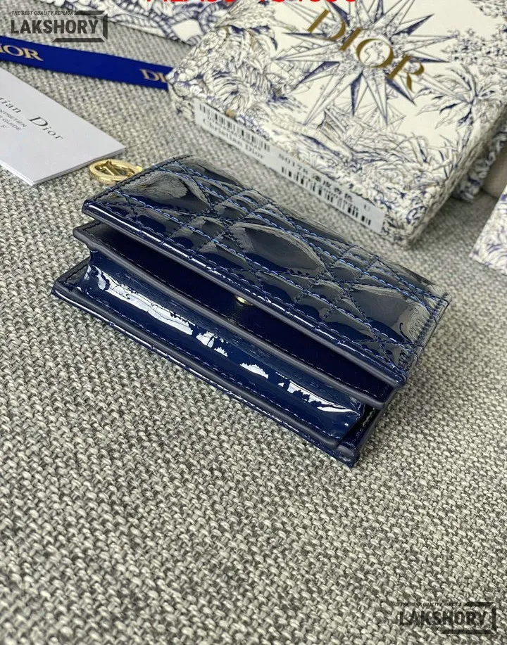Dior 1:1 Mirror Replica Patent Cannage Lady Dior Lotus Wallet 9CM/3.5IN