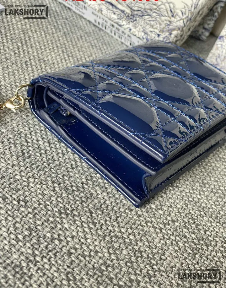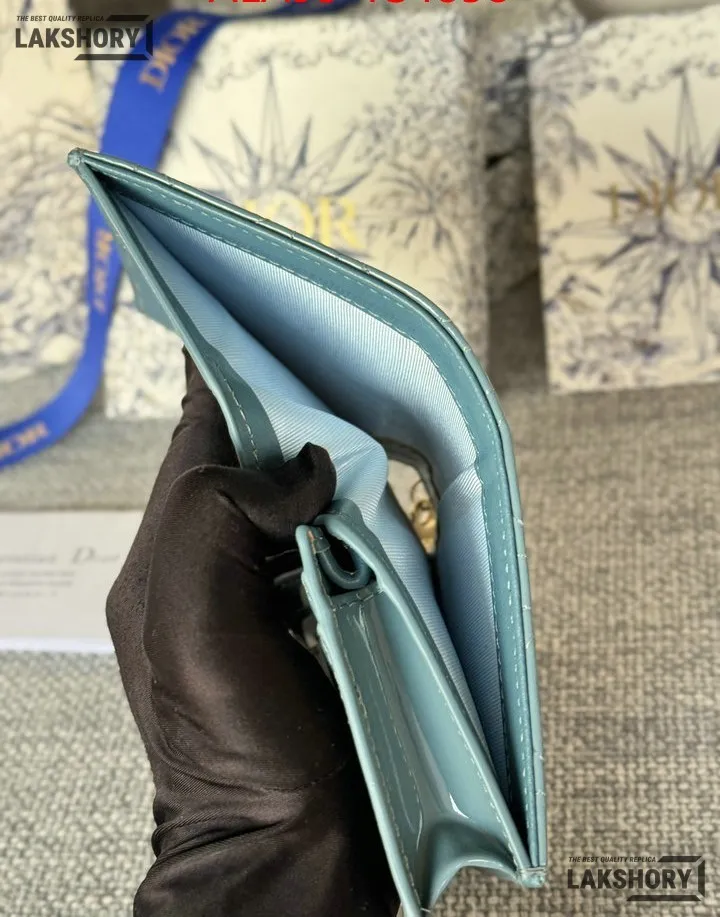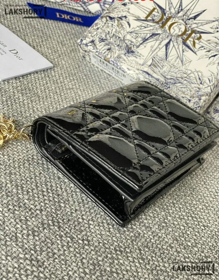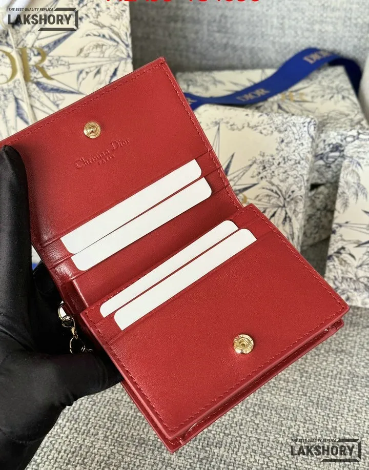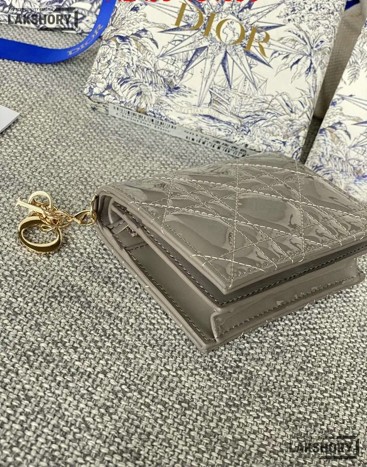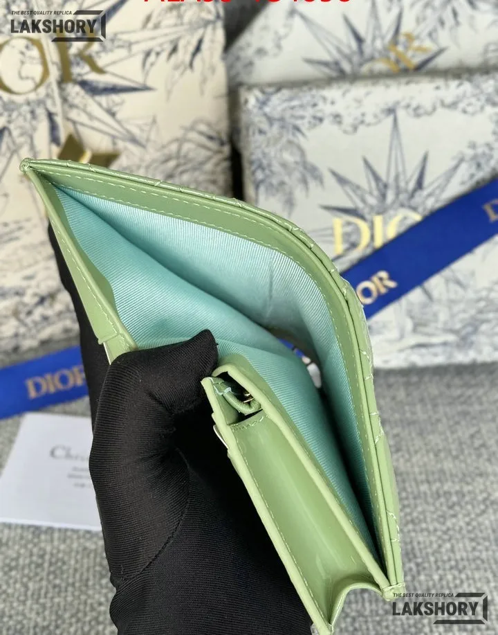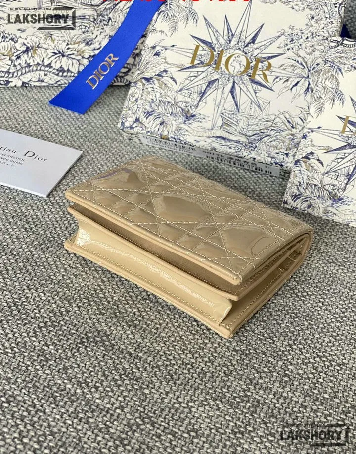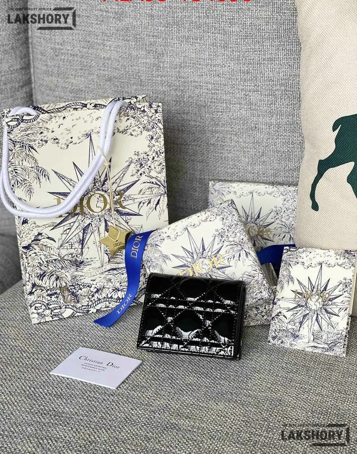Dior 1:1 Mirror Replica Patent Cannage Lady Dior Lotus Wallet 9CM/3.5IN