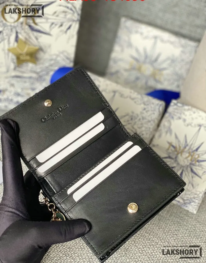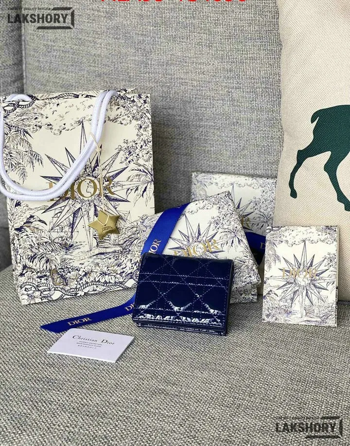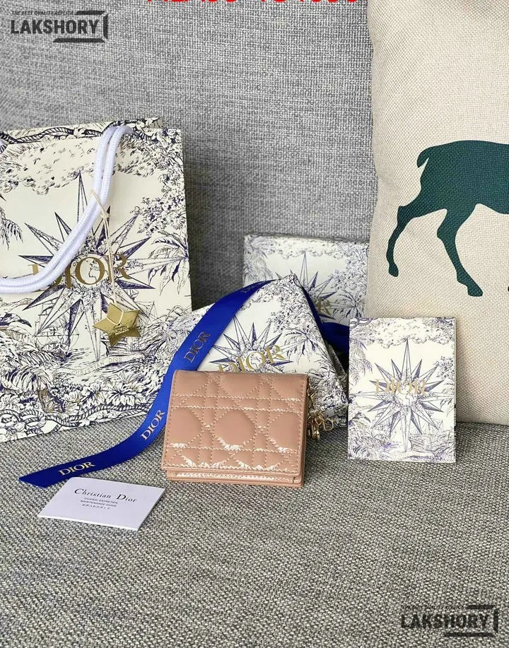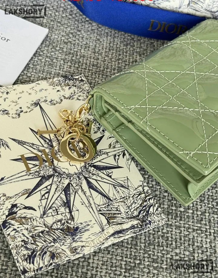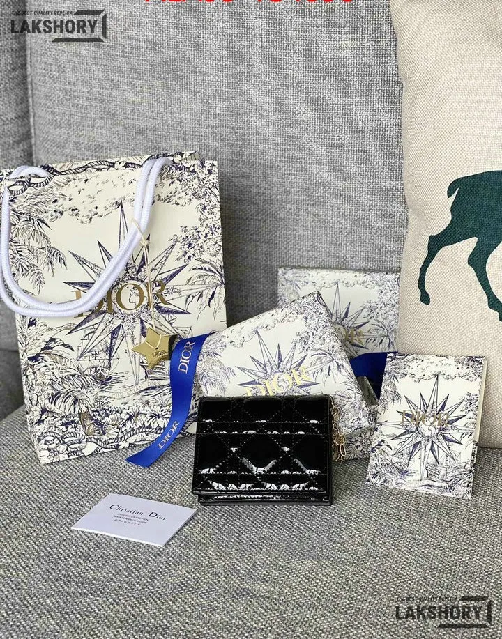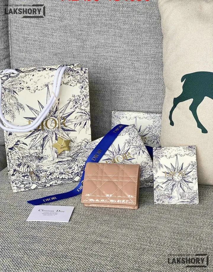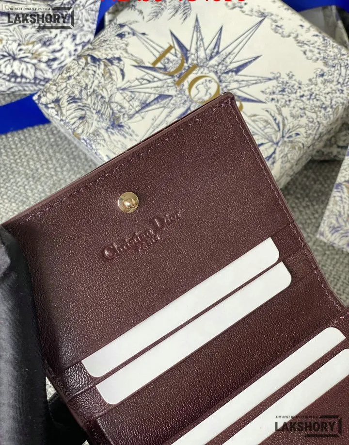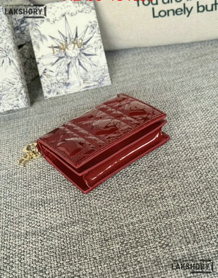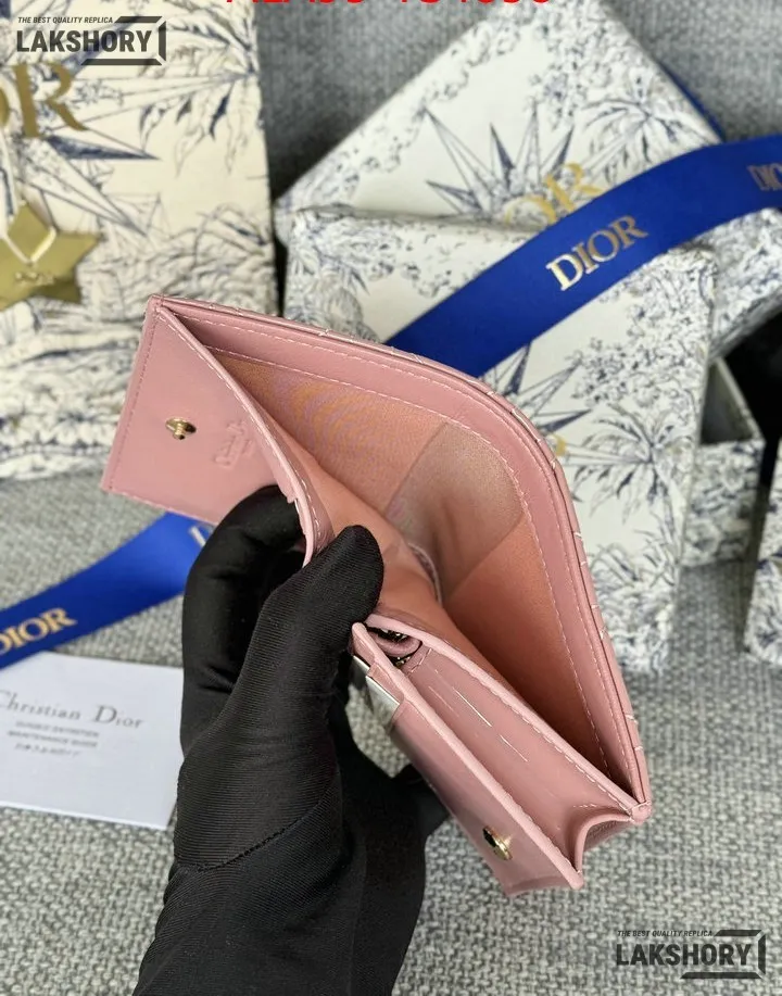 Dior 1:1 Mirror Replica Patent Cannage Lady Dior Lotus Wallet 9CM/3.5IN