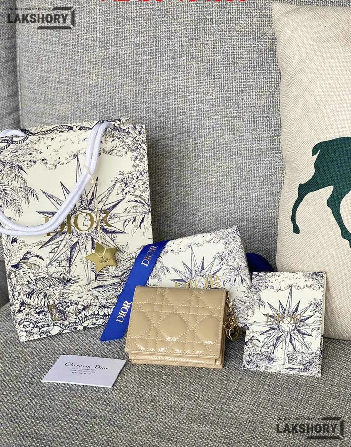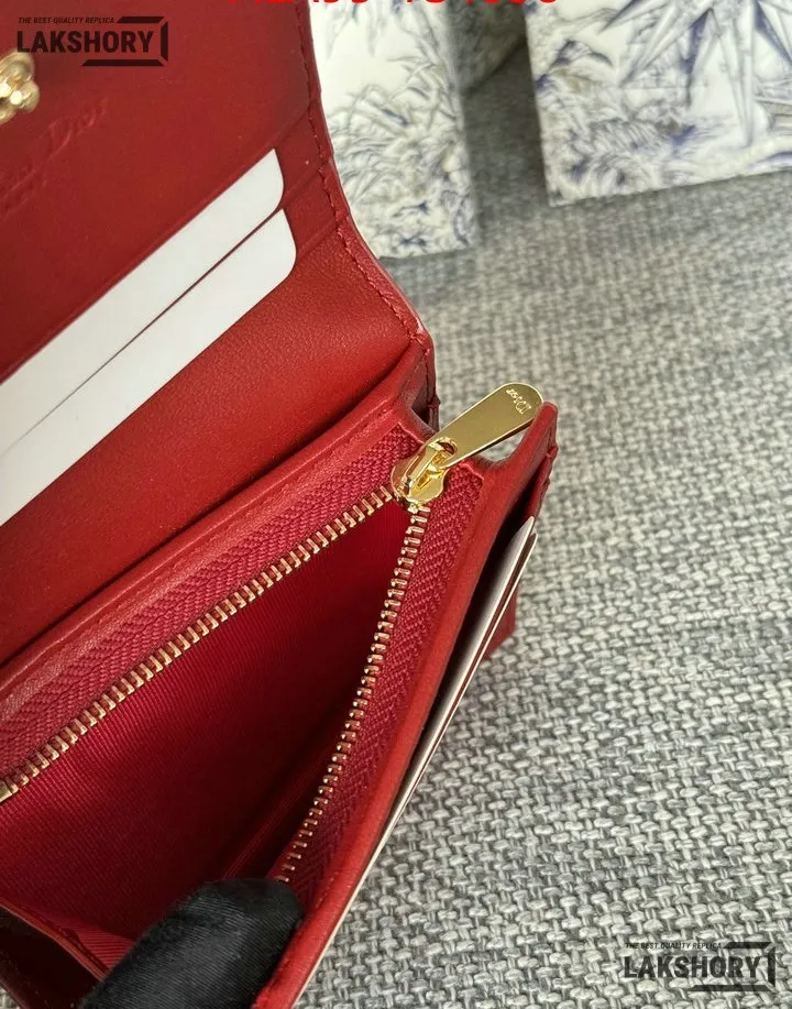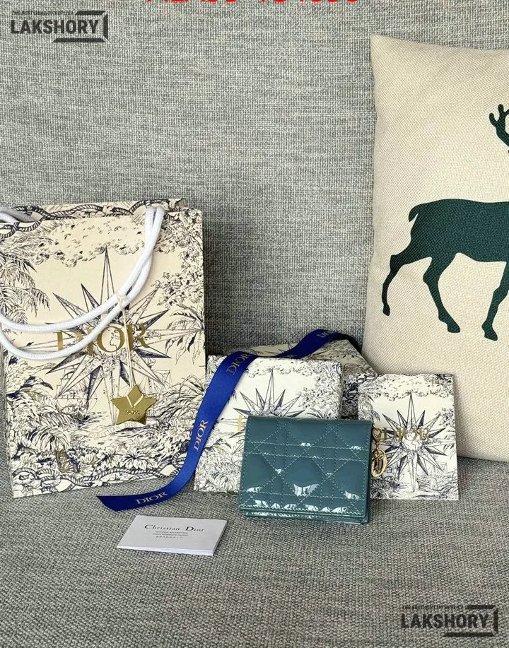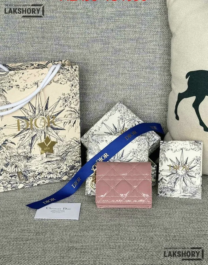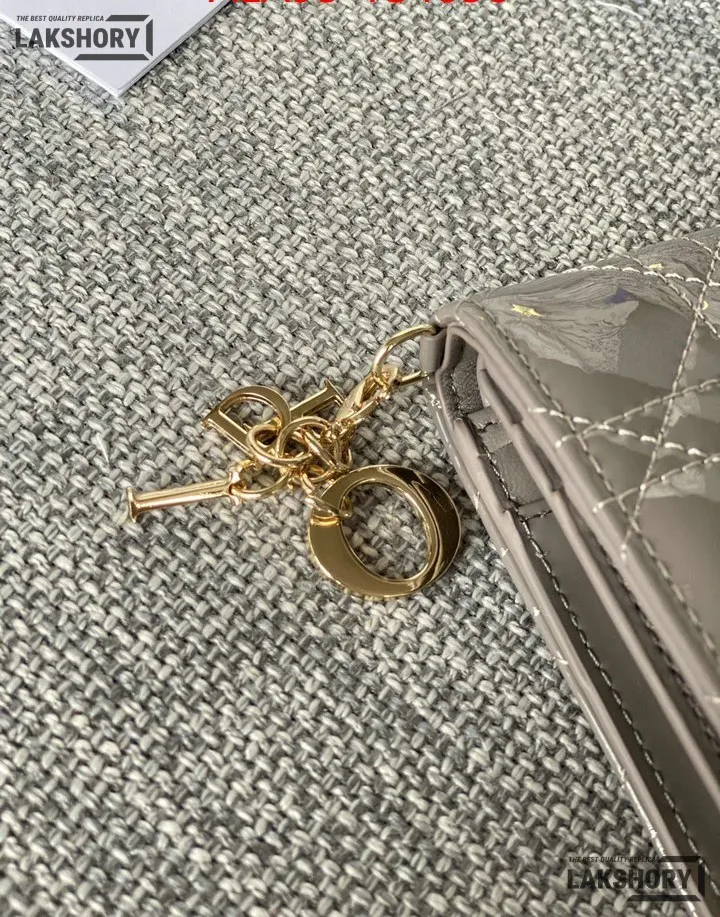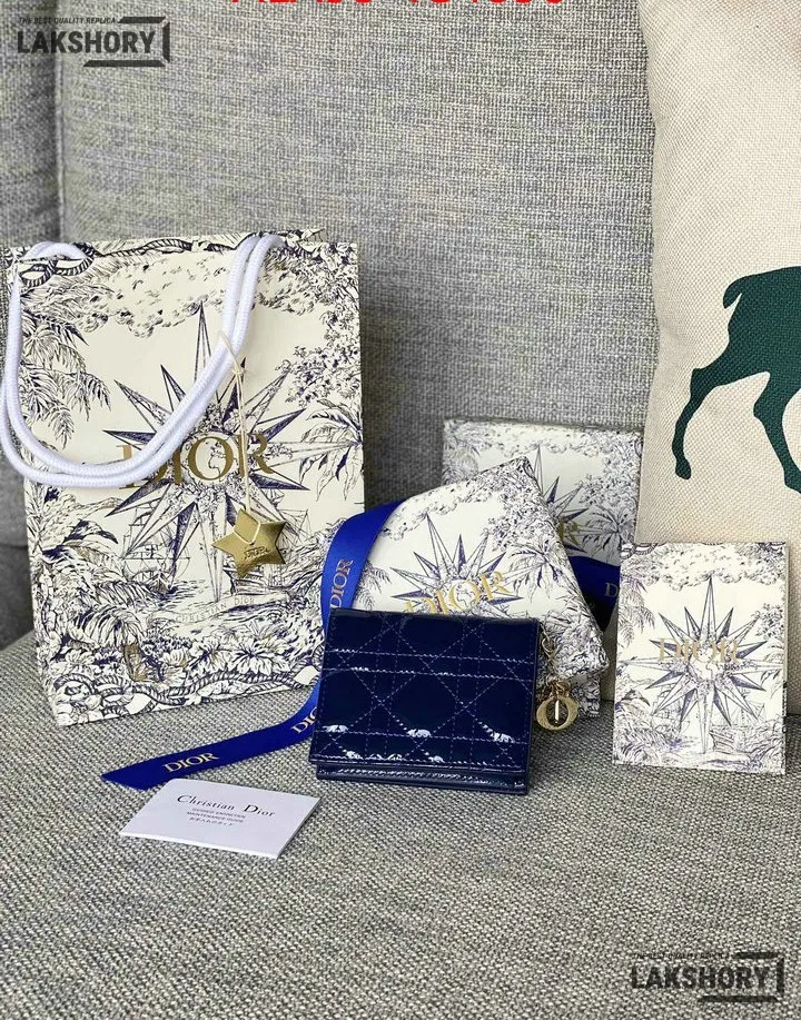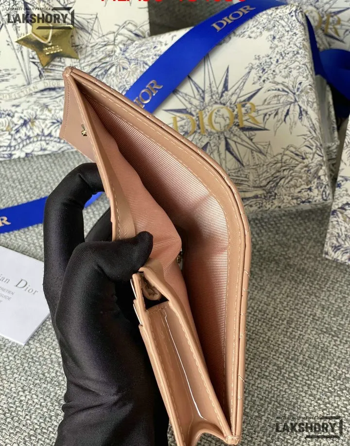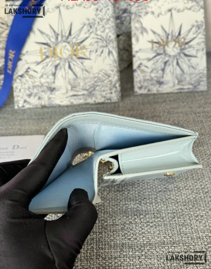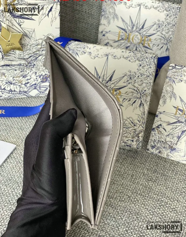 Dior 1:1 Mirror Replica Patent Cannage Lady Dior Lotus Wallet 9CM/3.5IN