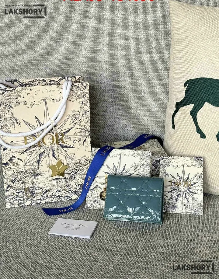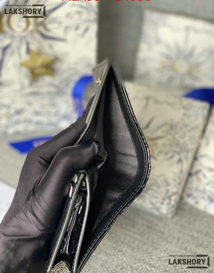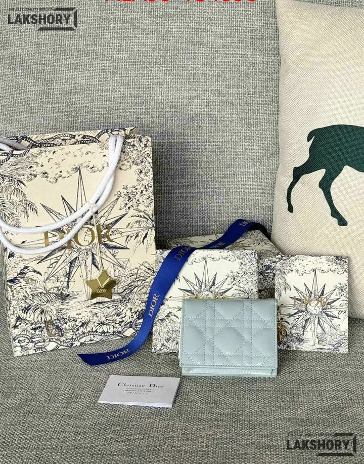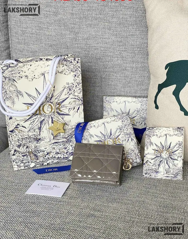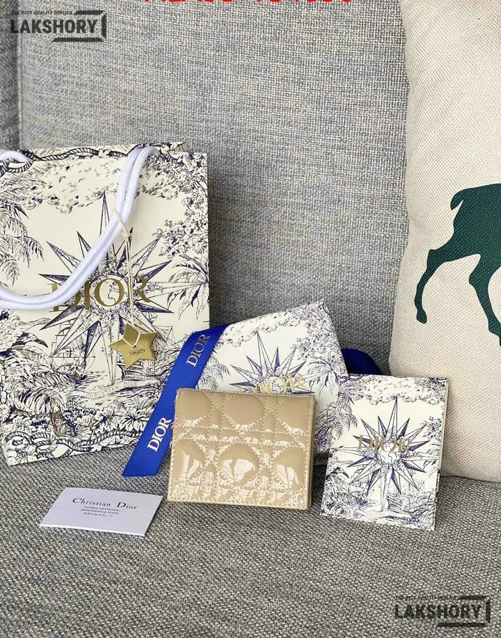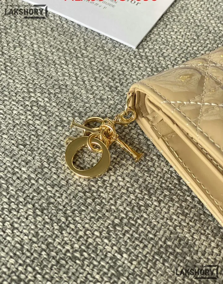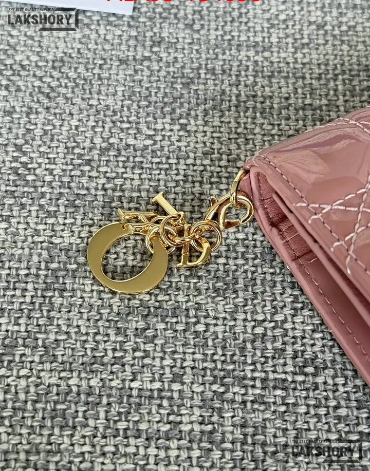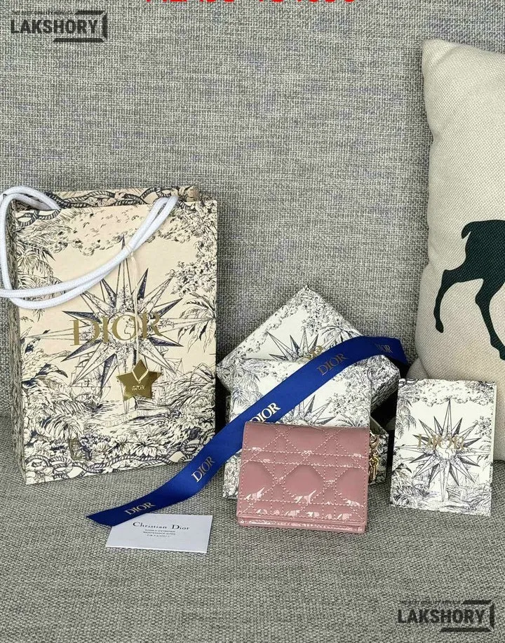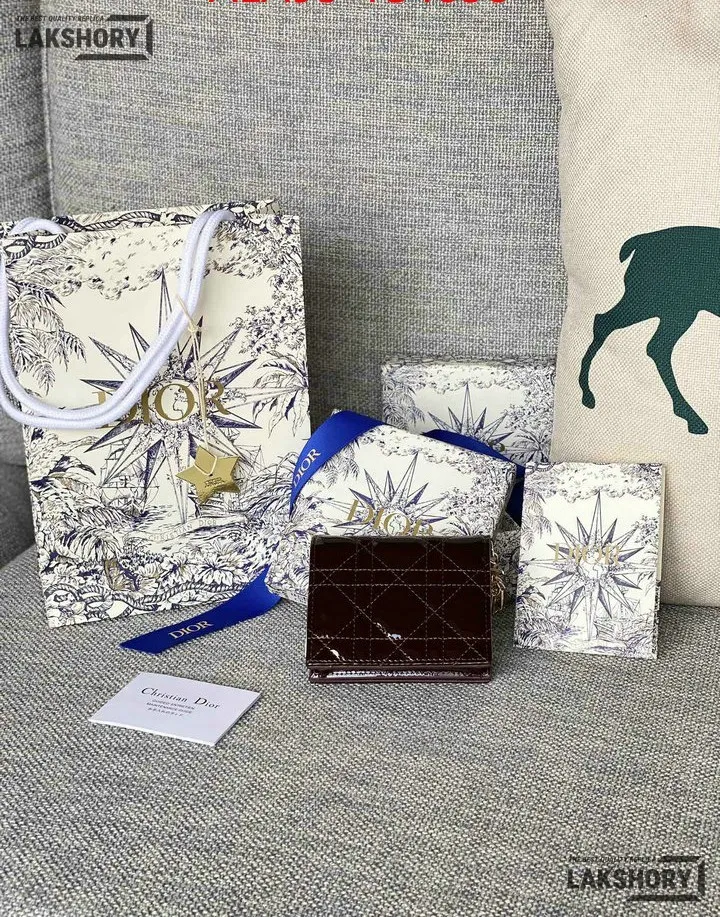 Dior 1:1 Mirror Replica Patent Cannage Lady Dior Lotus Wallet 9CM/3.5IN