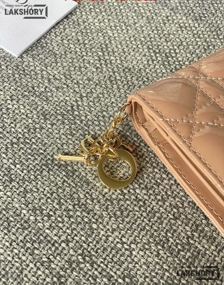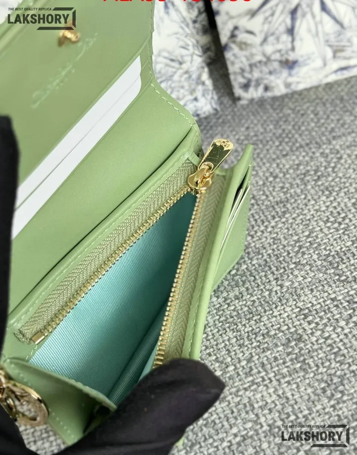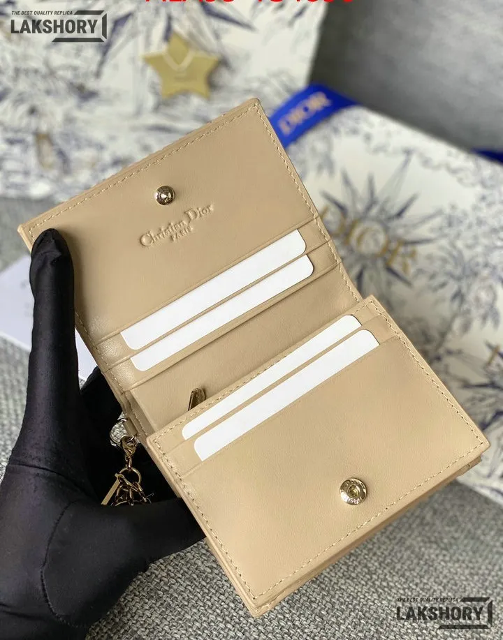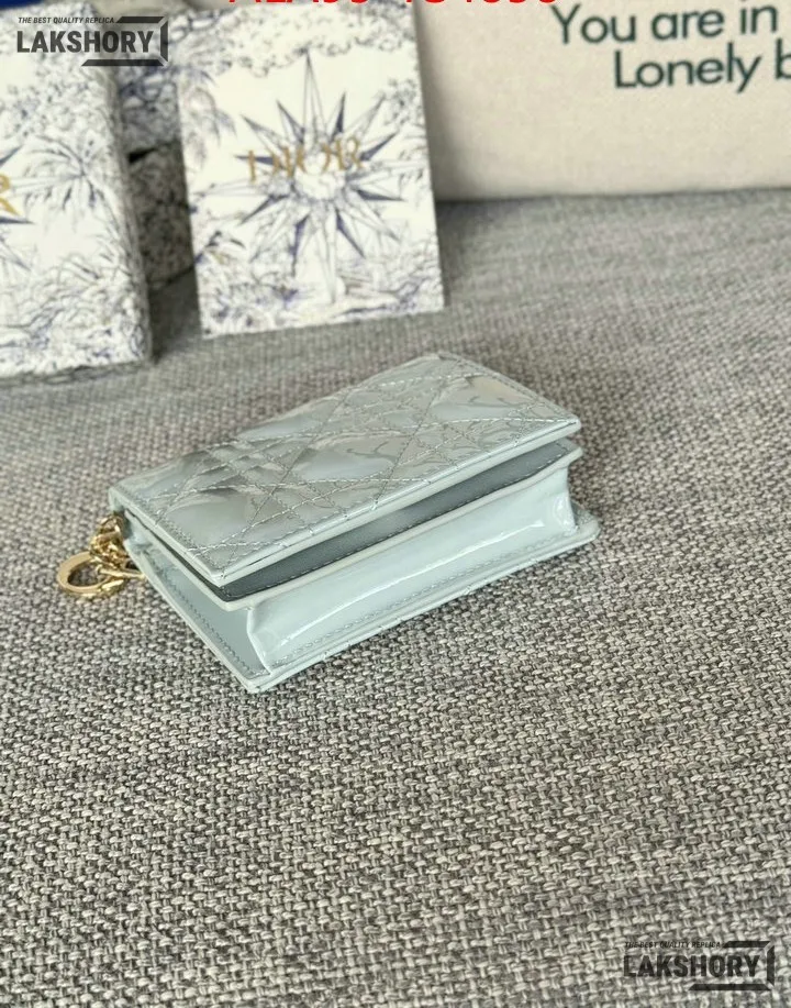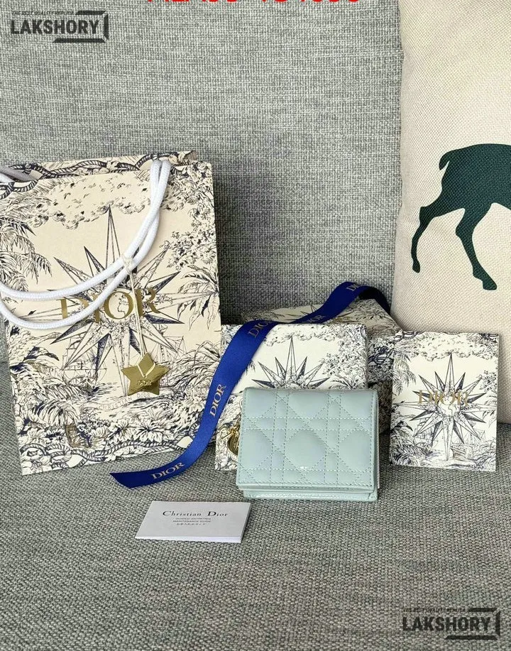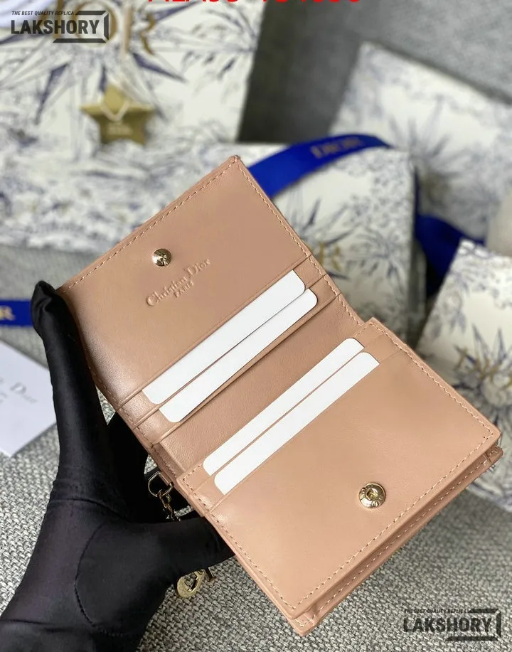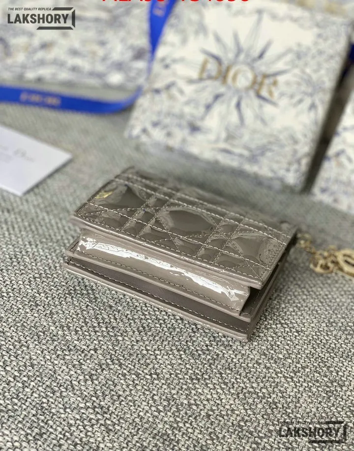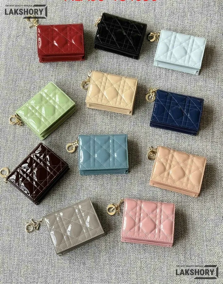 Dior 1:1 Mirror Replica Patent Cannage Lady Dior Lotus Wallet 9CM/3.5IN