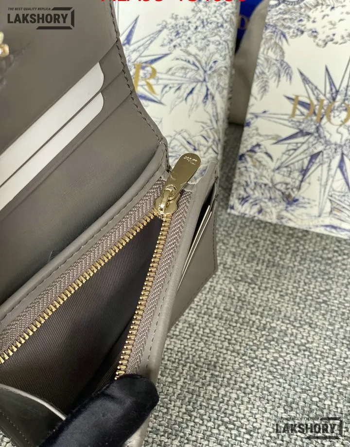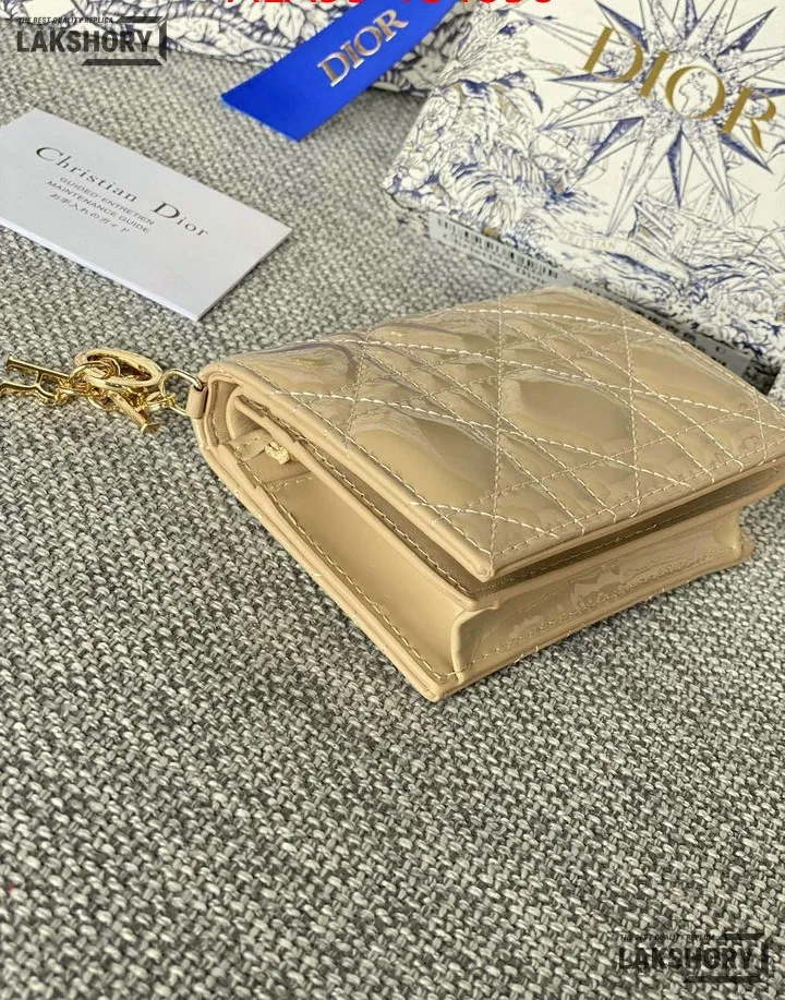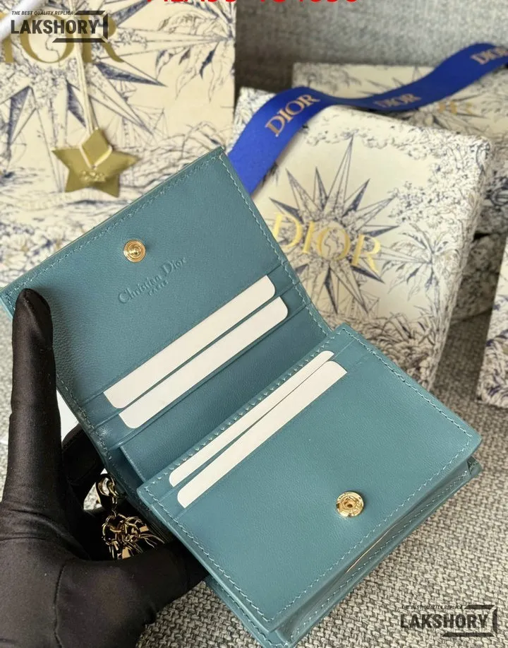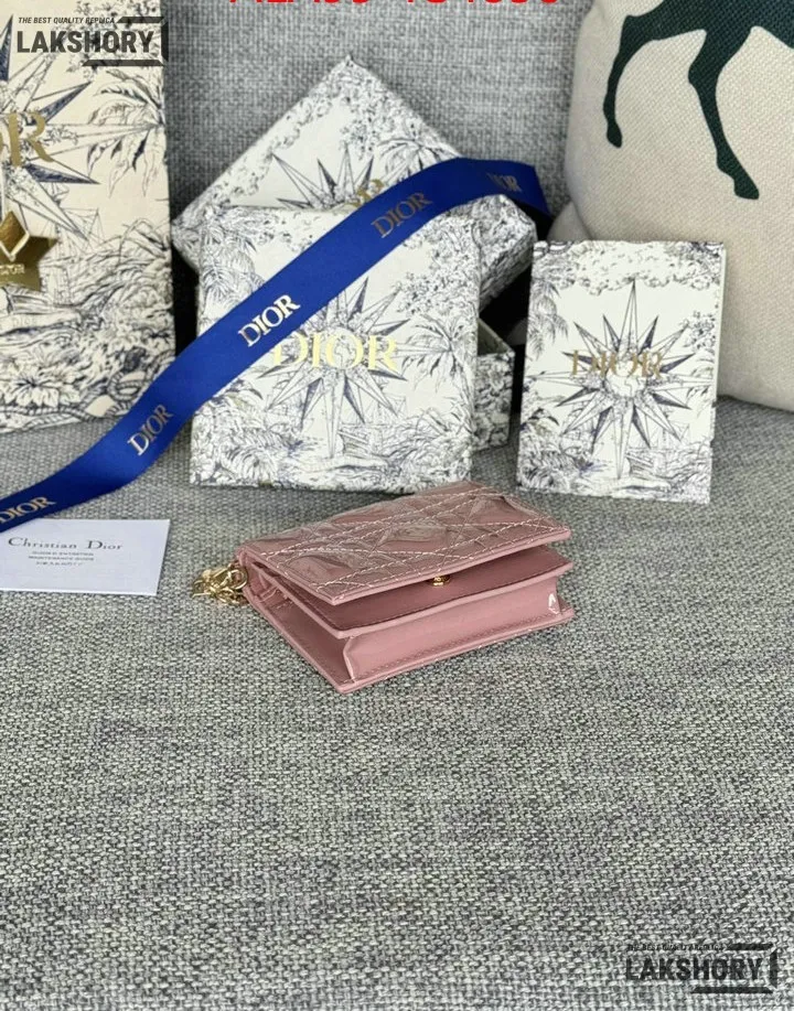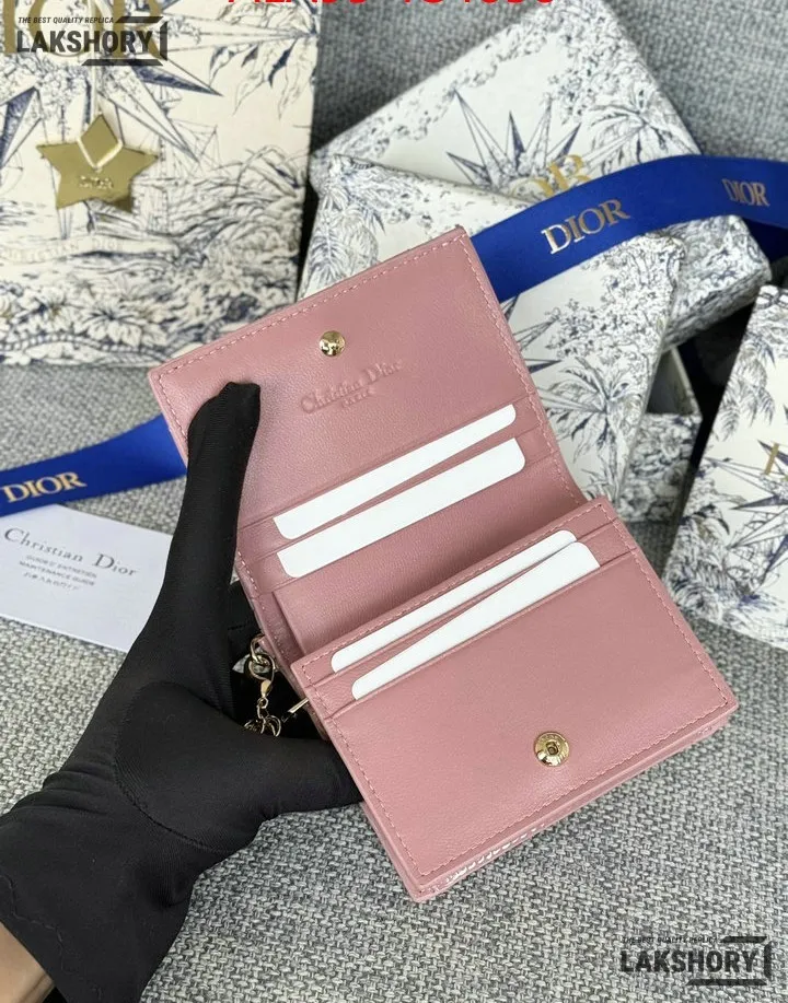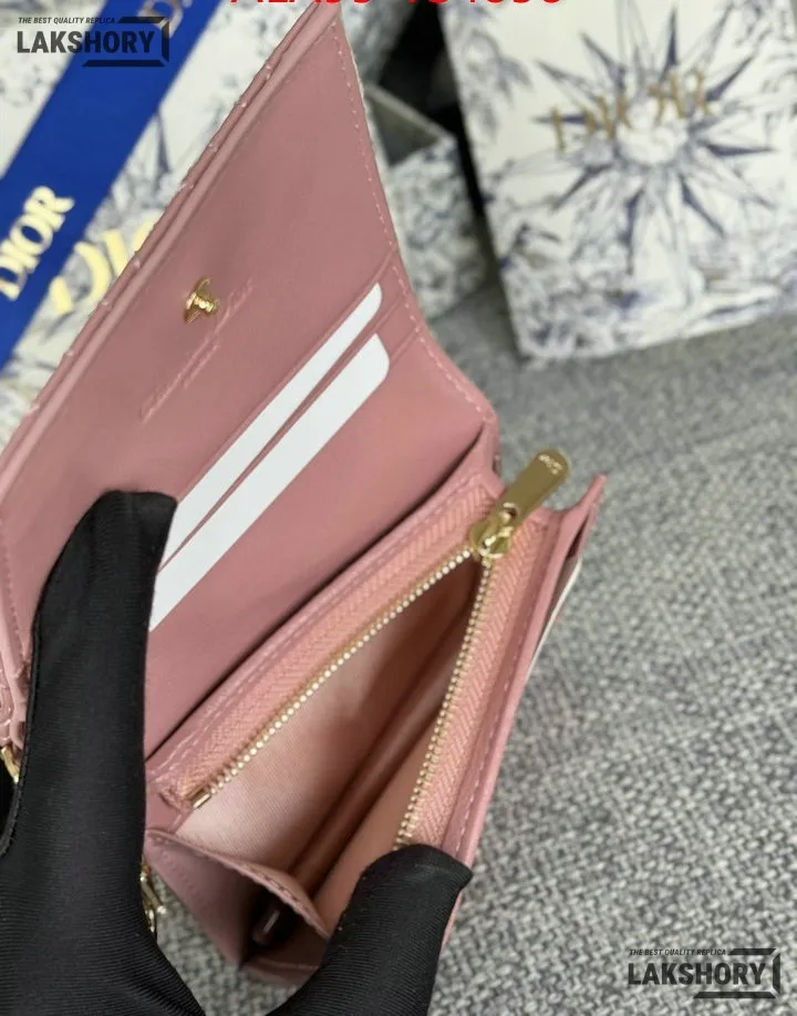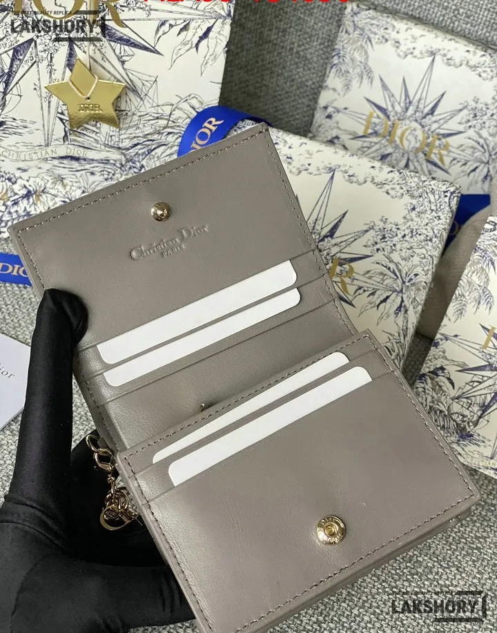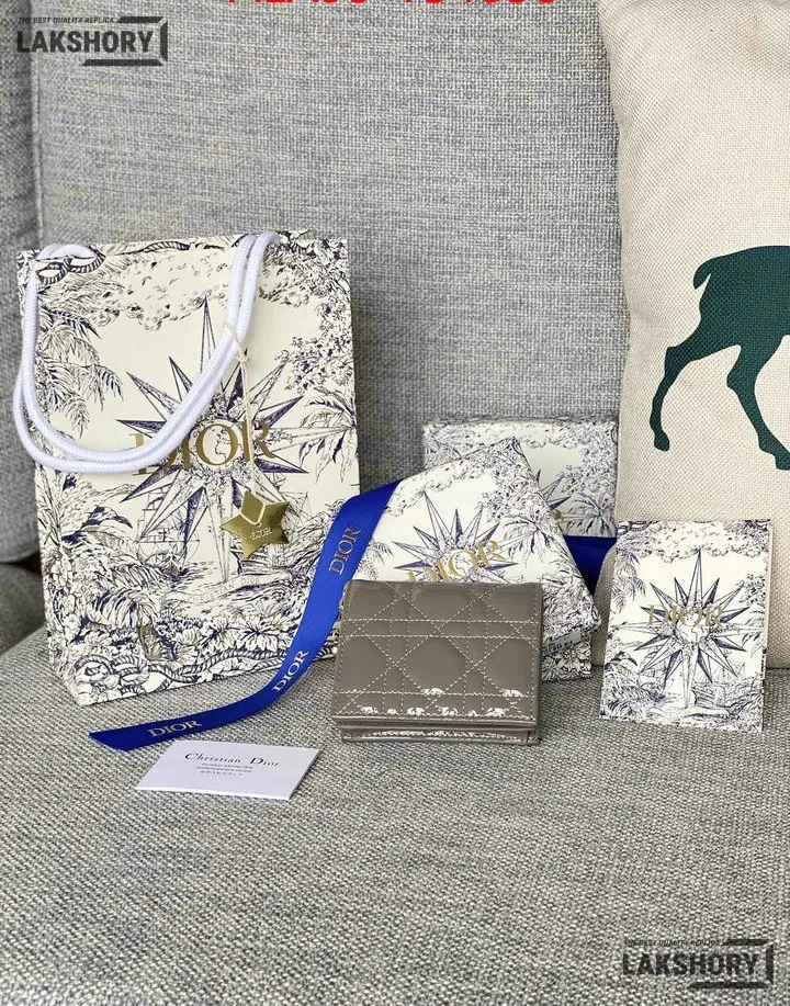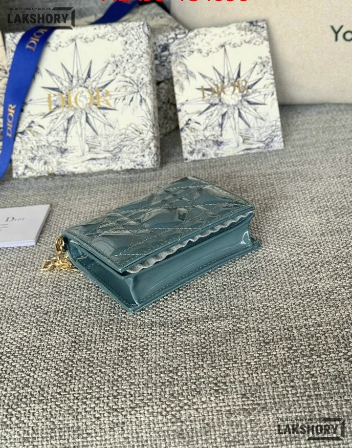 Dior 1:1 Mirror Replica Patent Cannage Lady Dior Lotus Wallet 9CM/3.5IN