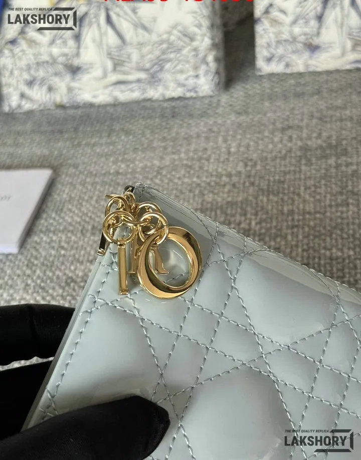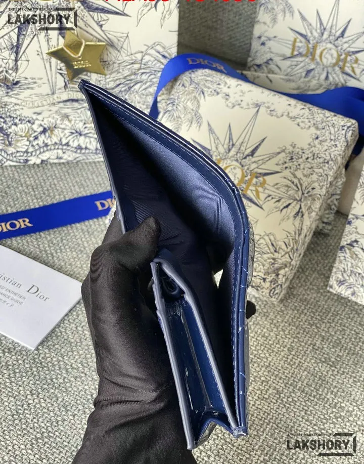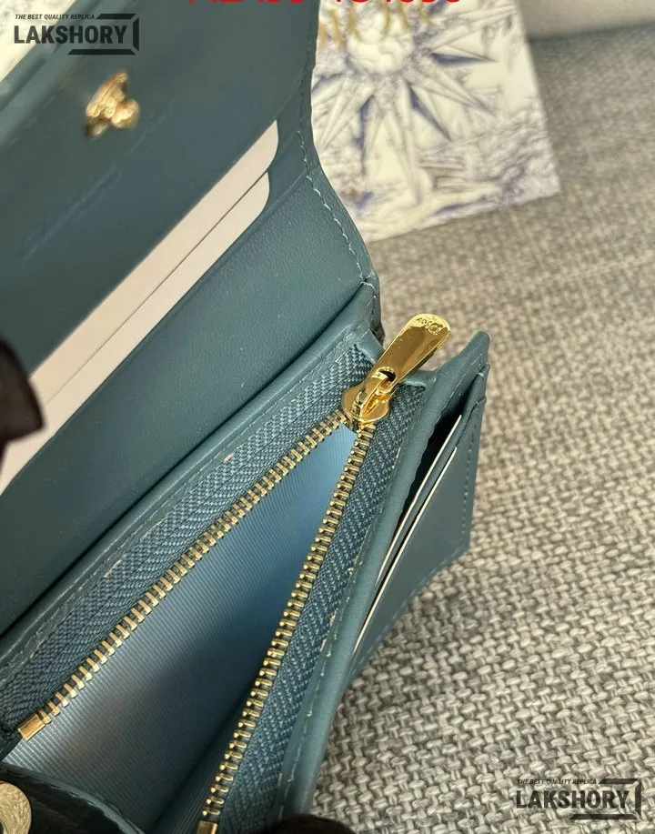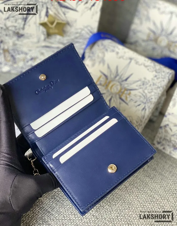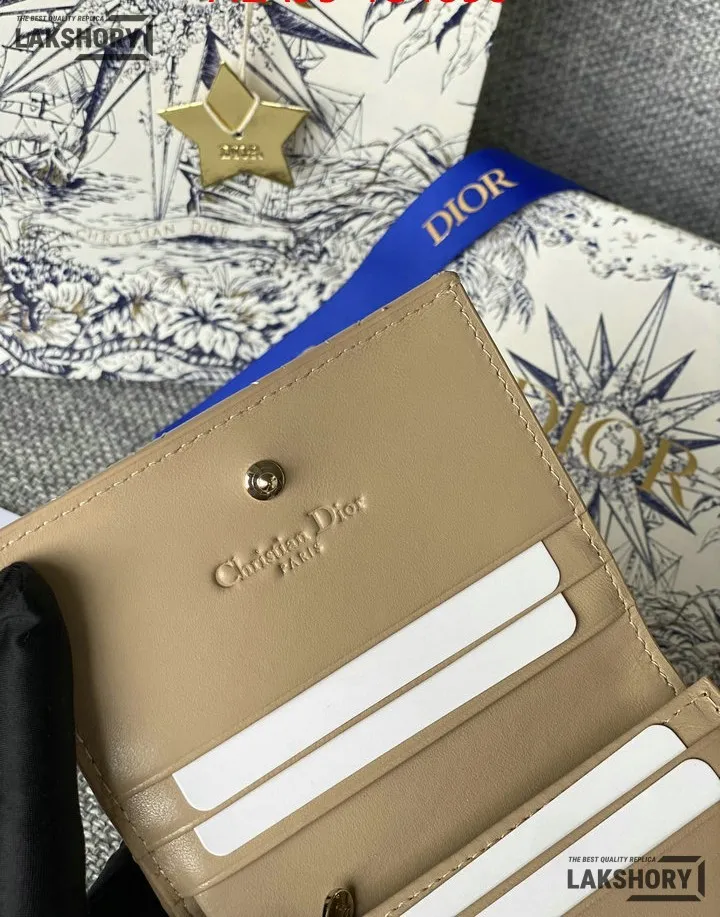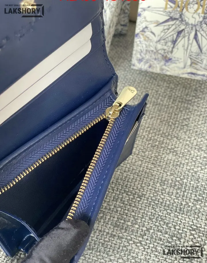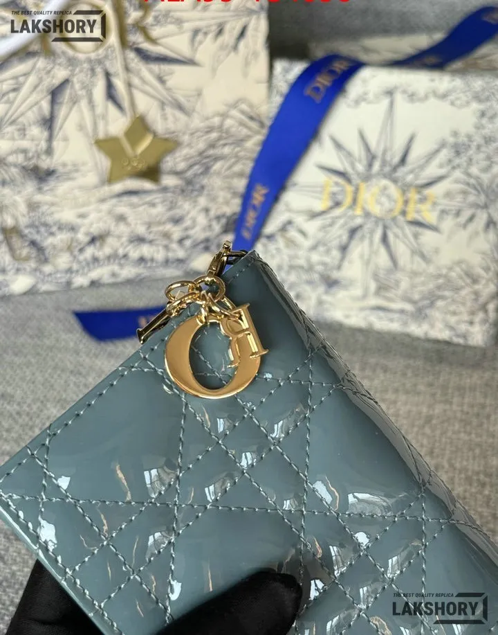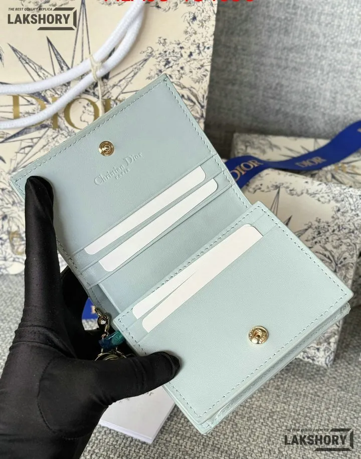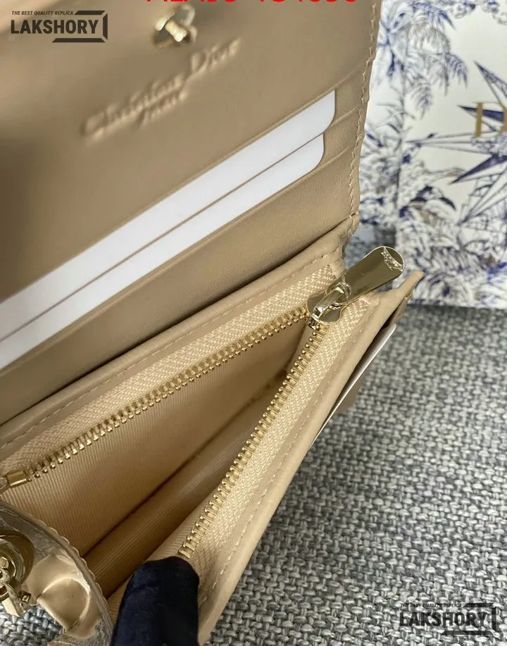 Dior 1:1 Mirror Replica Patent Cannage Lady Dior Lotus Wallet 9CM/3.5IN