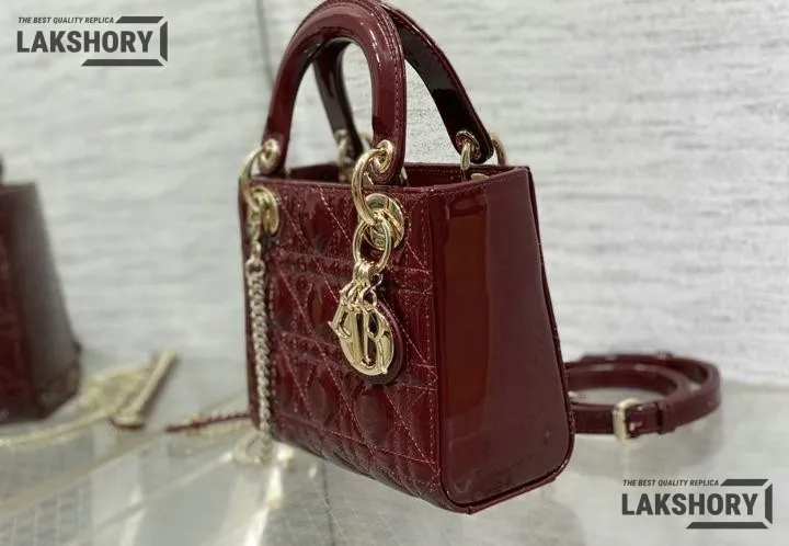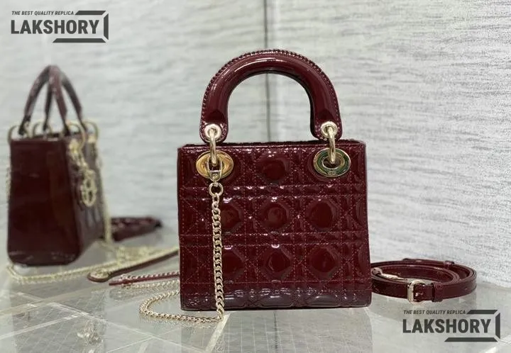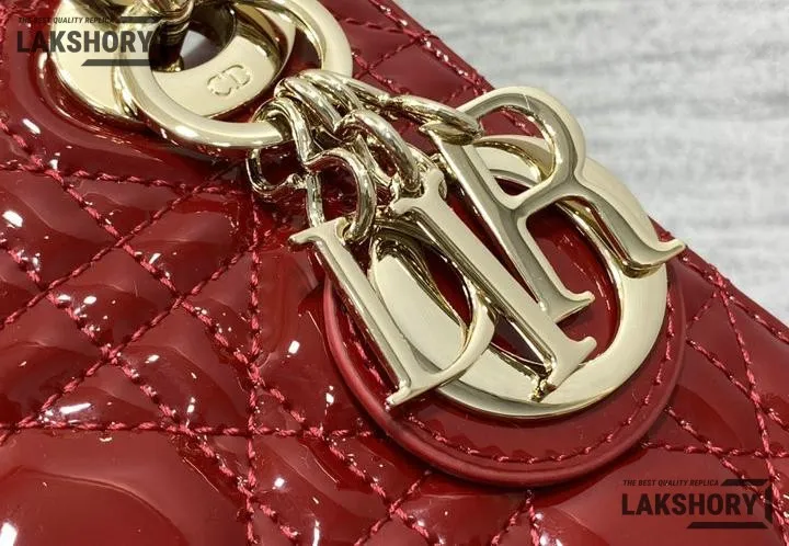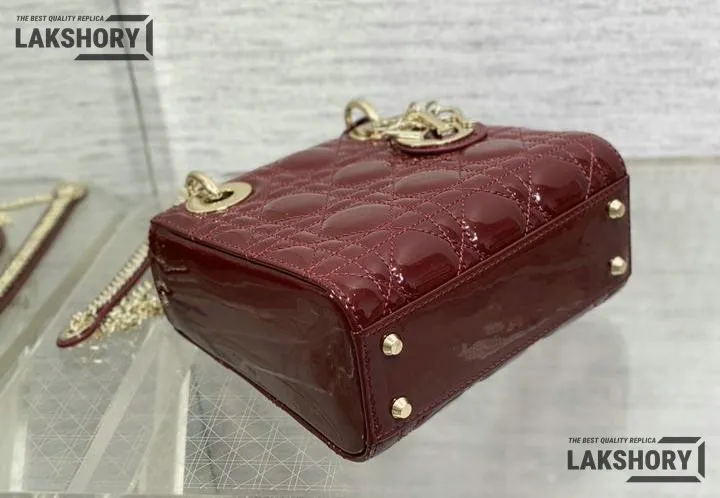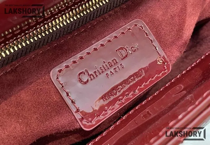 Dior 1:1 Mirror Replica Patent Cannage Lady Dior Top Handle Bag