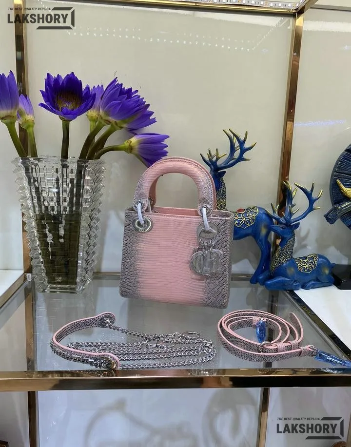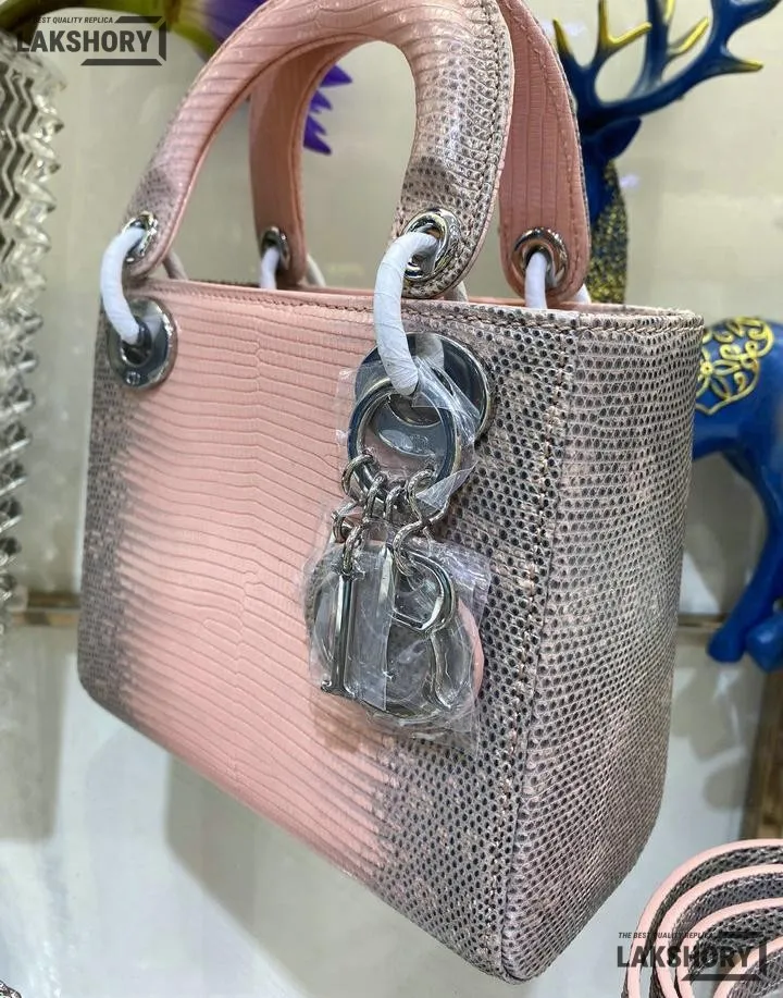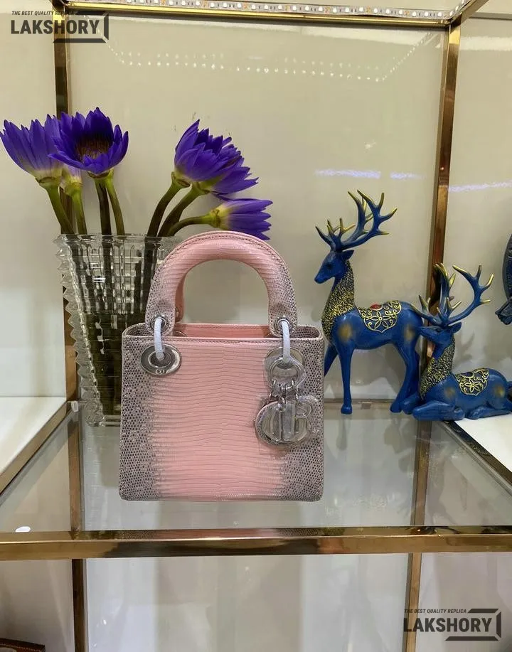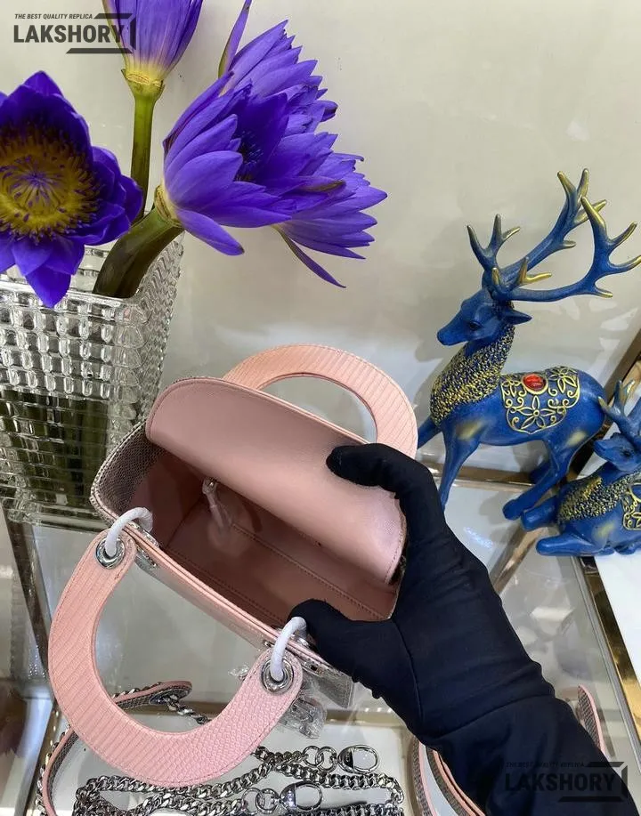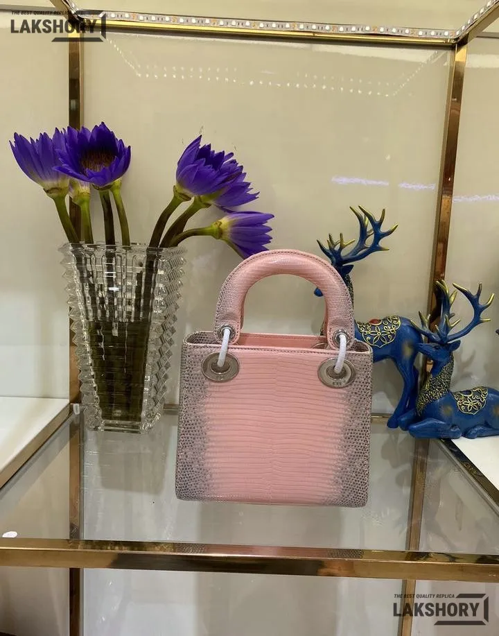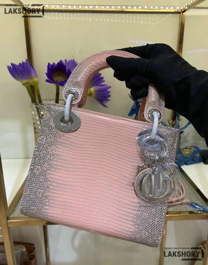 Dior 1:1 Mirror Replica Pink Mini Lizard Lady Bag 17CM/6.7IN