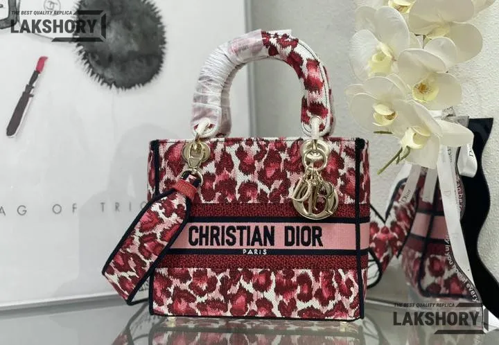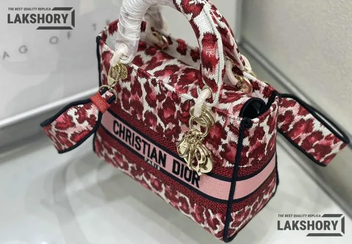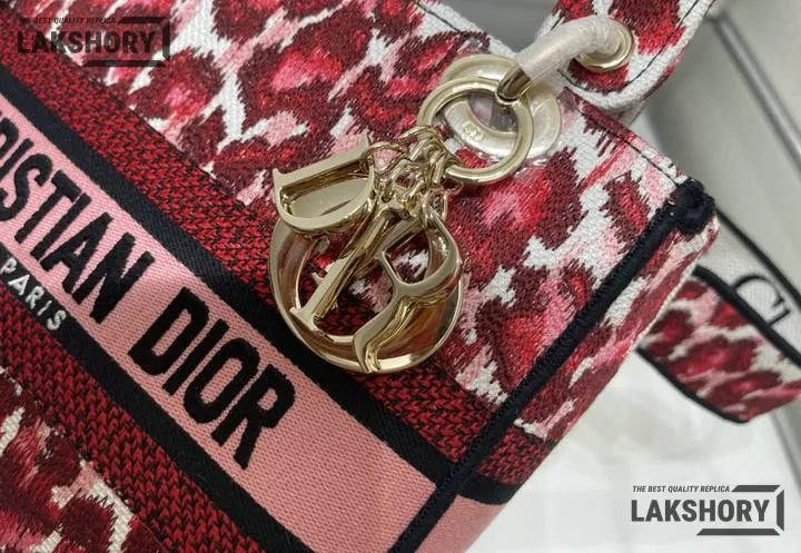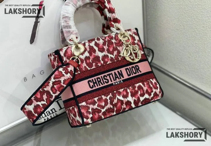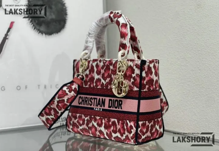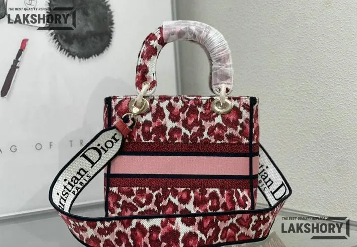 Dior 1:1 Mirror Replica Pink Mizza Leopard Lady D-Lite Canvas 24CM/9.4IN