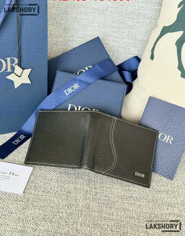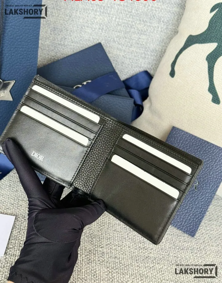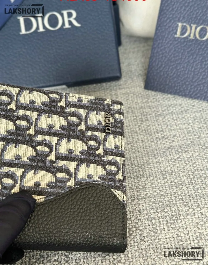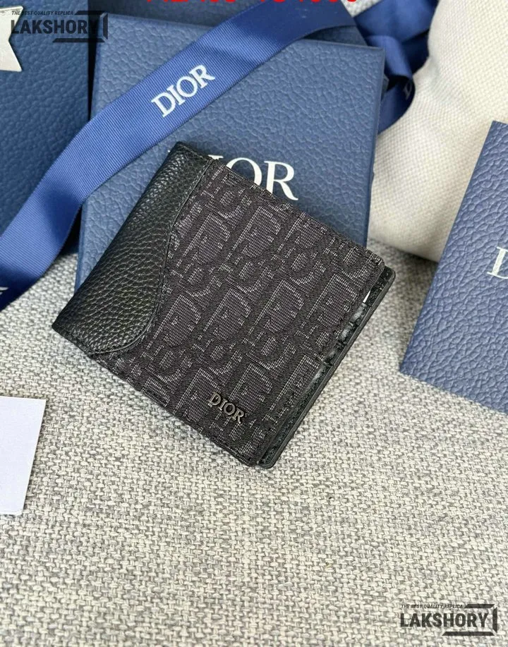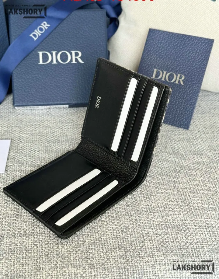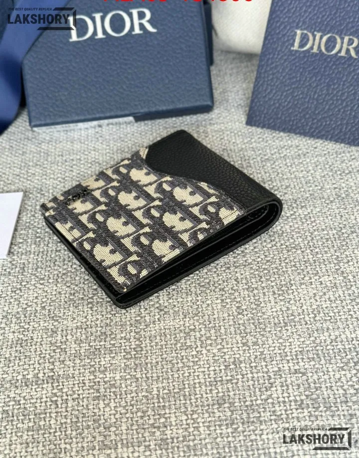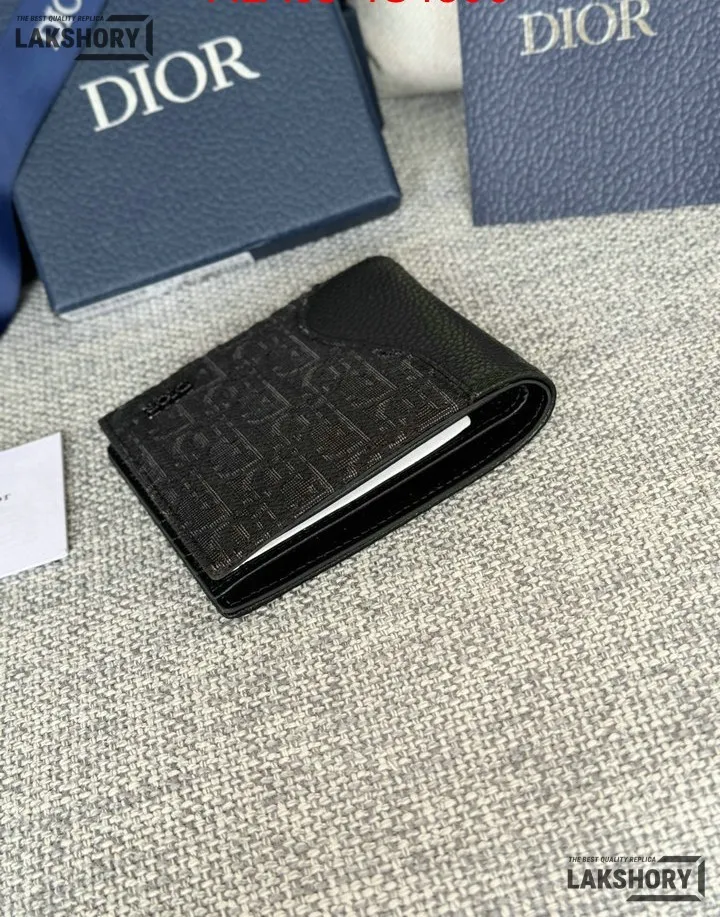 Dior 1:1 Mirror Replica Saddle Bifold Wallet Grained Calfskin Marquetry 11.5CM/4.5IN