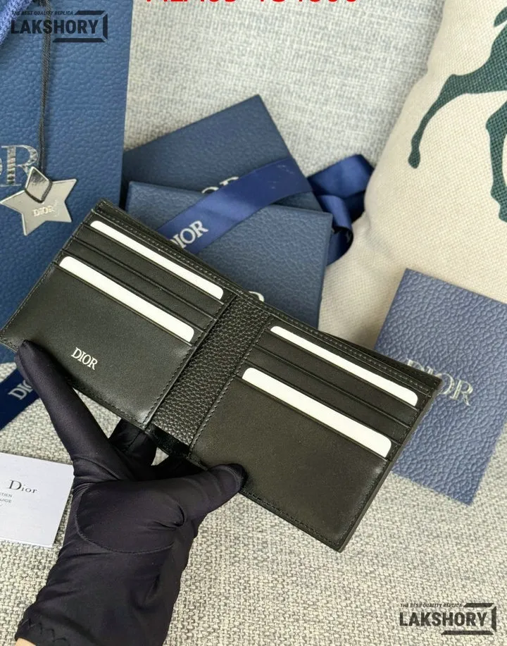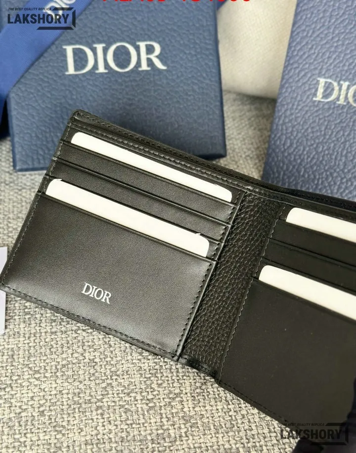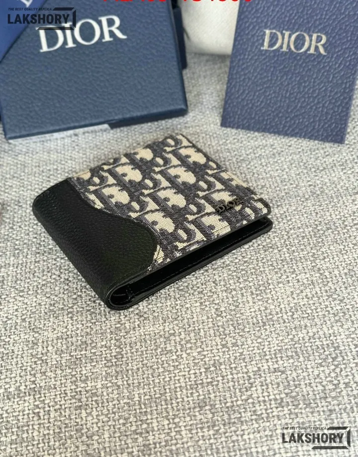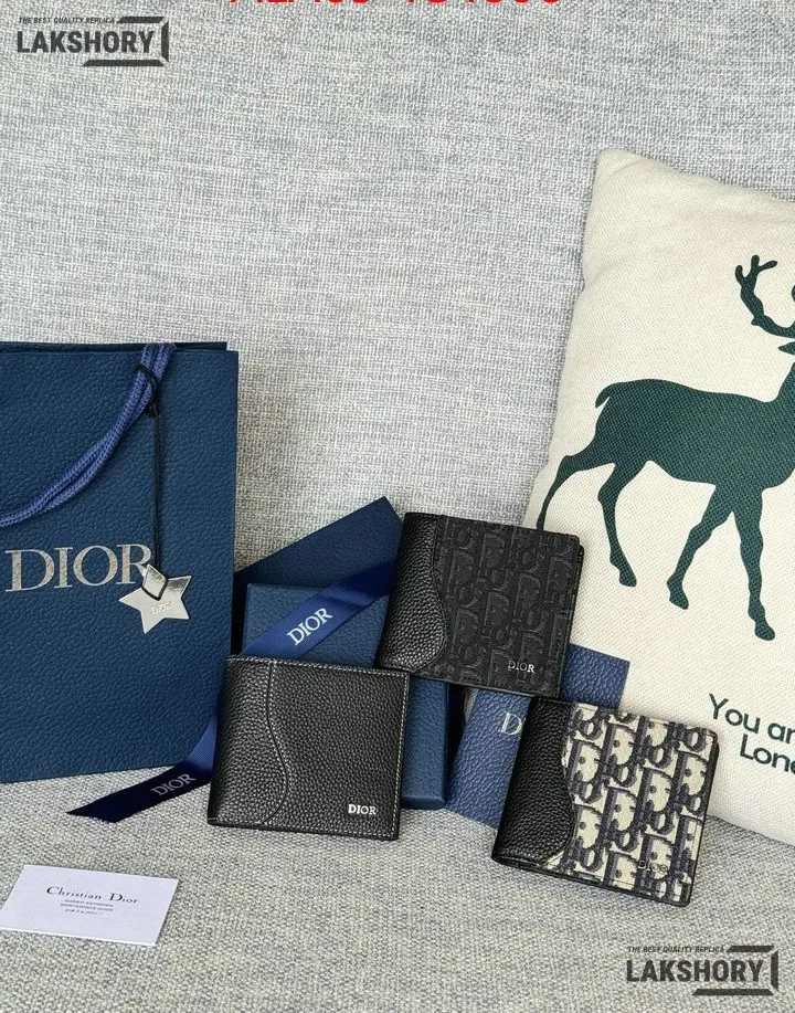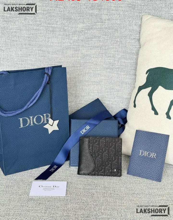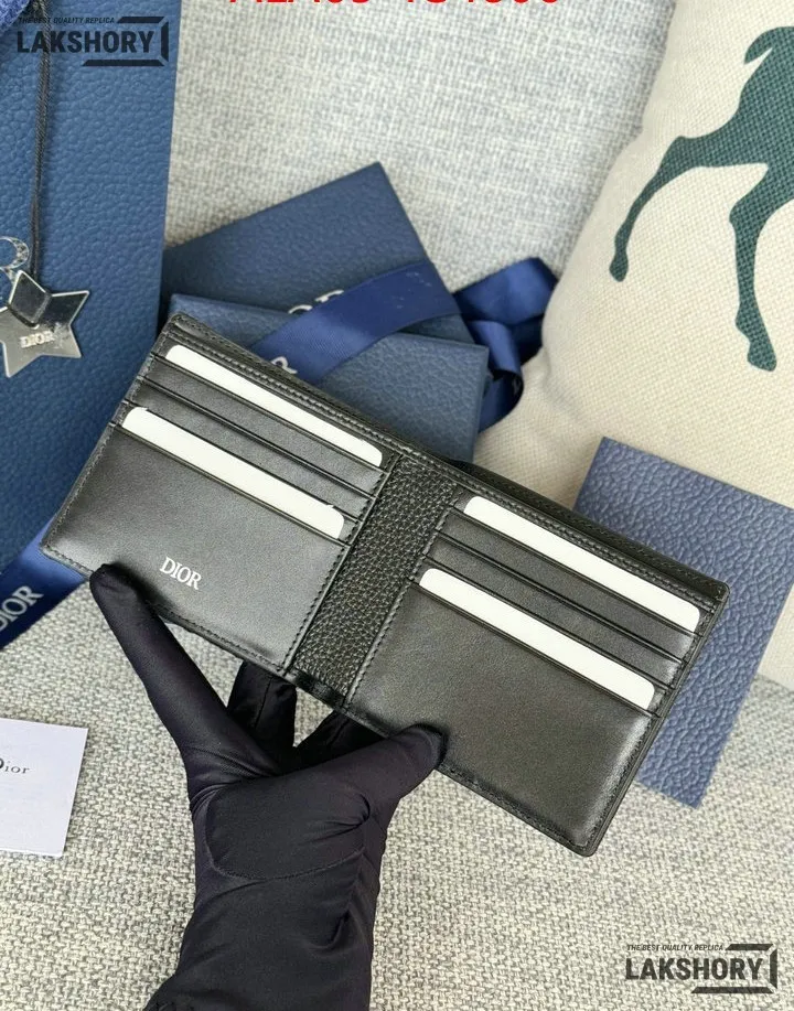 Dior 1:1 Mirror Replica Saddle Bifold Wallet Grained Calfskin Marquetry 11.5CM/4.5IN