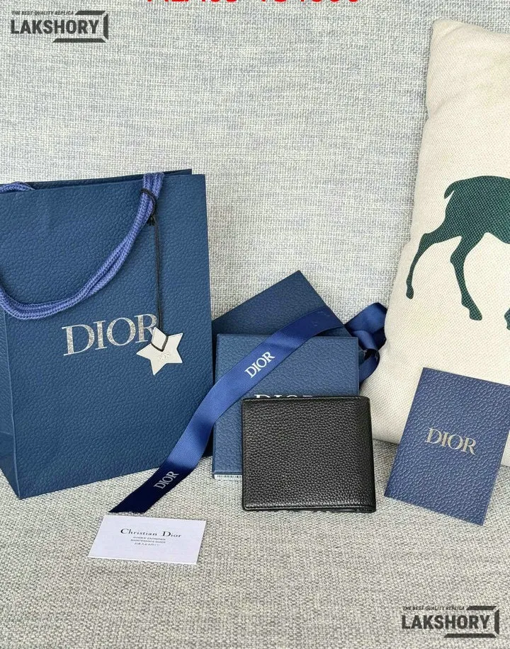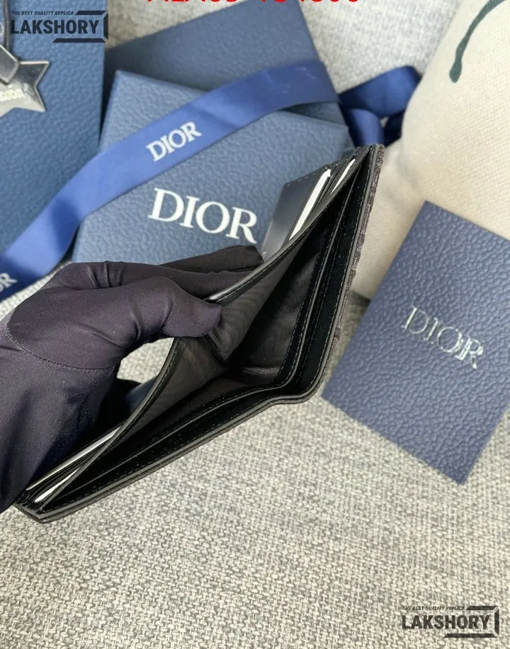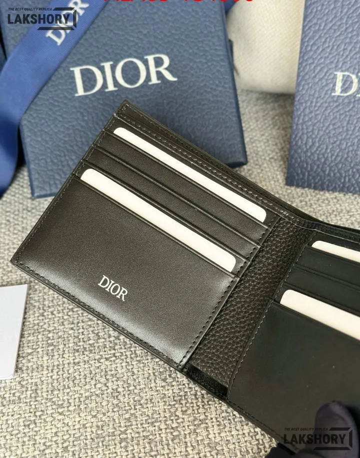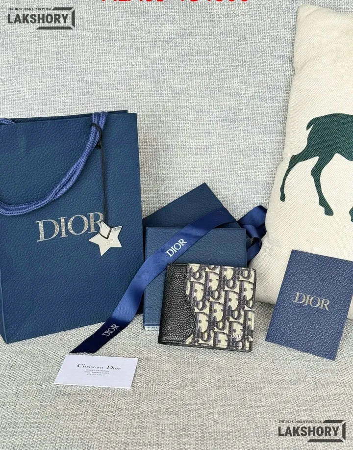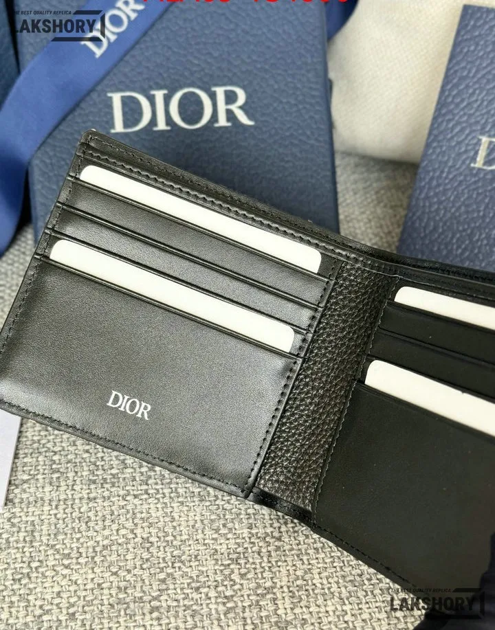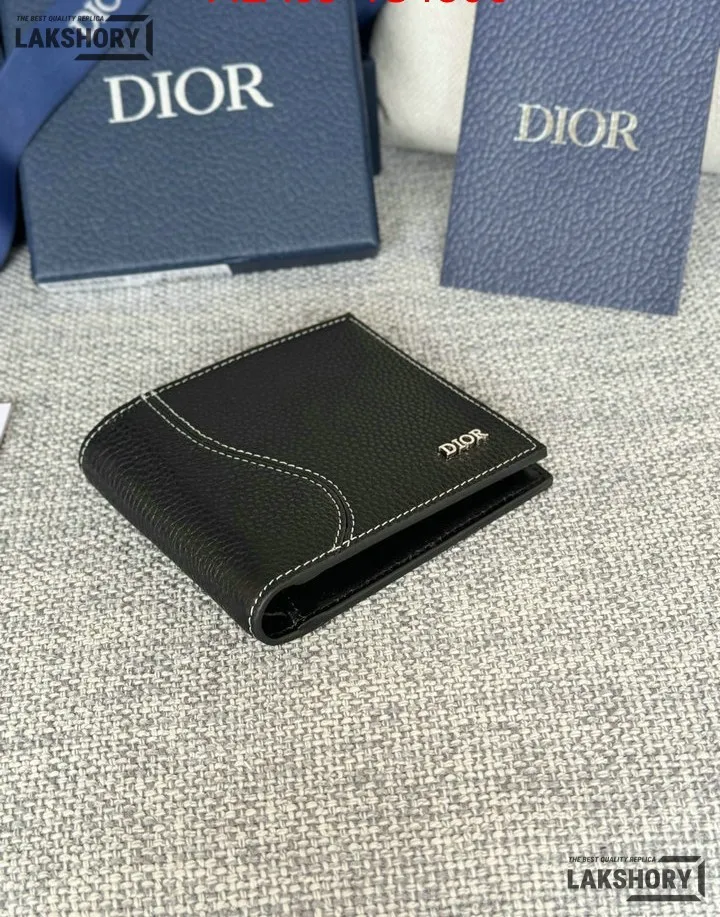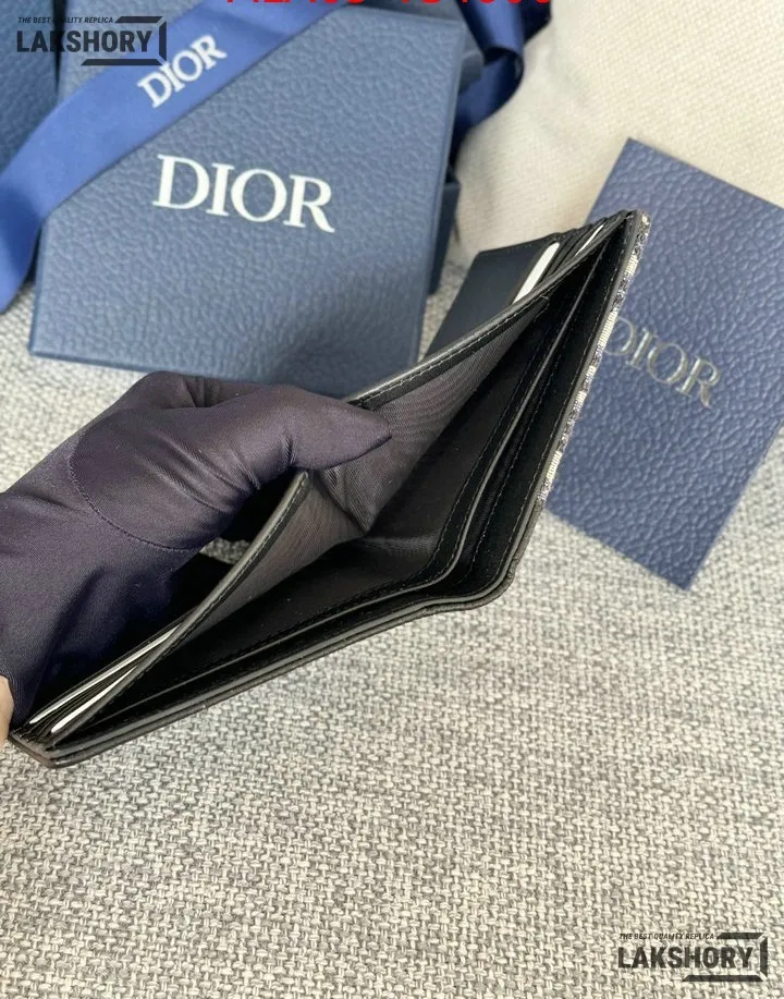 Dior 1:1 Mirror Replica Saddle Bifold Wallet Grained Calfskin Marquetry 11.5CM/4.5IN