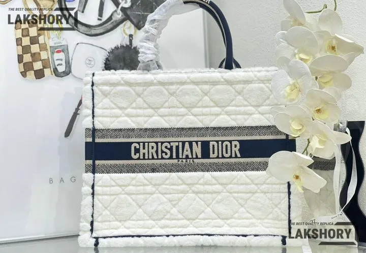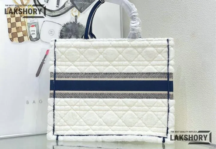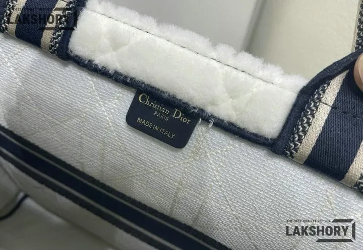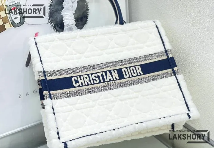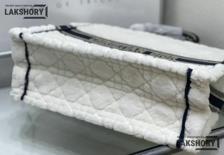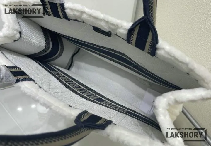 Dior 1:1 Mirror Replica Shearling Cannage Book Tote Ecru Blue
