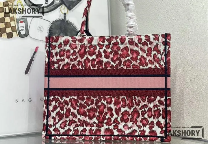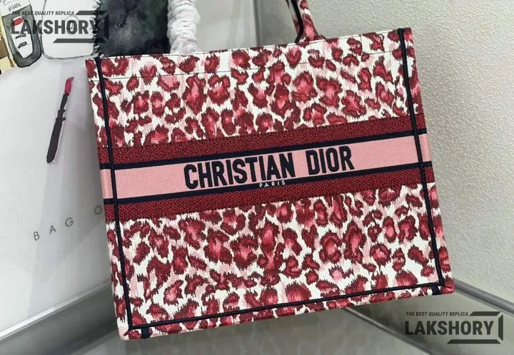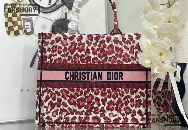 Dior 1:1 Mirror Replica Shopper Leopard Mizza Book Tote Embroidered
