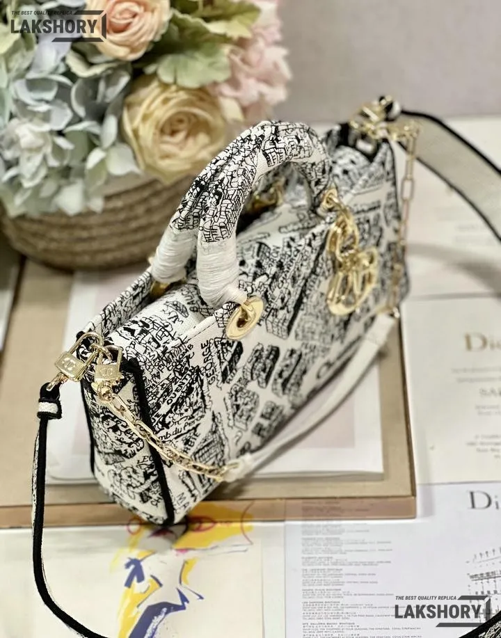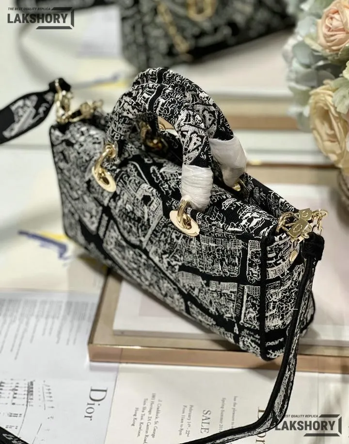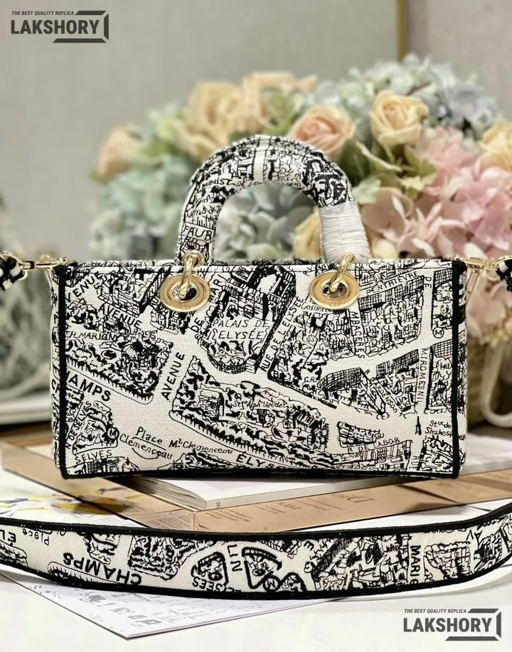 Dior 1:1 Mirror Replica Small Calfskin Plan De Paris Lady D-Joy 26CM/10.2IN