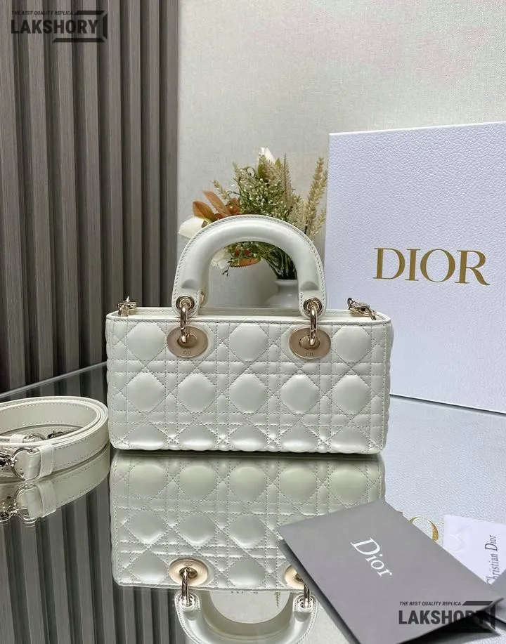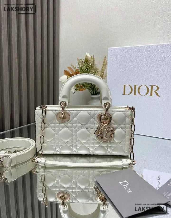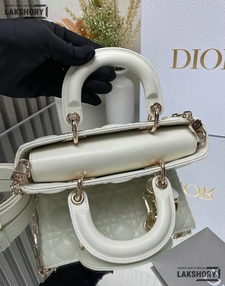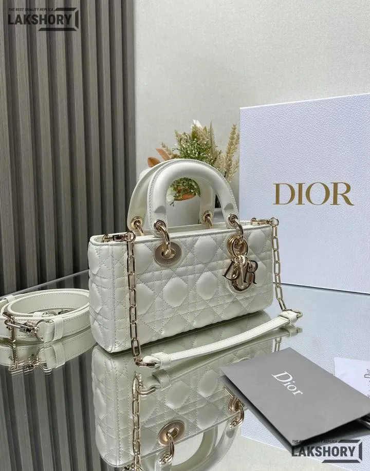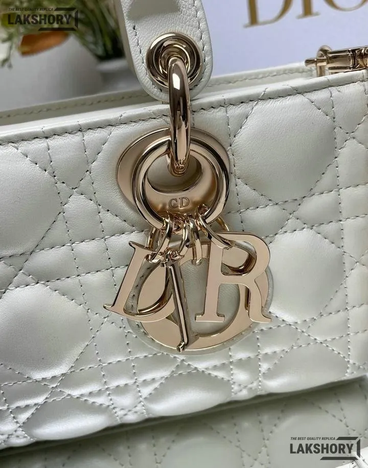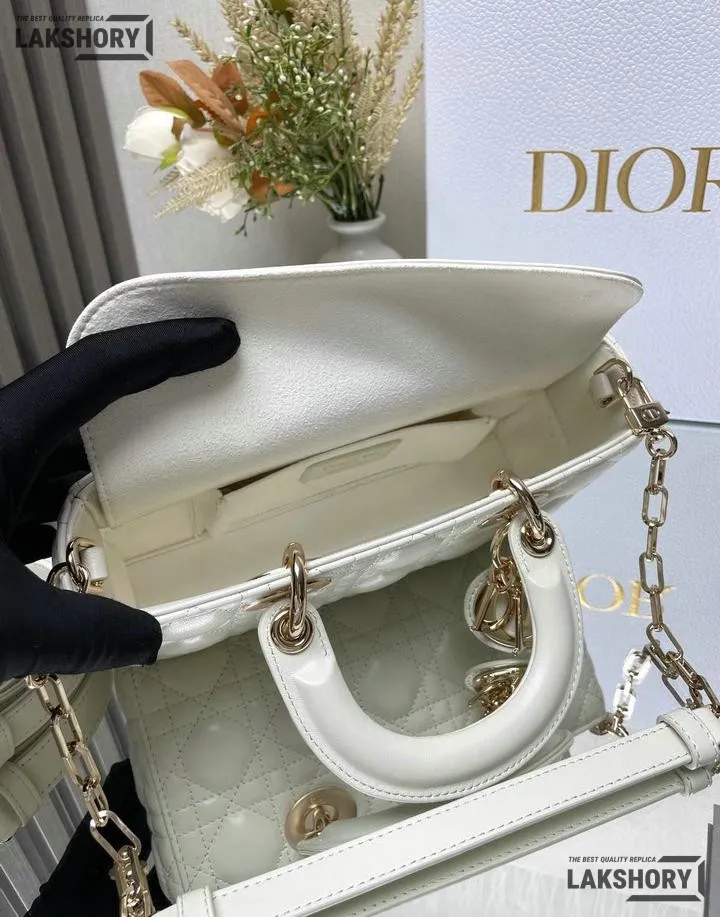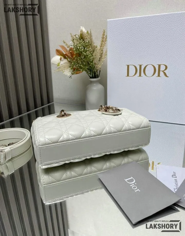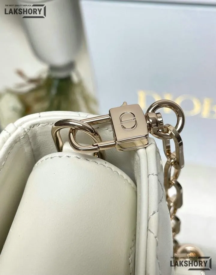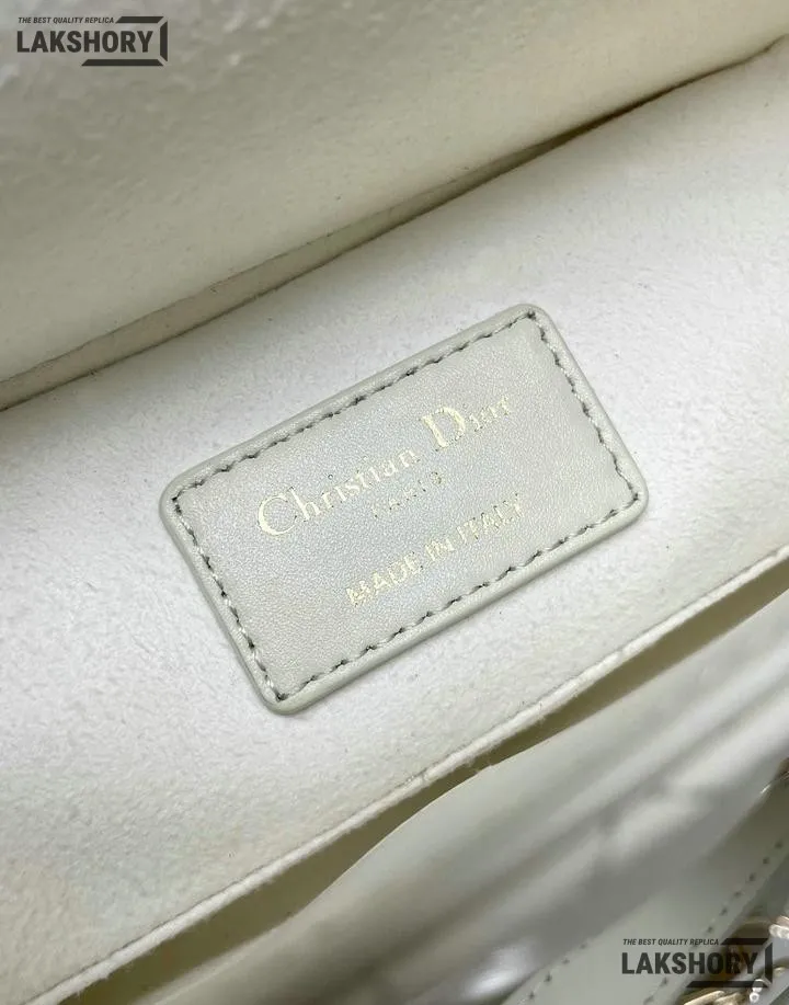 Dior 1:1 Mirror Replica Small White Lambskin Lady D-Joy 22CM/8.7IN