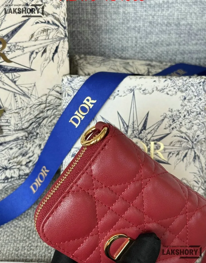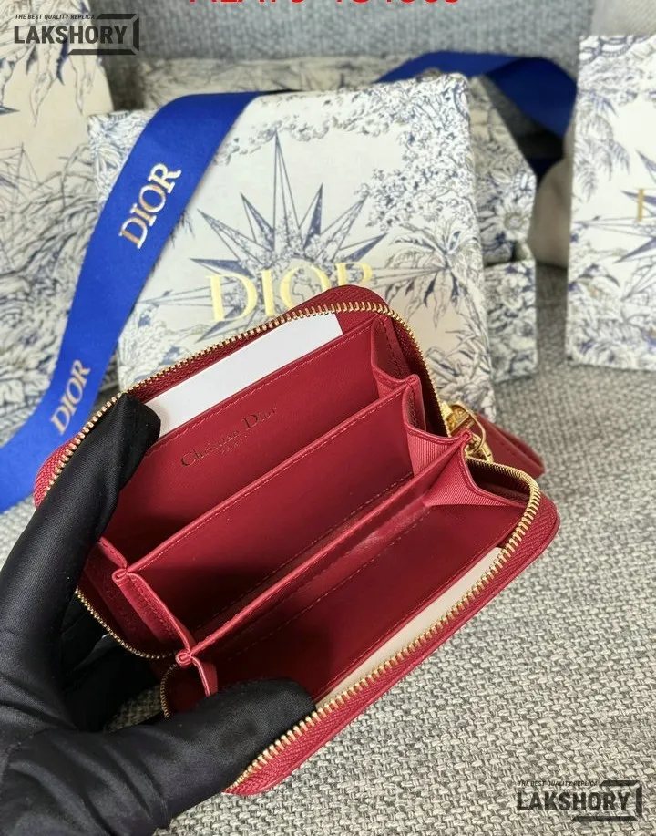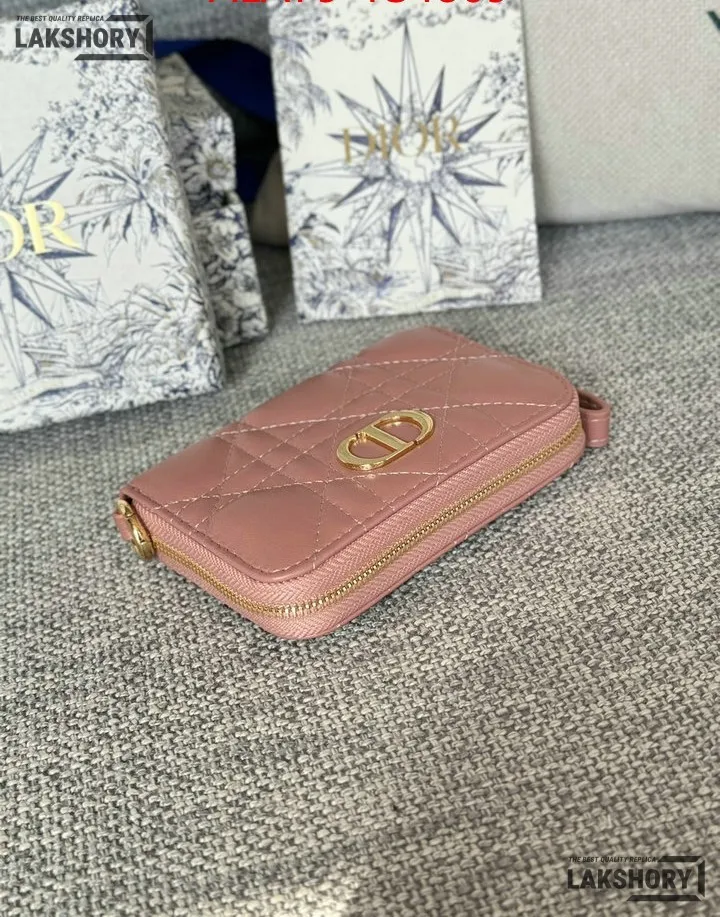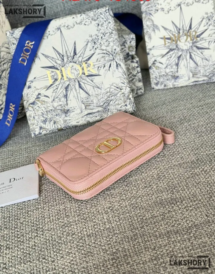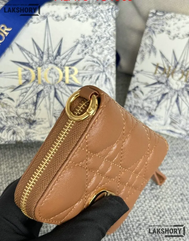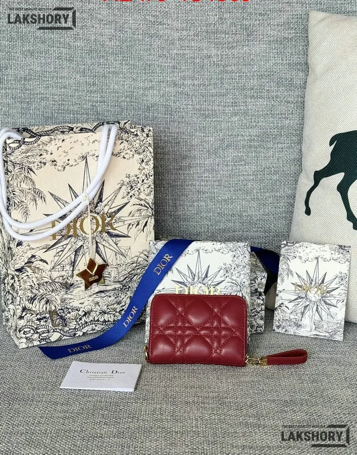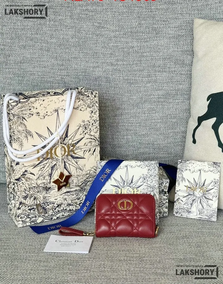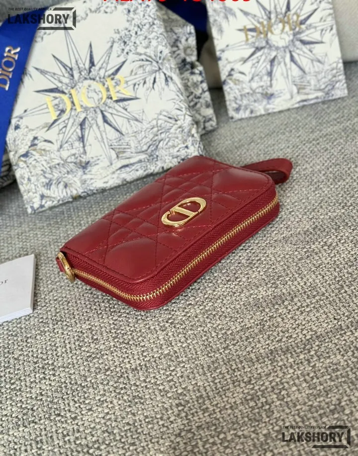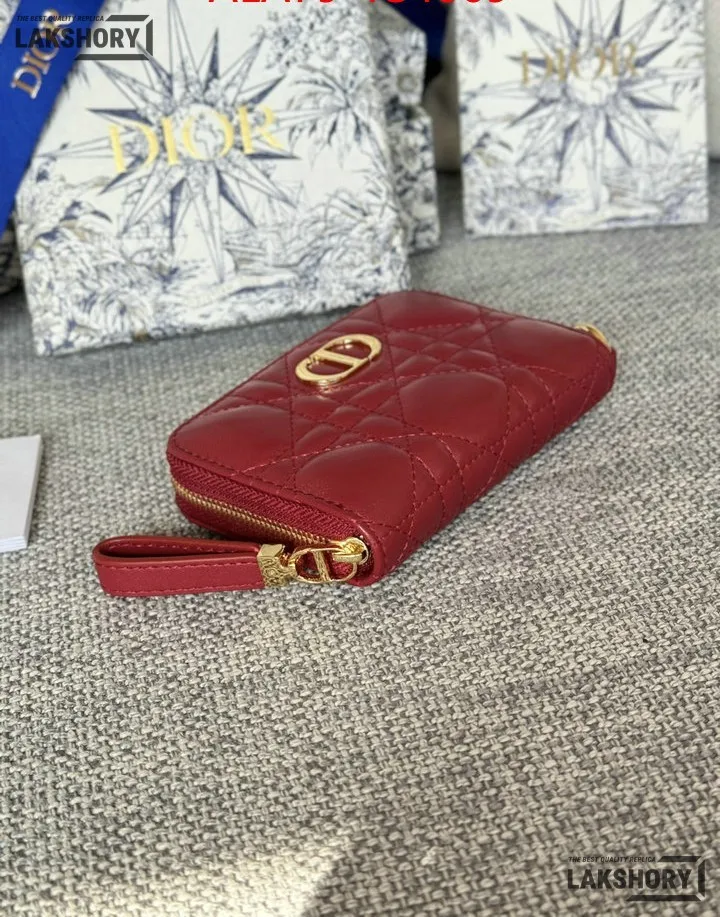 Dior 1:1 Mirror Replica Supple Cannage Caro Scarlet Zipped Wallet 11CM/4.3IN