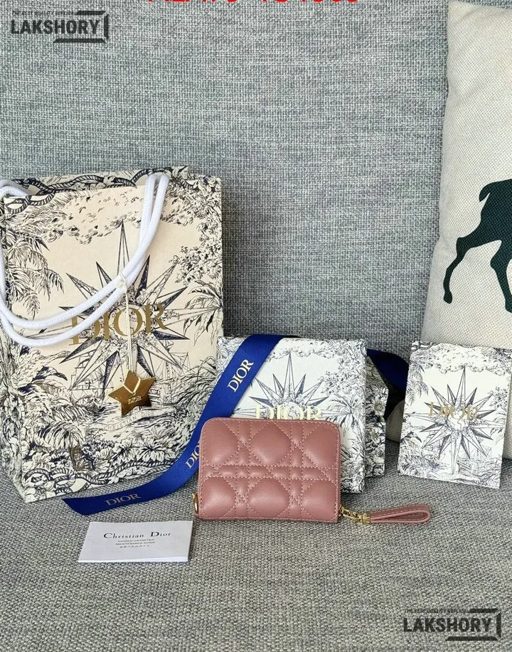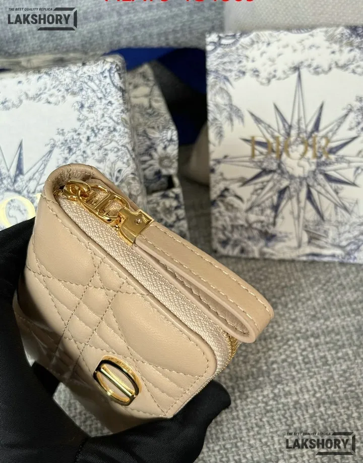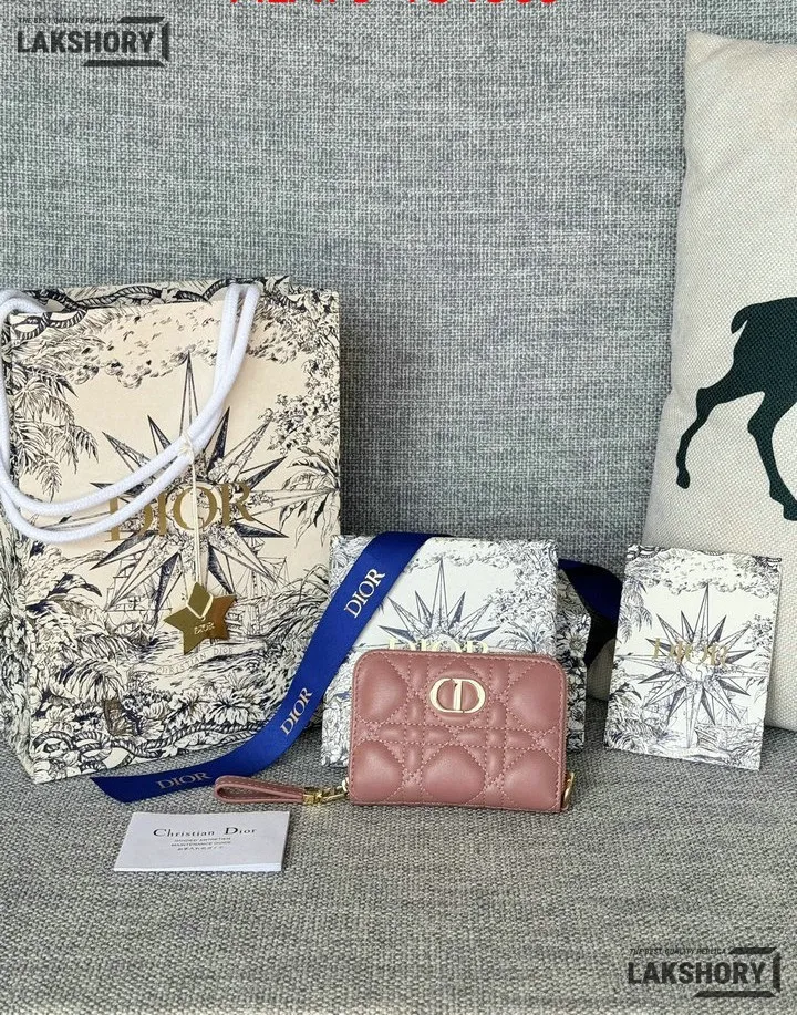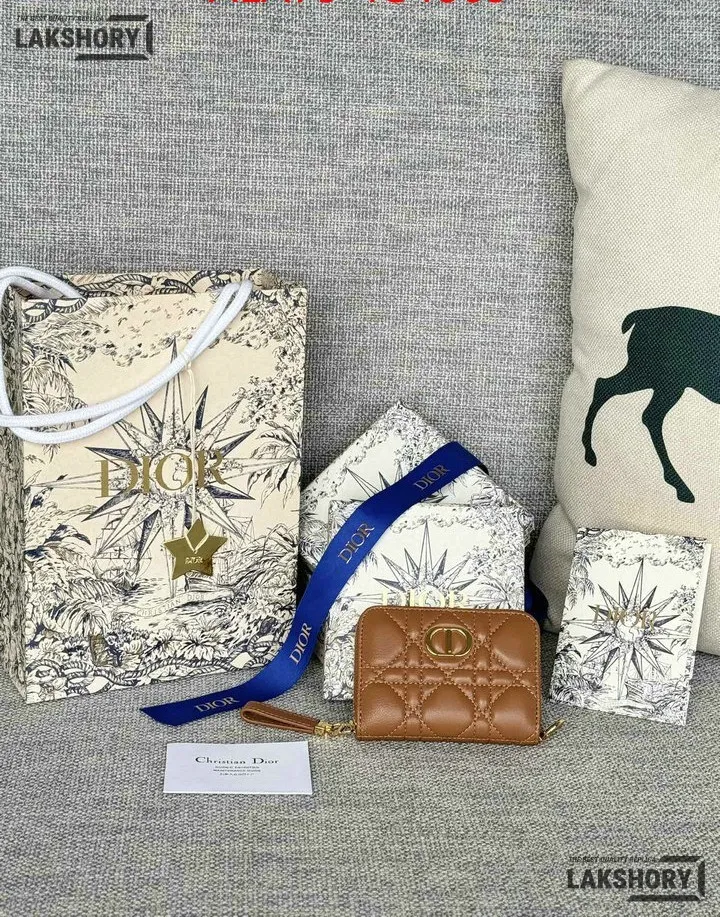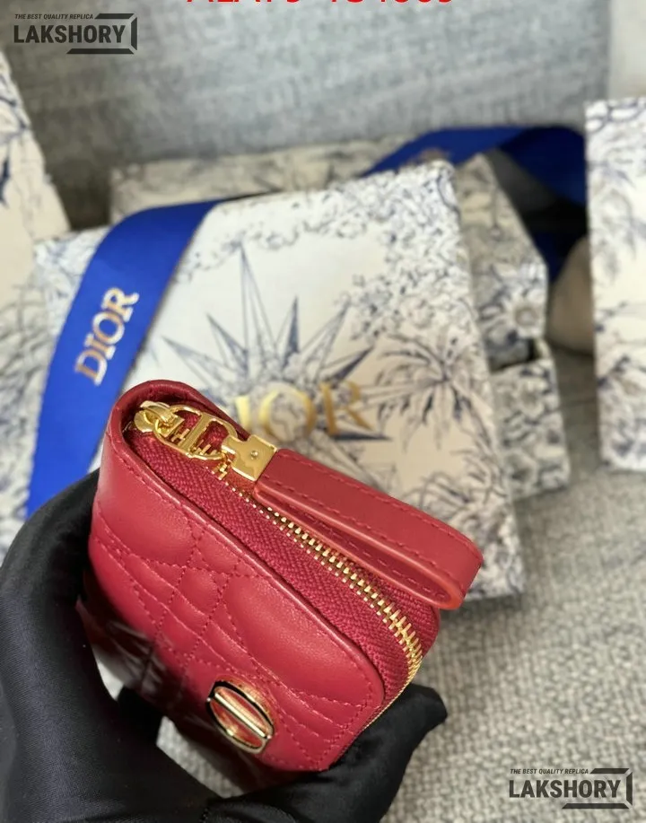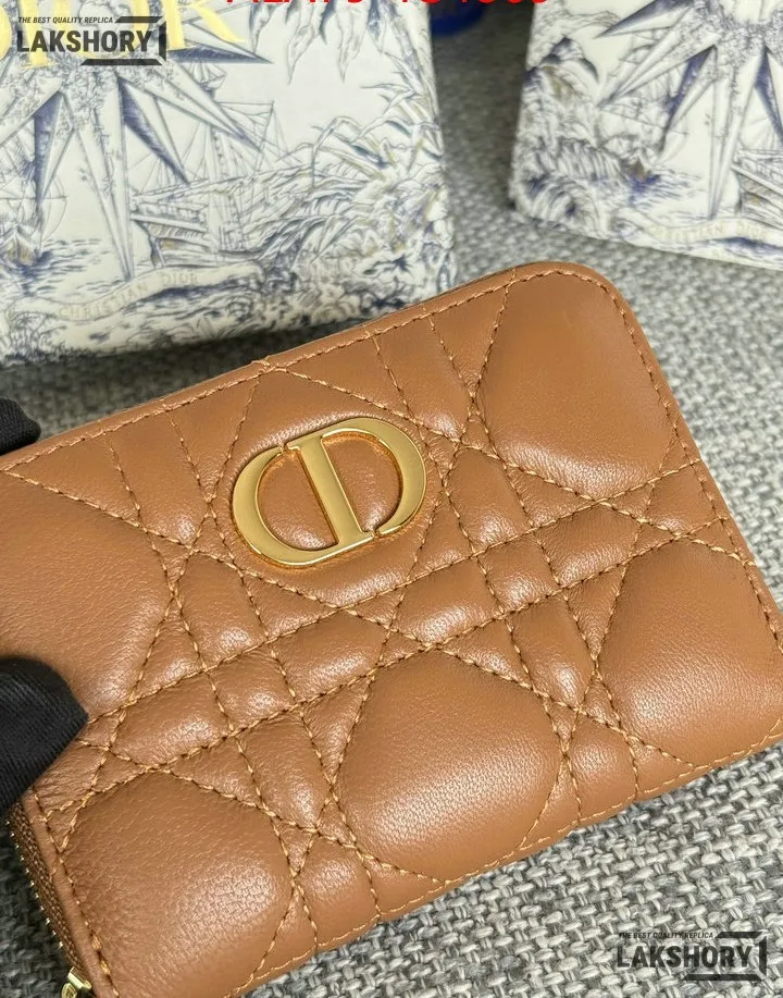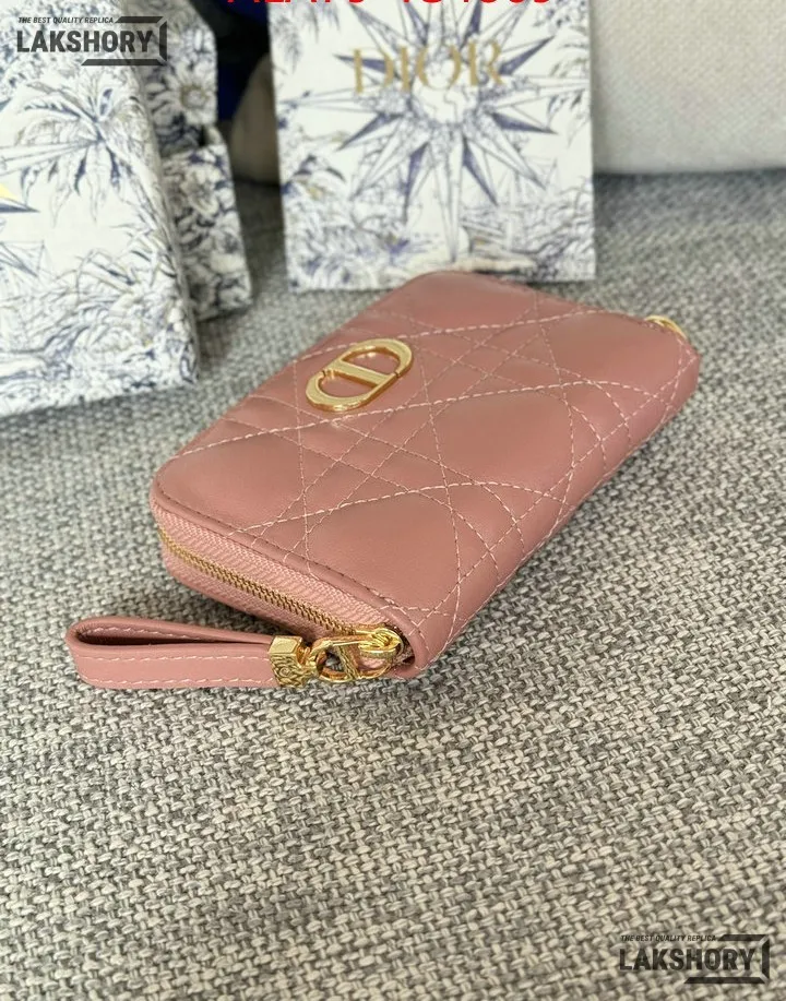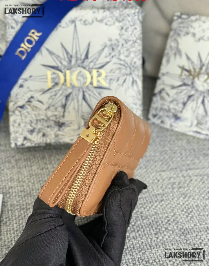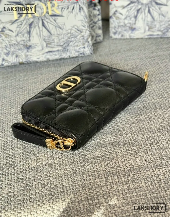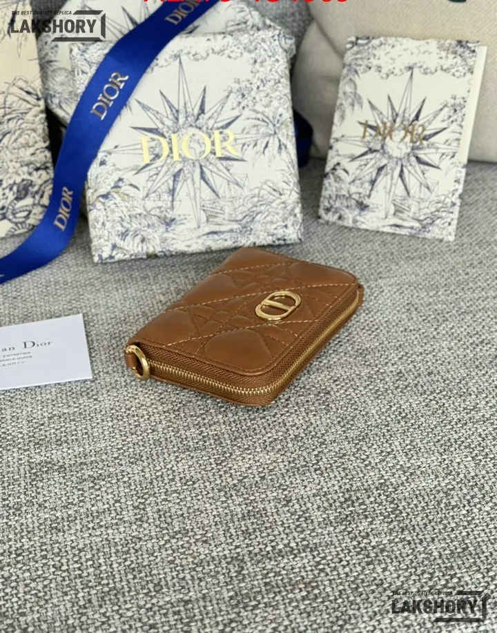 Dior 1:1 Mirror Replica Supple Cannage Caro Scarlet Zipped Wallet 11CM/4.3IN