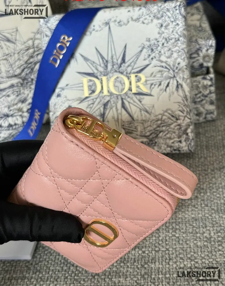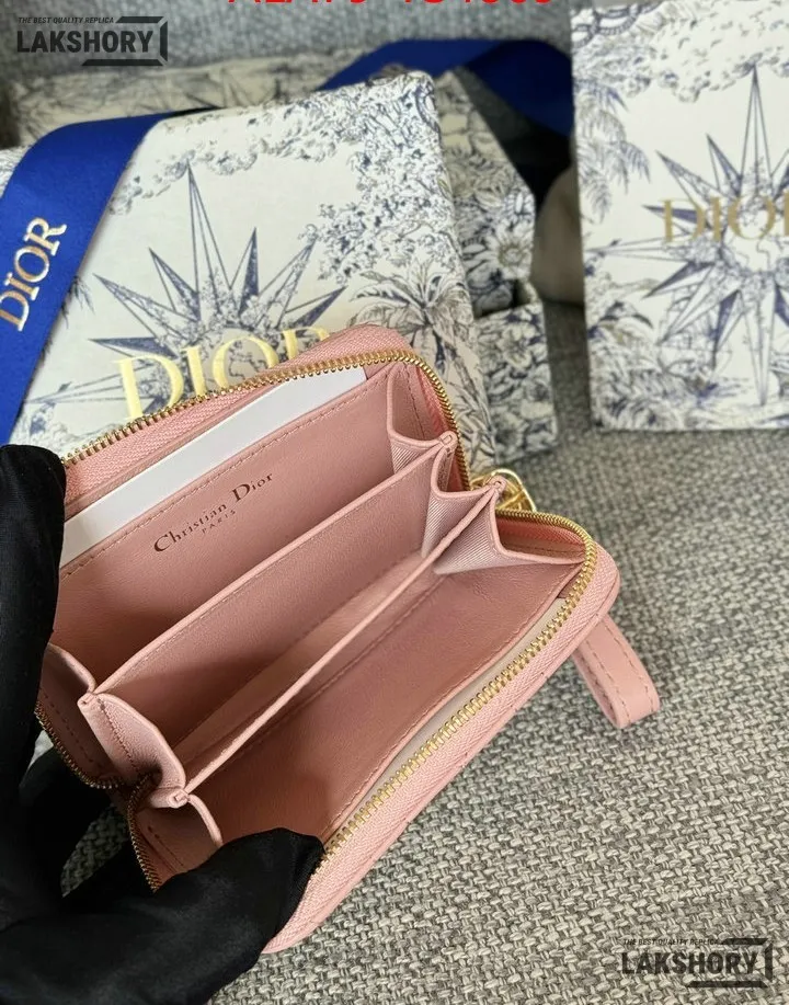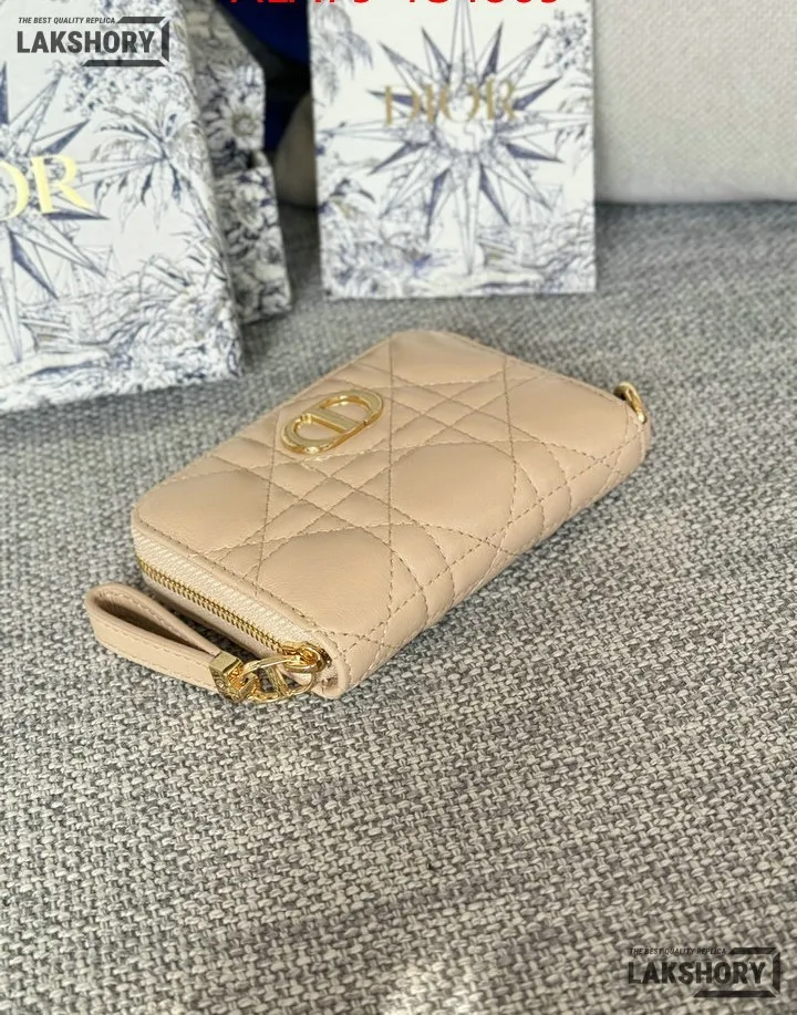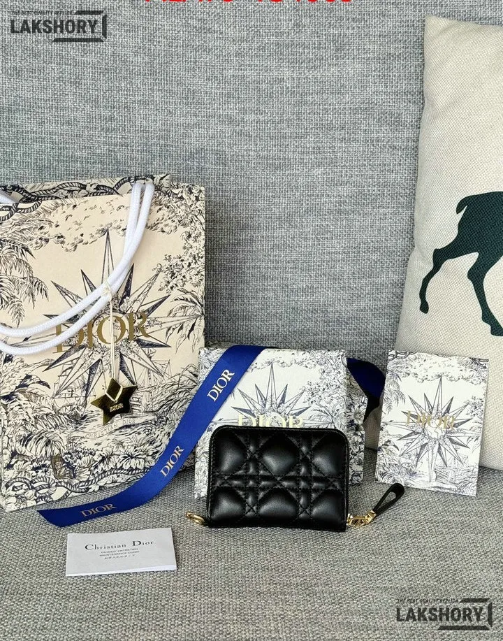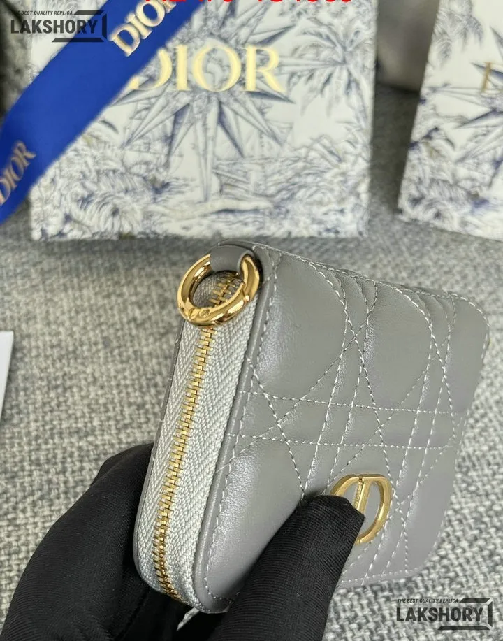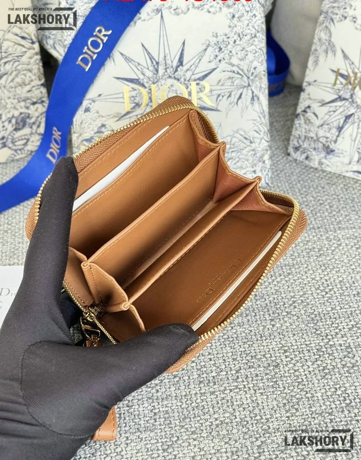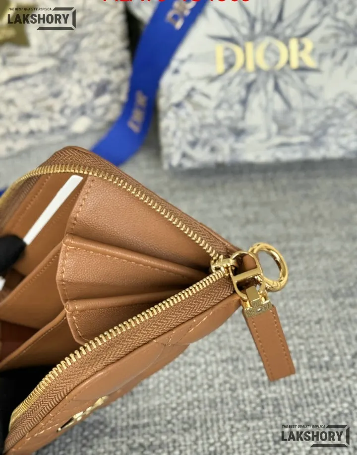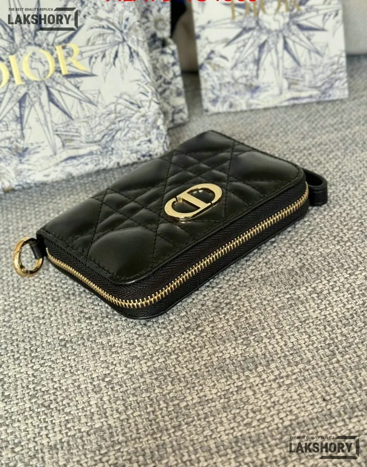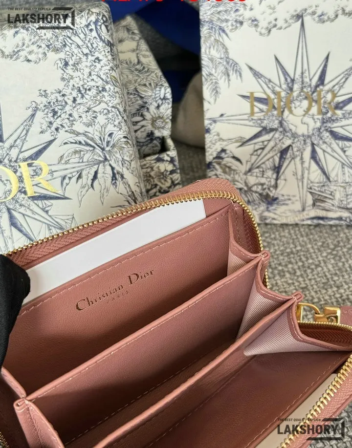 Dior 1:1 Mirror Replica Supple Cannage Caro Scarlet Zipped Wallet 11CM/4.3IN