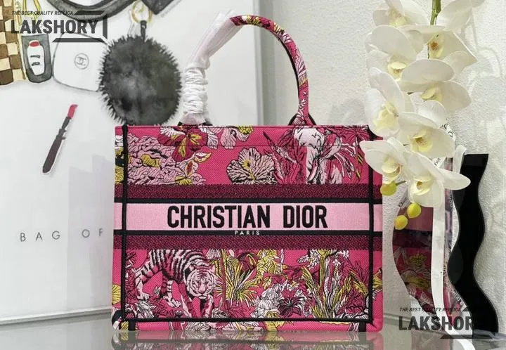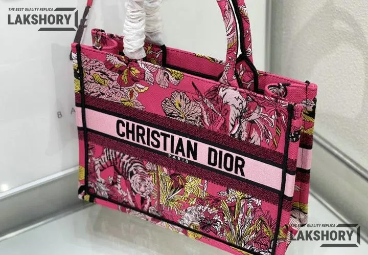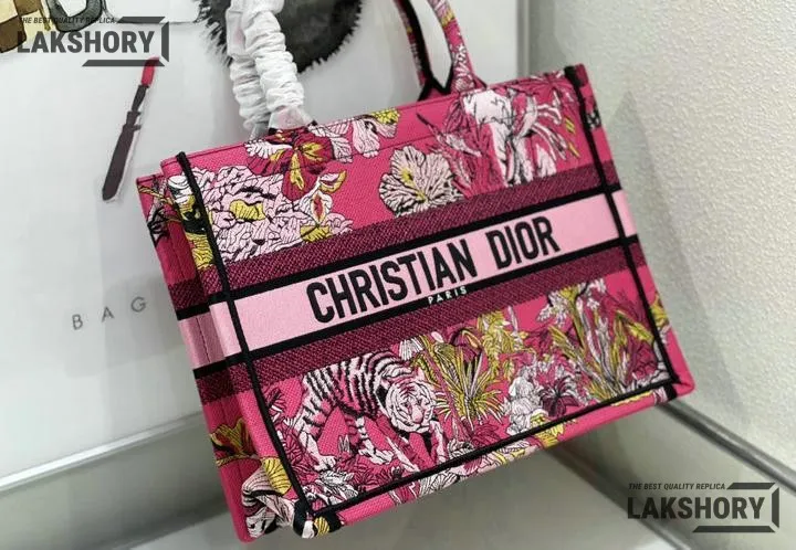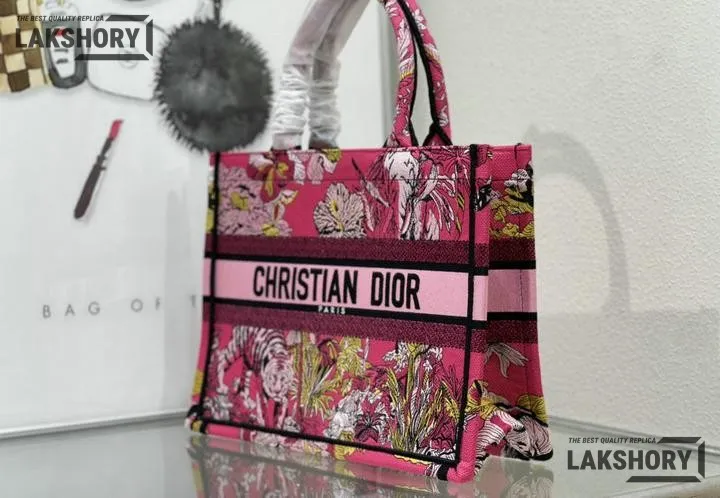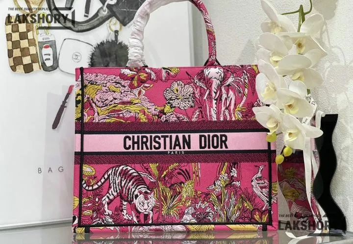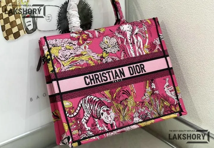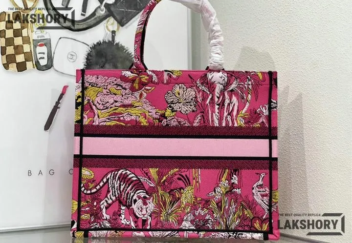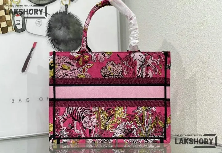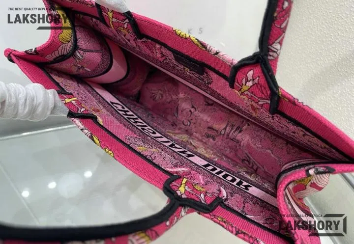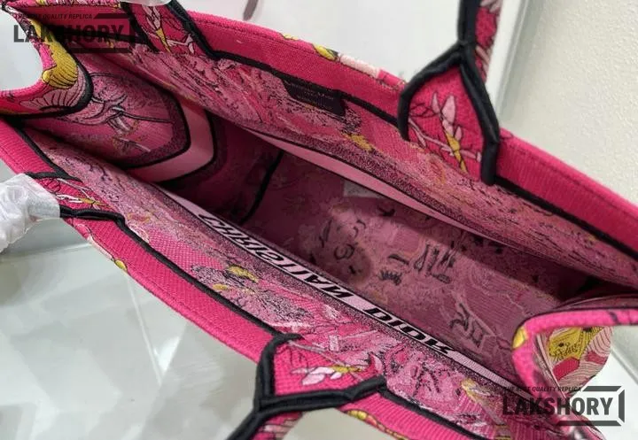 Dior 1:1 Mirror Replica Toile de Jouy Voyage Book Tote Fuchsia Multicolor