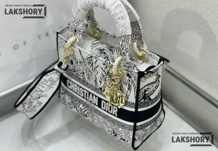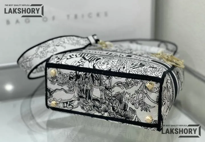 Dior 1:1 Mirror Replica Toile de Jouy Voyage Lady D-Lite White 24CM/9.4IN