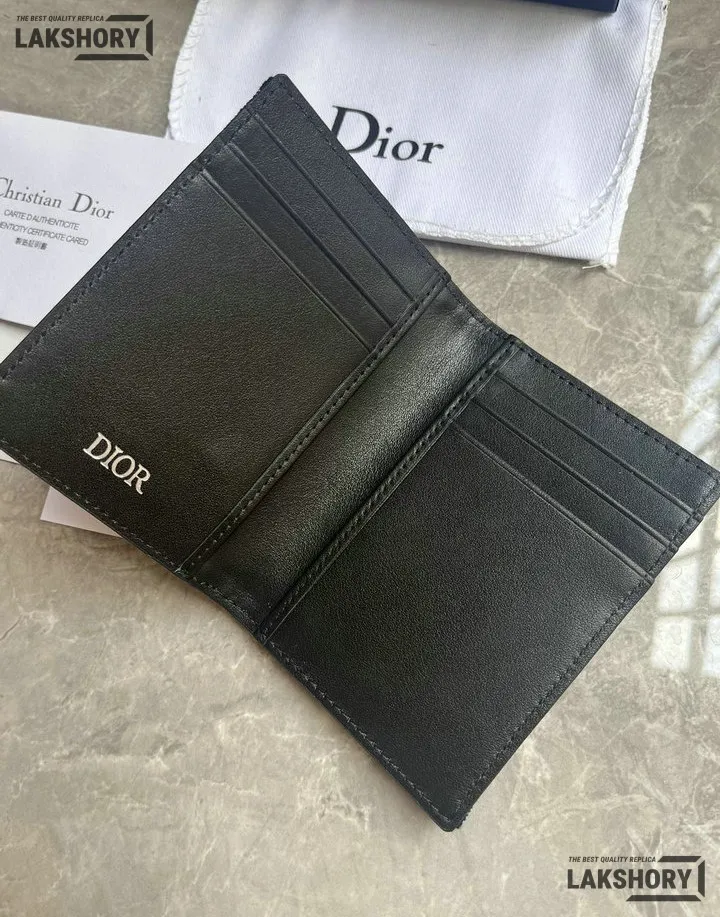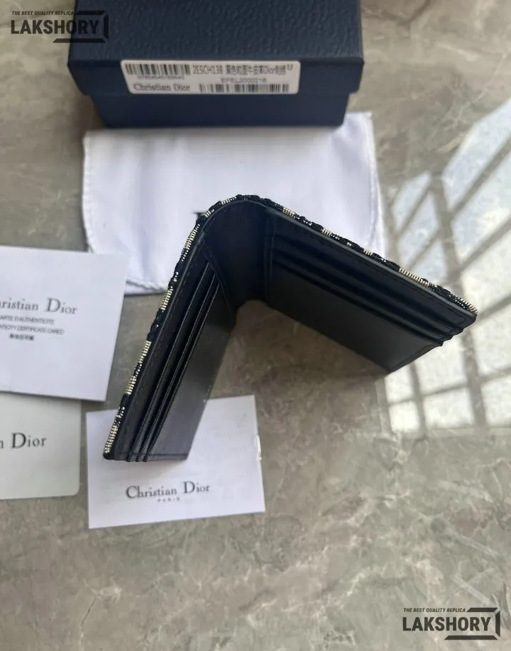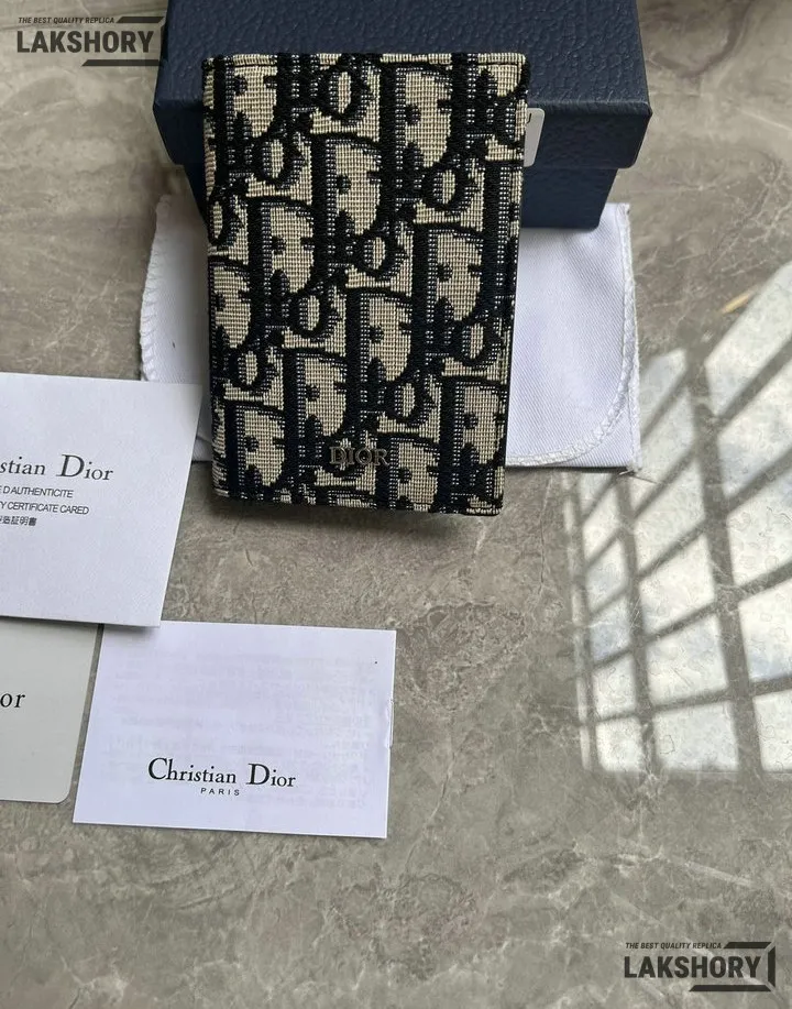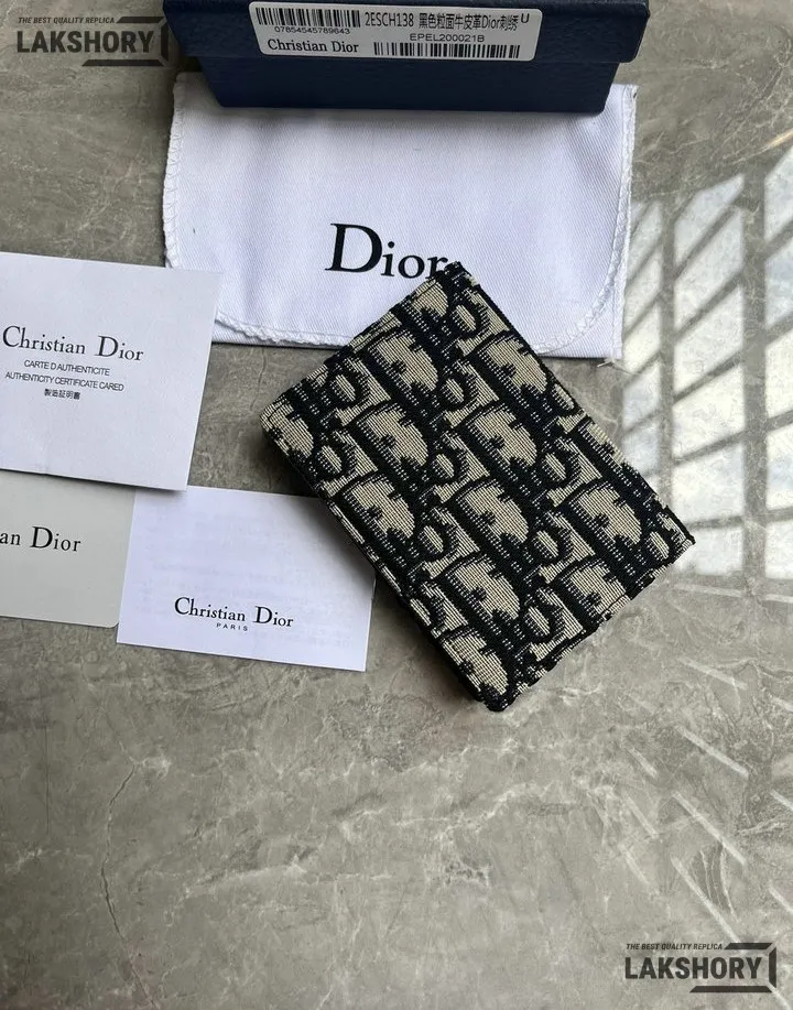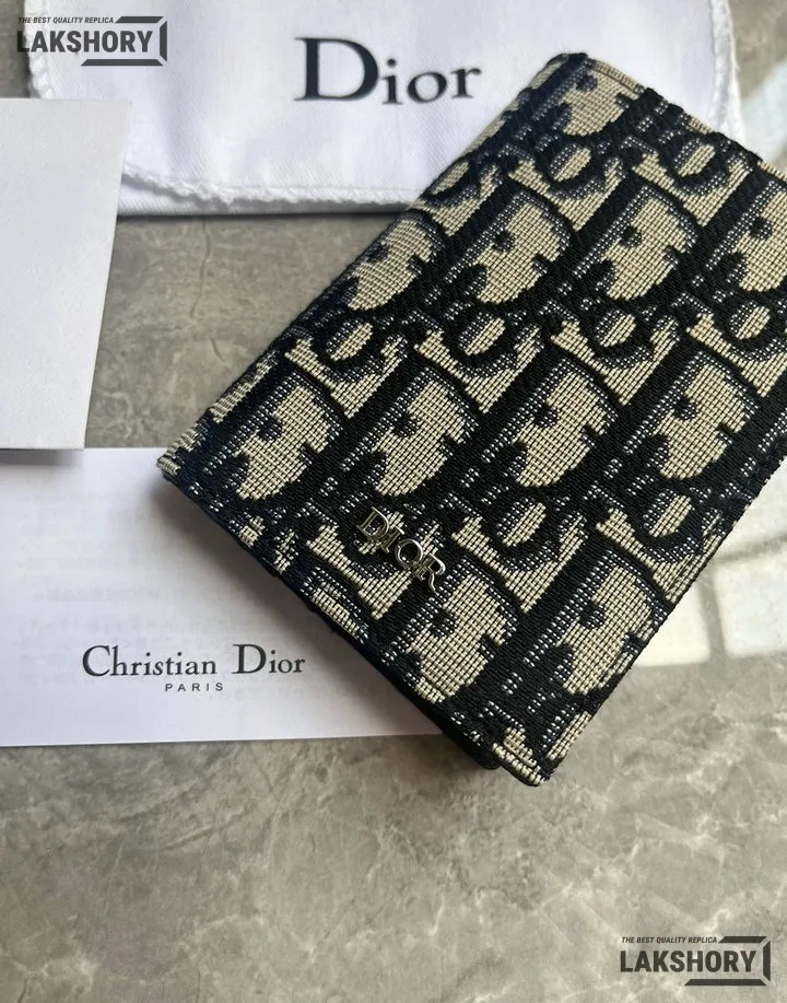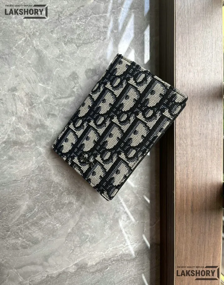 Dior 1:1 Mirror Replica Trifold Wallet Beige & Black Dior Oblique Jacquard 11.2CM/4.4IN