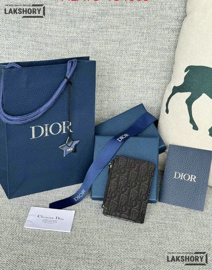 Dior 1:1 Mirror Replica Vertical Compact Card Holder Oblique Jacquard 11.4CM/4.5IN