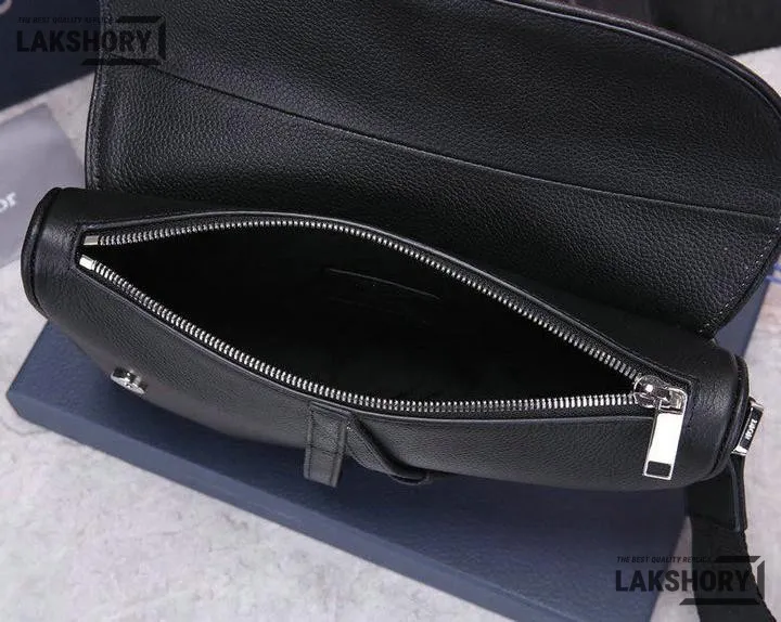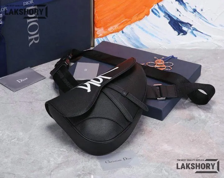 Dior 1:1 Mirror Replica X SHAWN STUSSY Grained Black Saddle 28CM/11IN