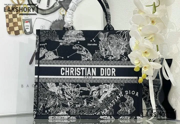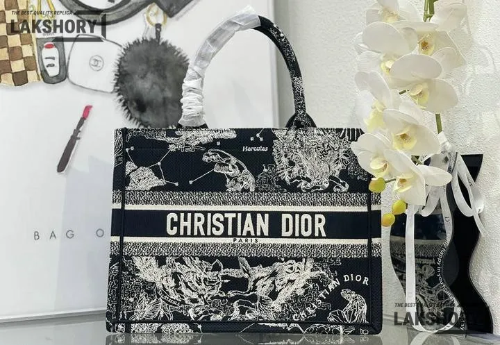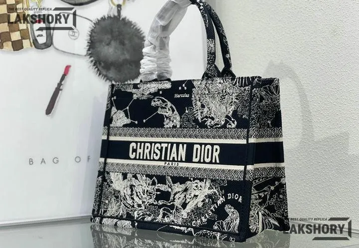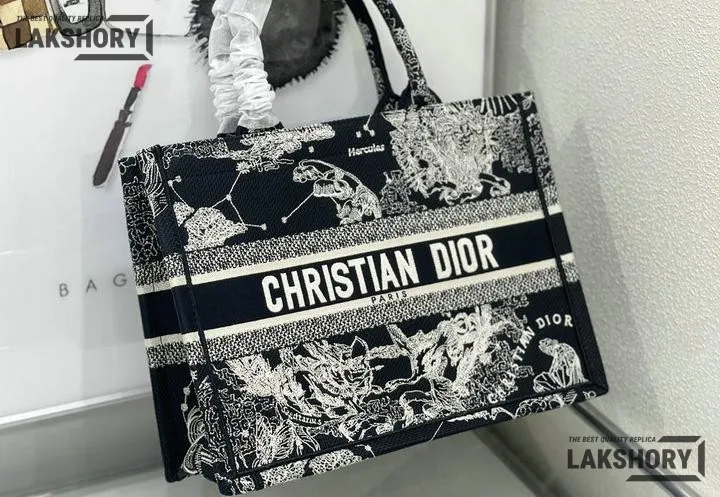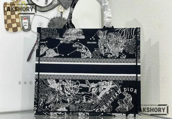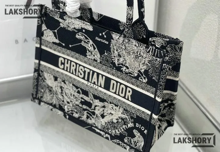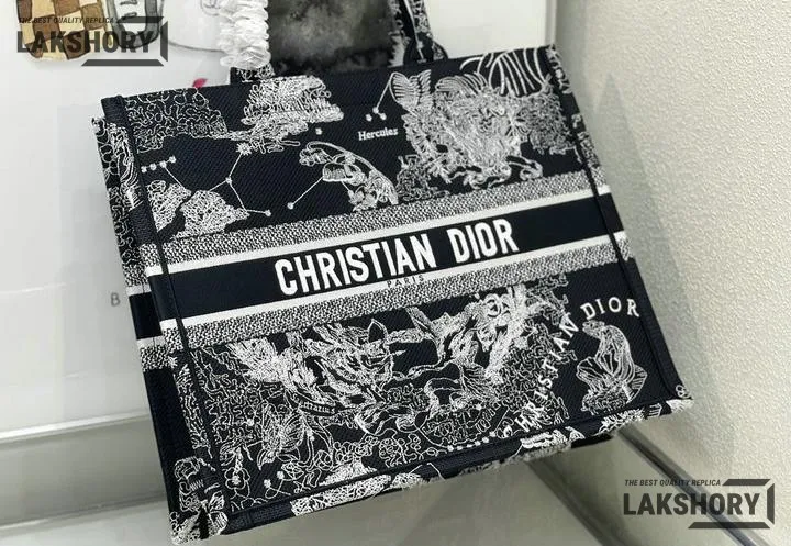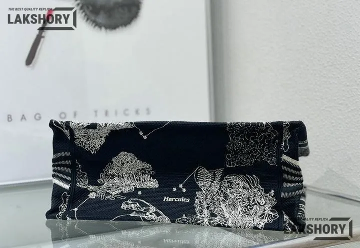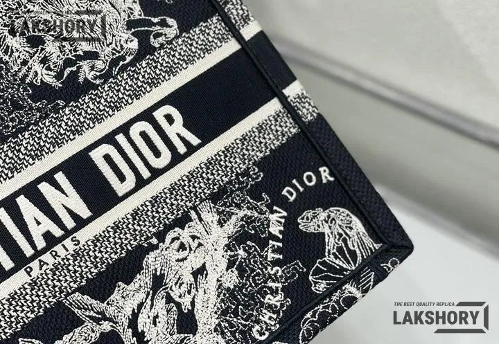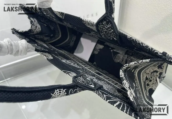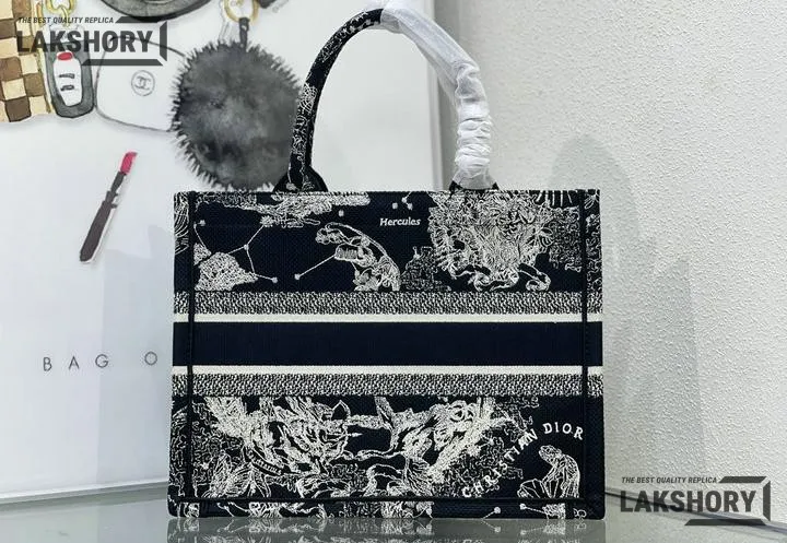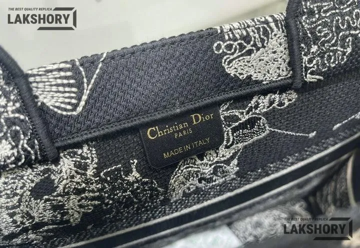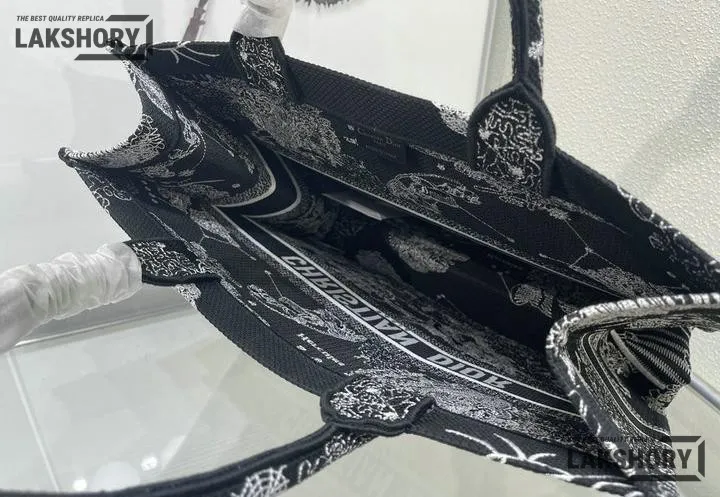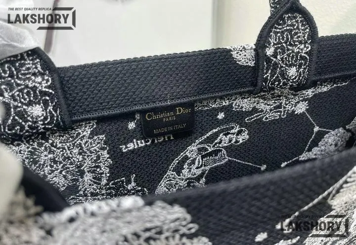 Dior 1:1 Mirror Replica Zodiac Toile De Jouy Book Tote Black Embroidered