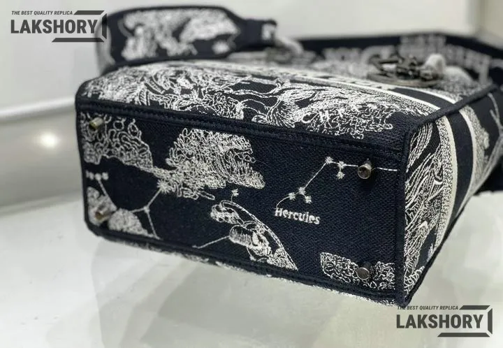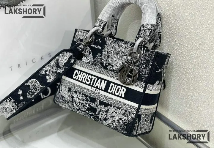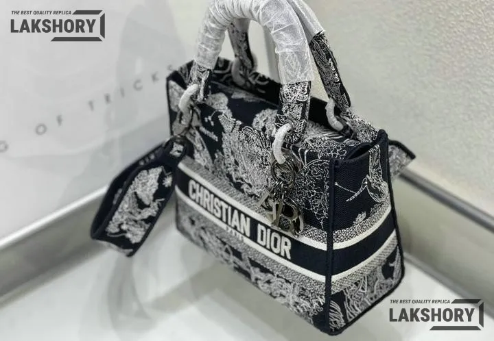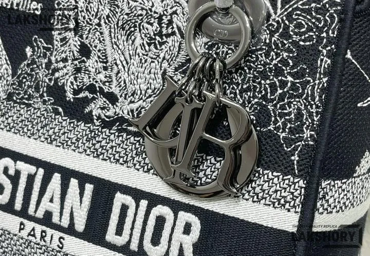 Dior 1:1 Mirror Replica Zodiac Toile De Jouy Lady D-Lite Black 24CM/9.4IN