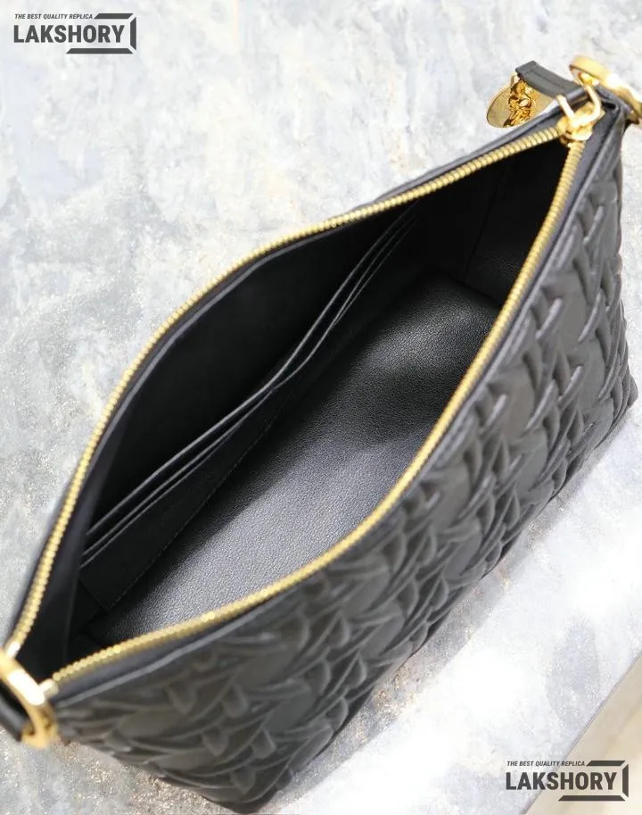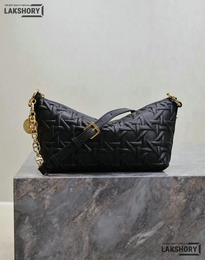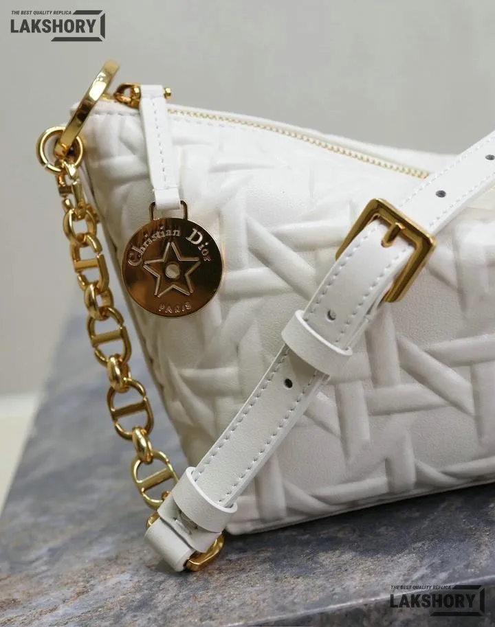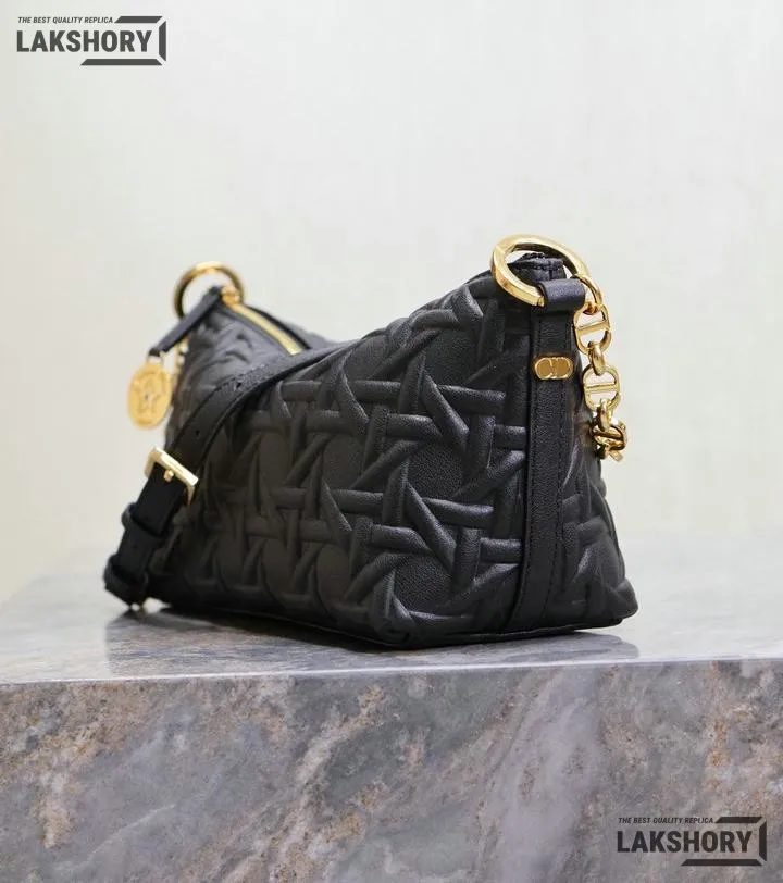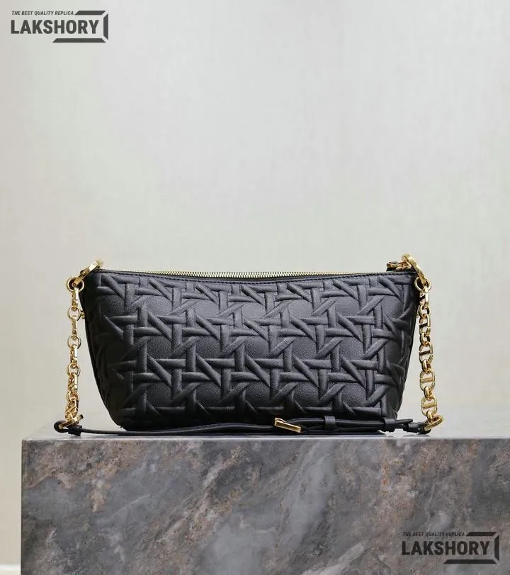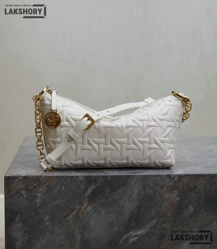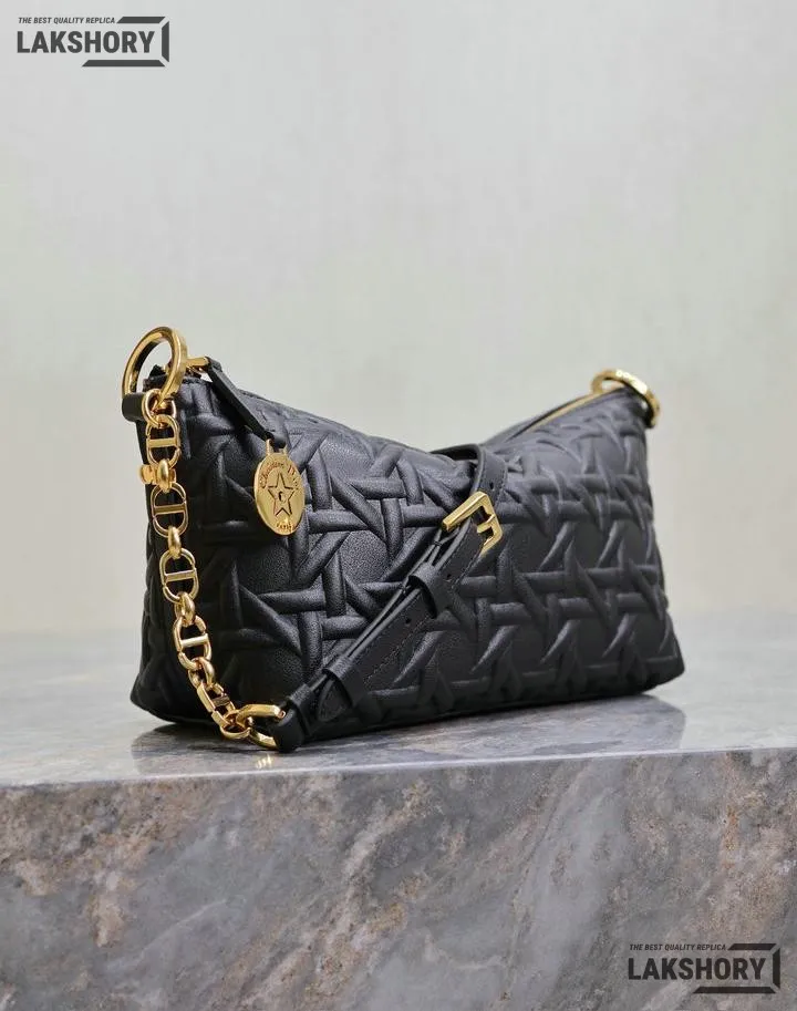 Dior Black Chain Calfskin Macrocannage Diorstar Hobo Bag 28.5CM/11.2IN