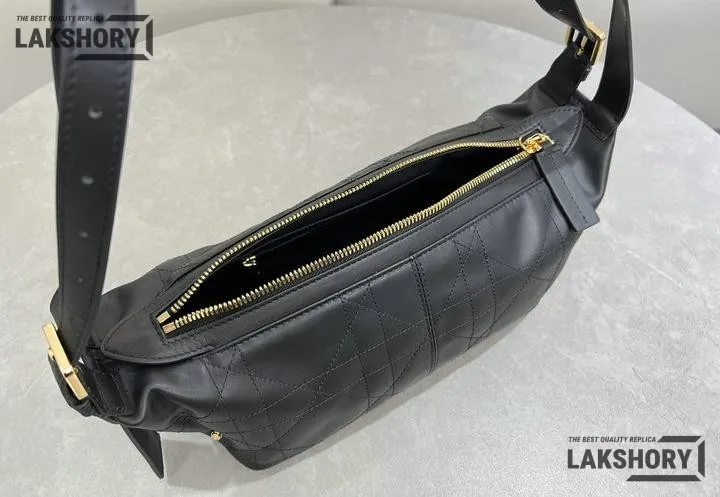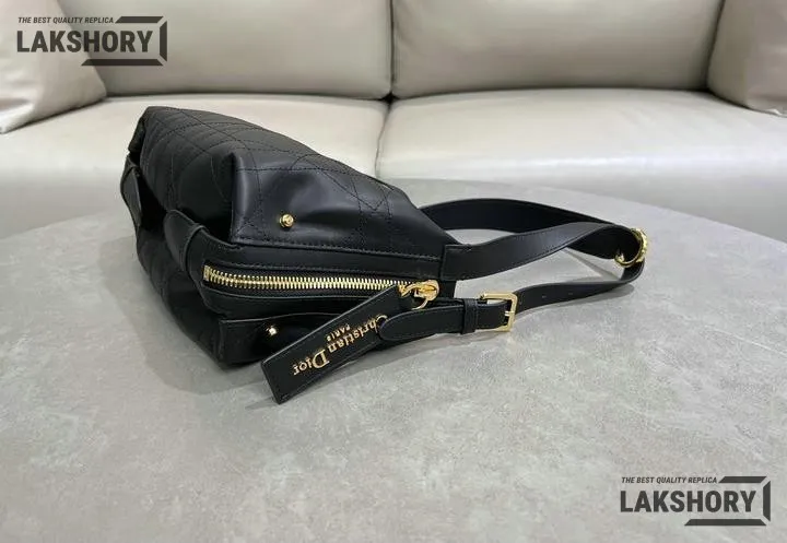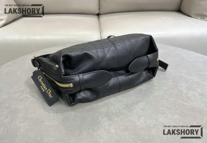 Dior Black Medium Macrocannage D-Journey Shiny Flat Bag 33CM/13IN