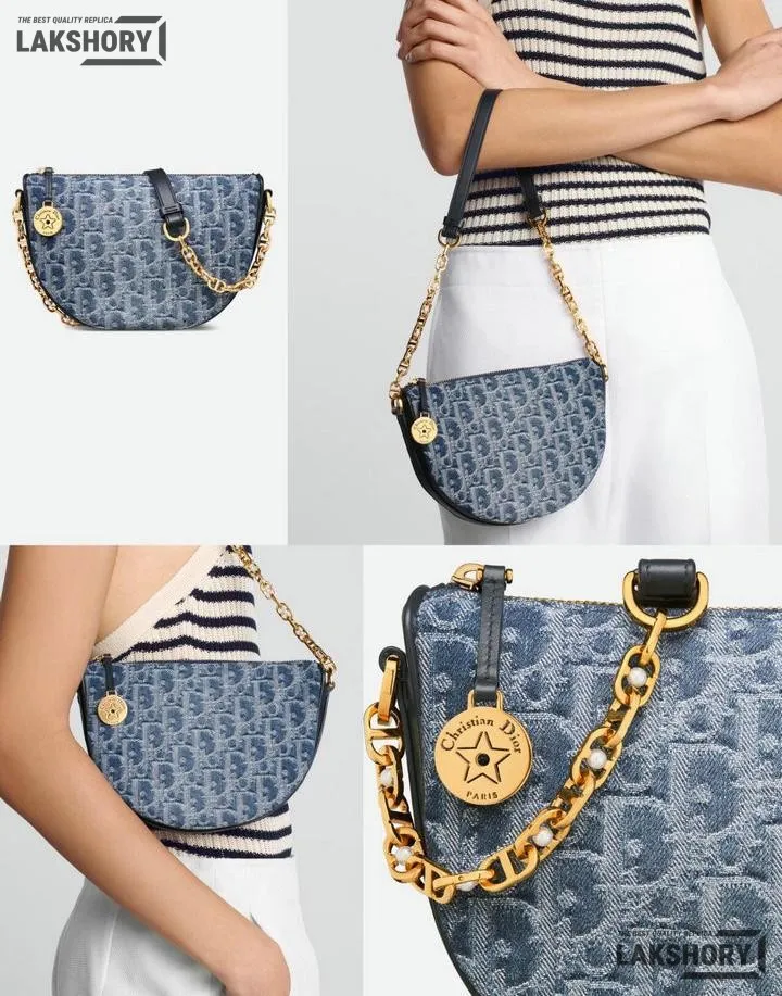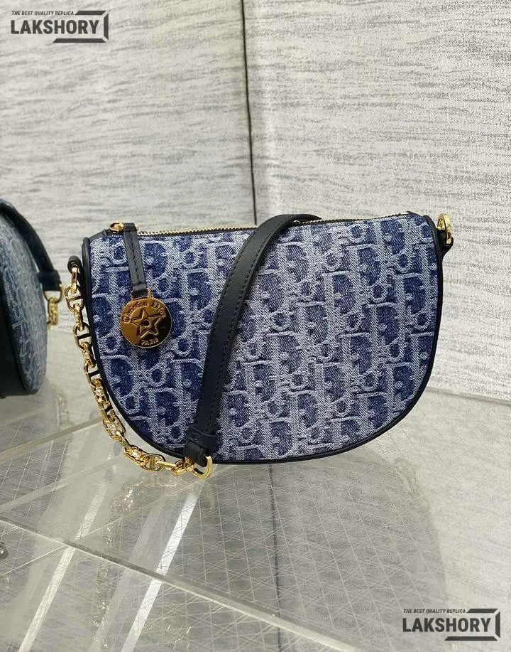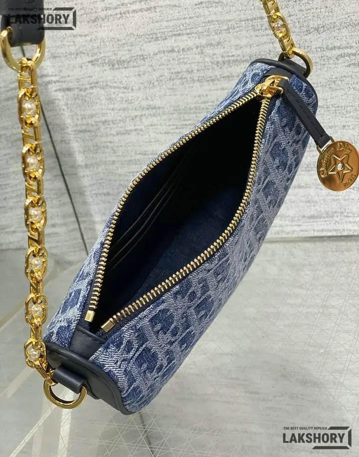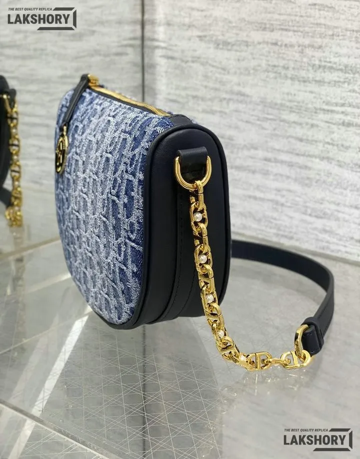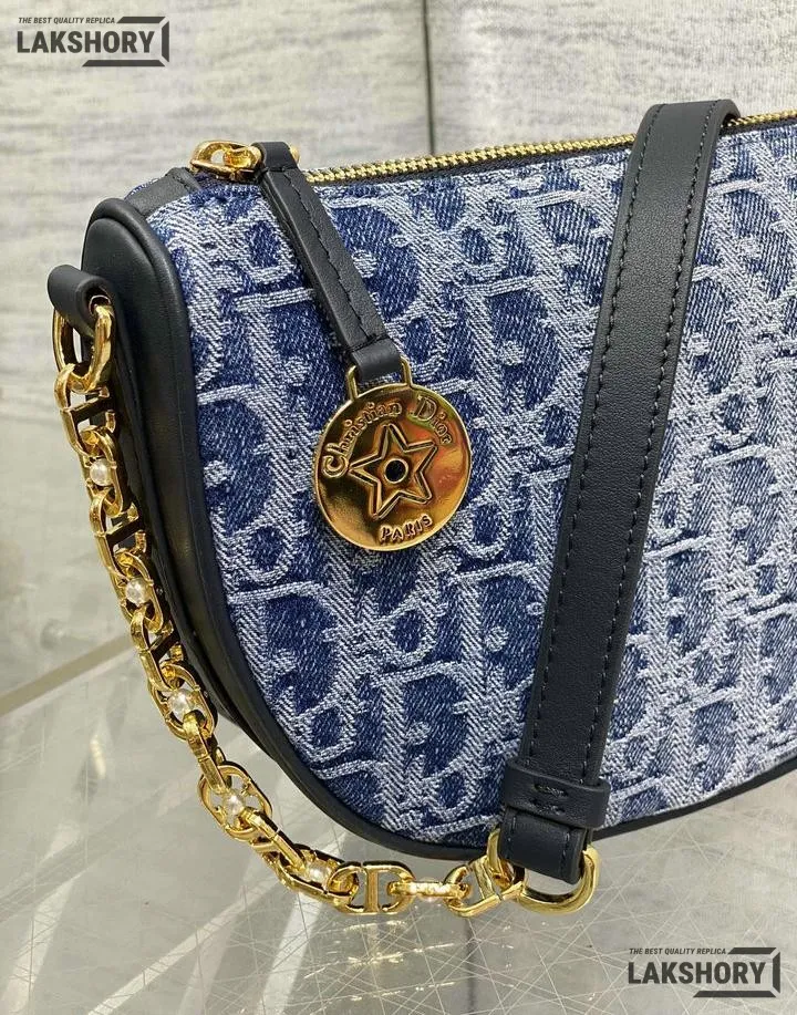 Dior Star Denim Blue Leather Oblique Jacquard Fabric Bag 29CM/11.4IN