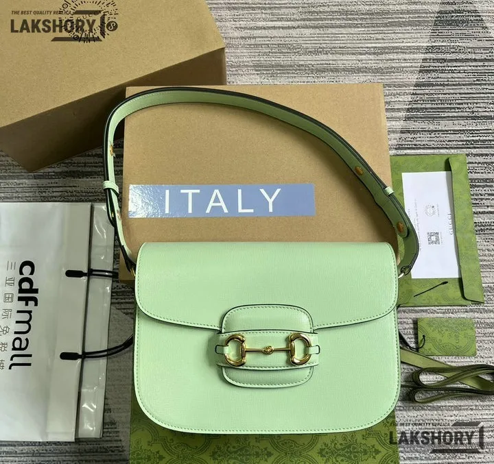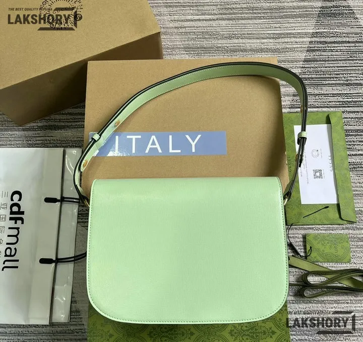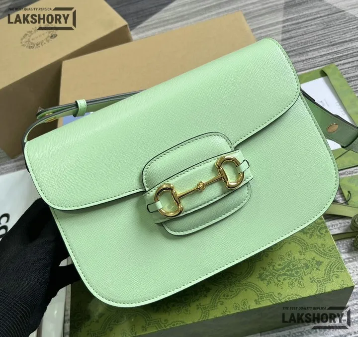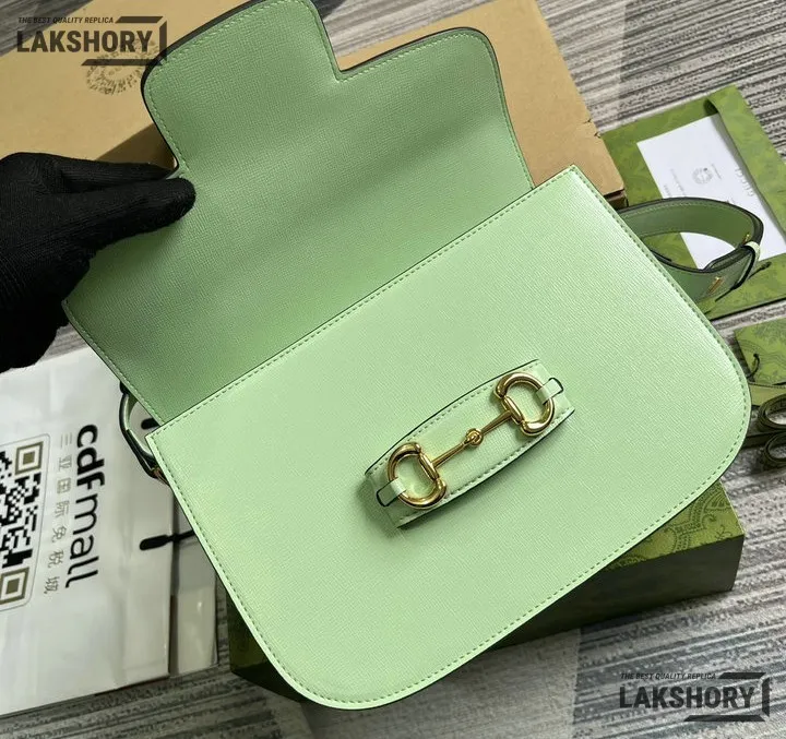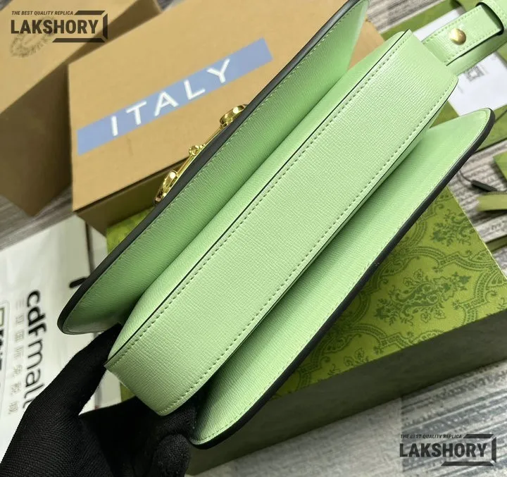 Gucci 1:1 Mirror Replica 1955 Horsebit Leather Shoulder Bag Light Green 25CM/9.8IN