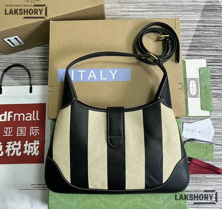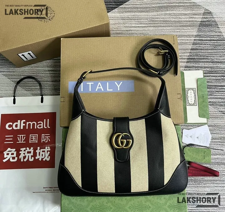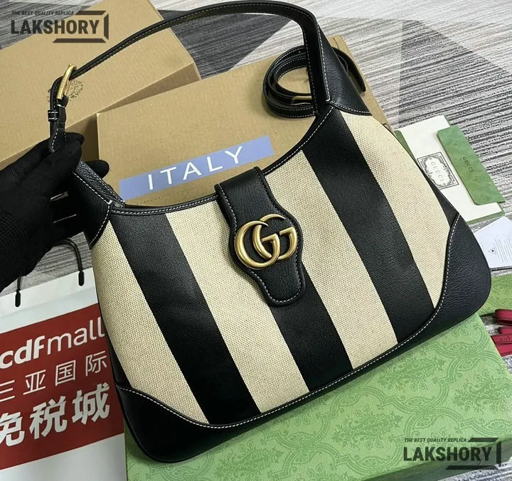 Gucci 1:1 Mirror Replica Aphrodite Striped Leather-trimmed Bag 39CM/15.4IN