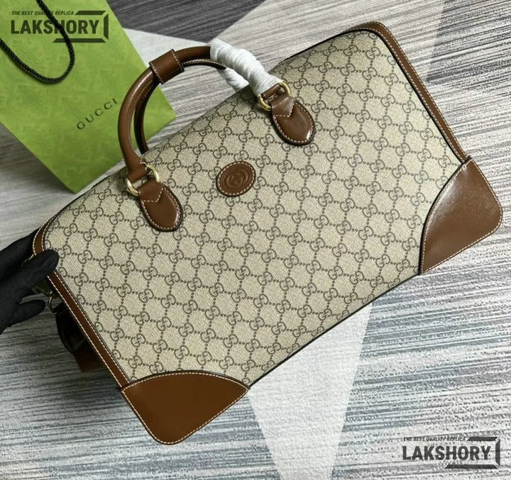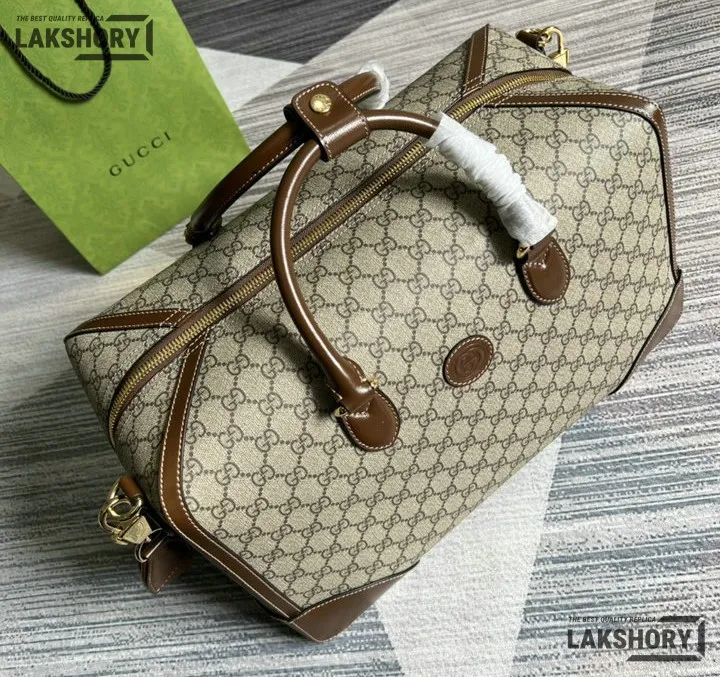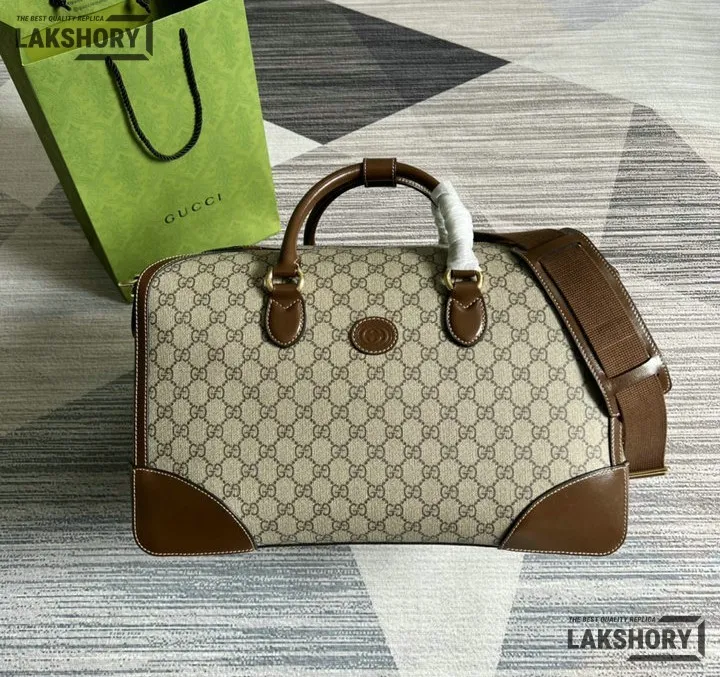Gucci 1:1 Mirror Replica Azalea Retro Interlocking G Duffle Beige Brown 42CM/16.5IN