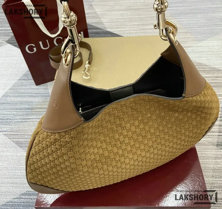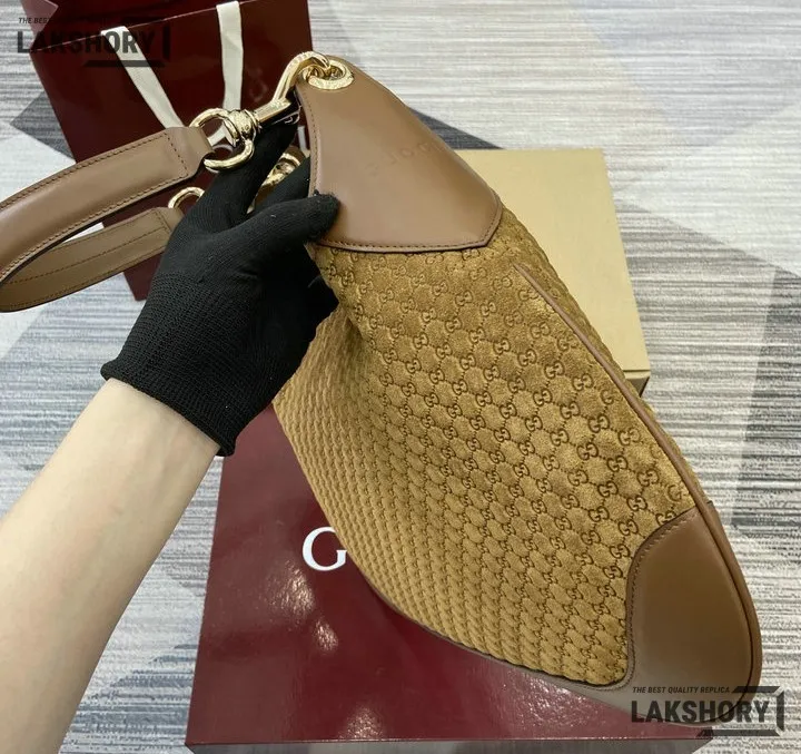 Gucci 1:1 Mirror Replica B Medium Shoulder Bag GG Suede 42CM/16.5IN