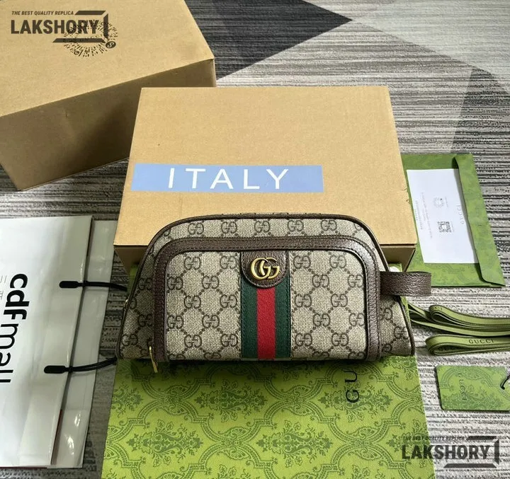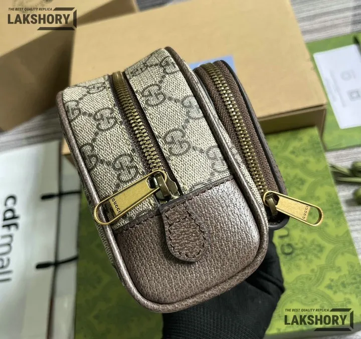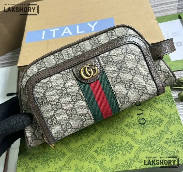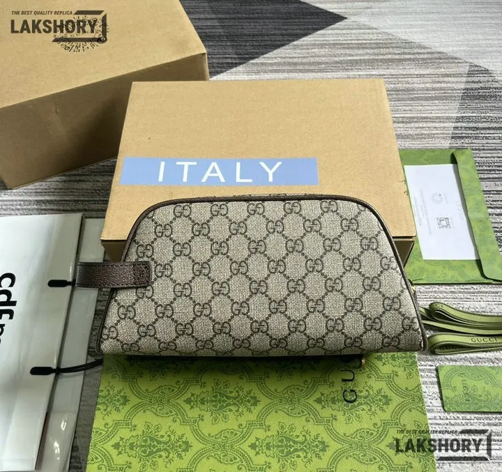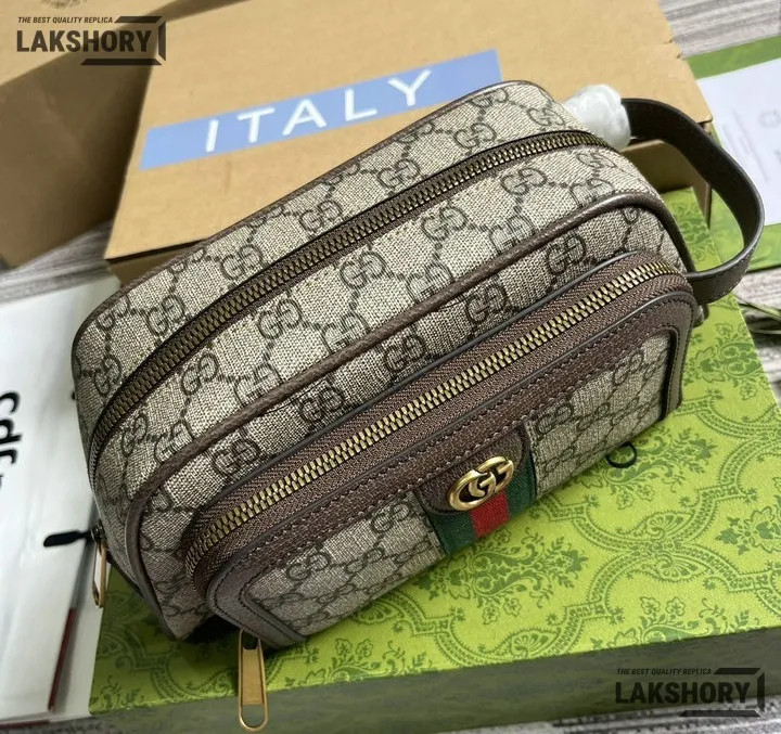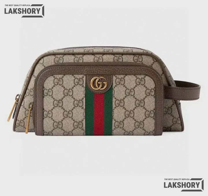 Gucci 1:1 Mirror Replica Beige Web Ophidia Toiletry Case GG 26CM/10.2IN