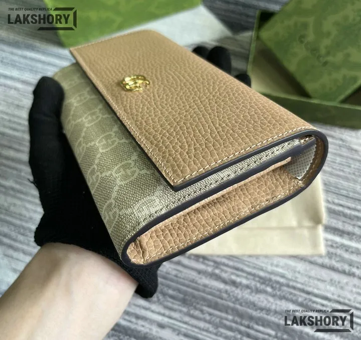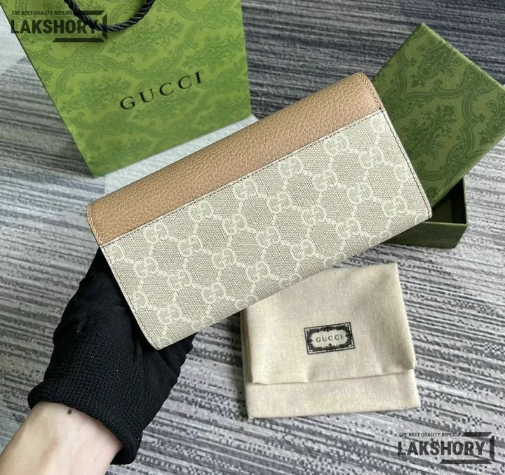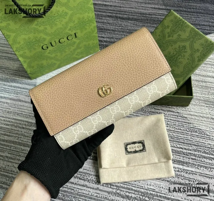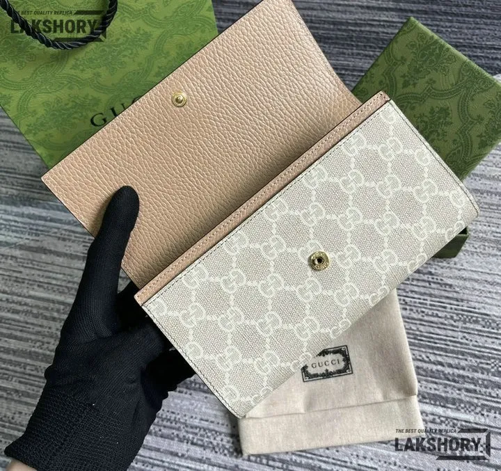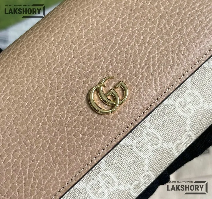 Gucci 1:1 Mirror Replica Bi-color Continental Wallet Dusty Pink 19CM/7.5IN