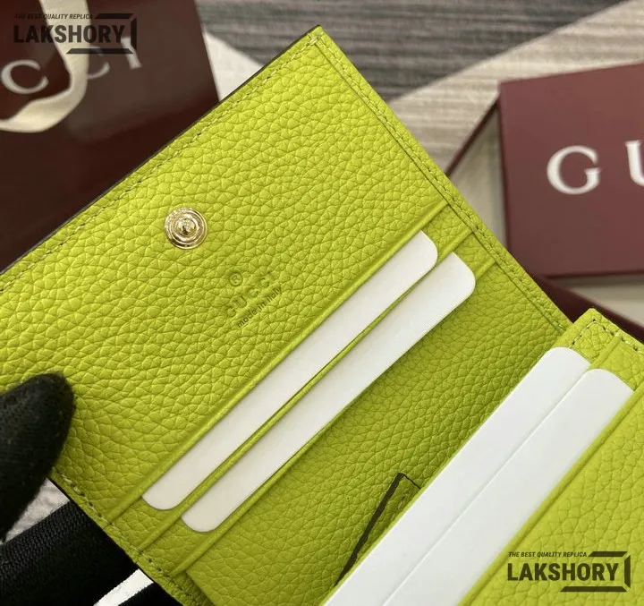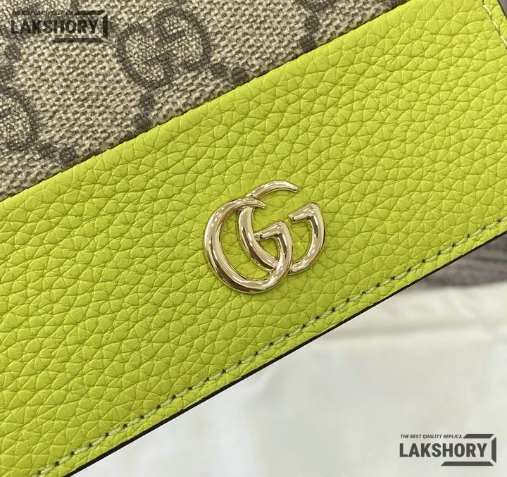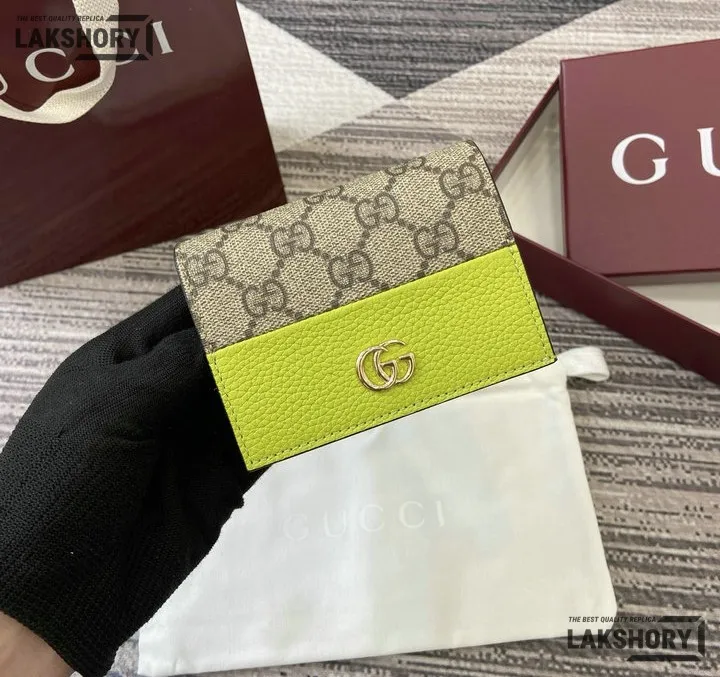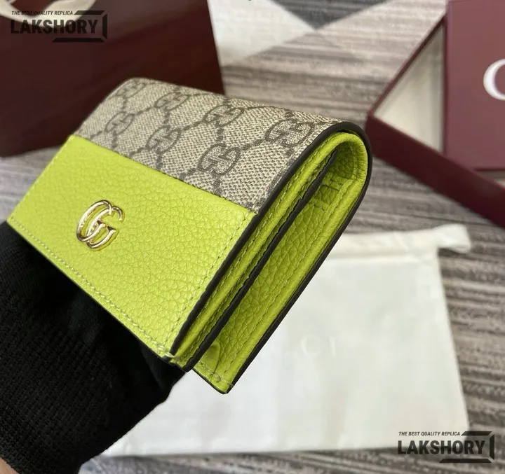 Gucci 1:1 Mirror Replica Bi-color GG Marmont Small Wallet Bright Green 11CM/4.3IN