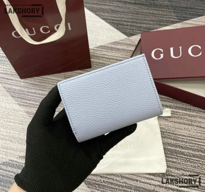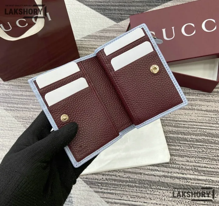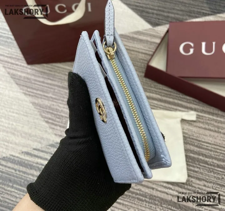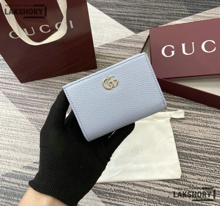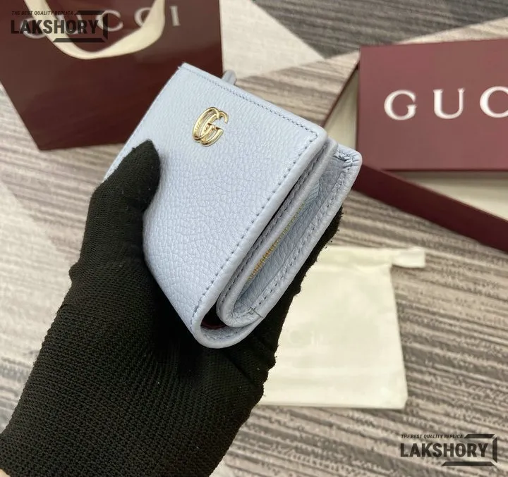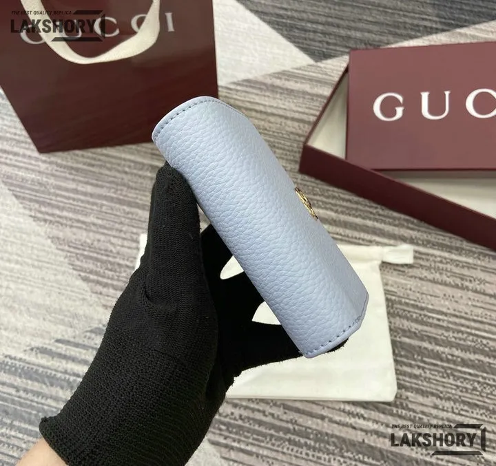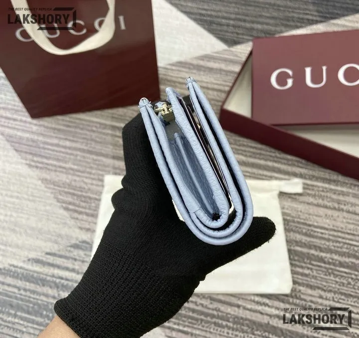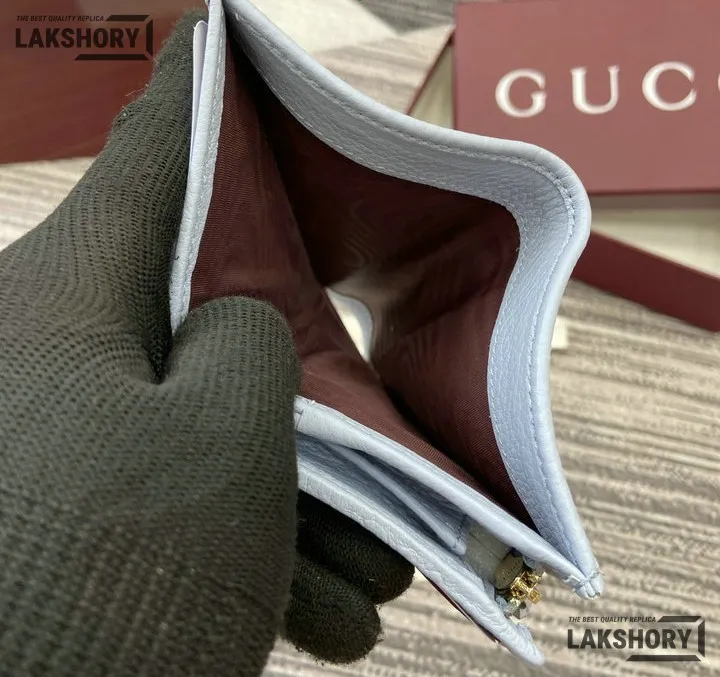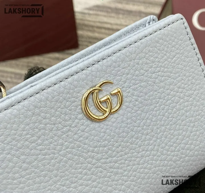 Gucci 1:1 Mirror Replica Bi-color GG Marmont Small Wallet Sky Blue 11CM/4.3IN