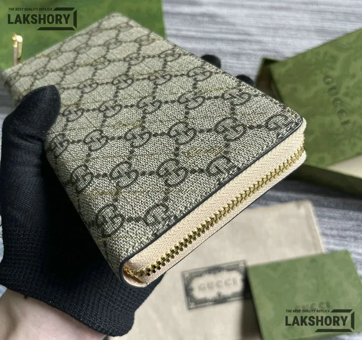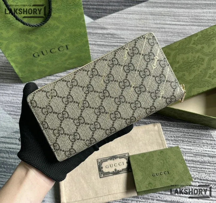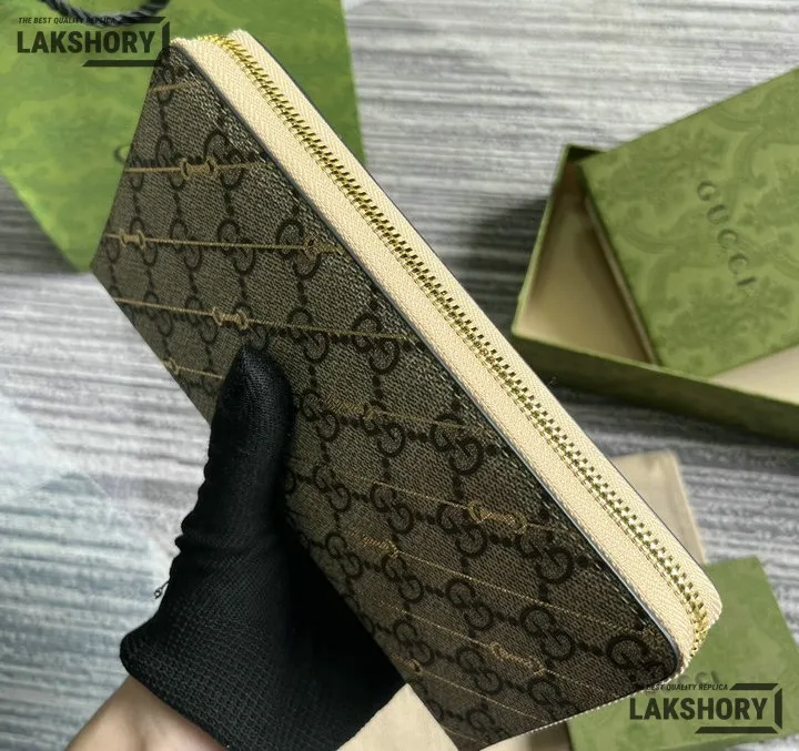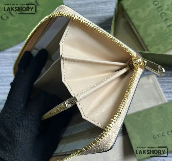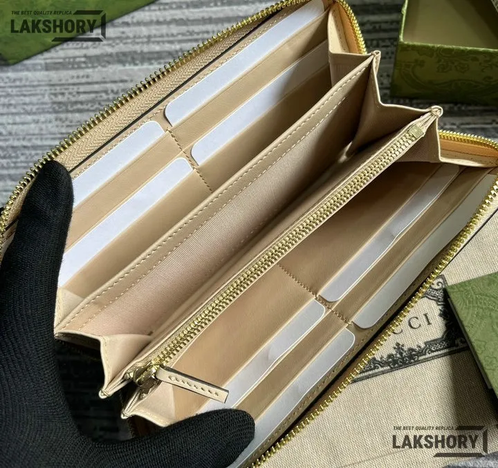 Gucci 1:1 Mirror Replica Bi-color Zip Around Wallet Beige 20CM/7.9IN