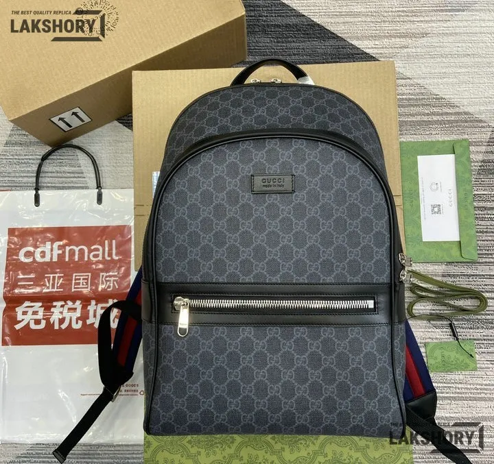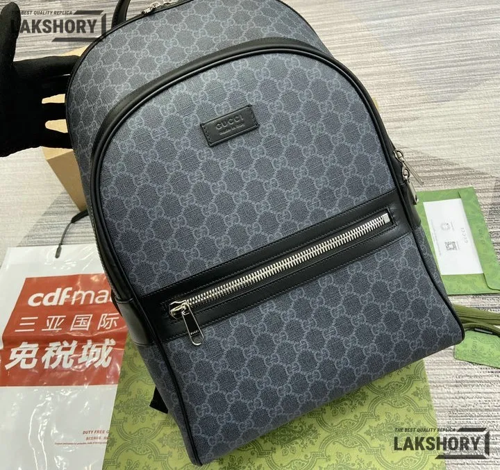 Gucci 1:1 Mirror Replica Black GG Supreme Canvas & Leather Backpack 44CM/17.3IN